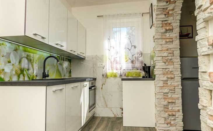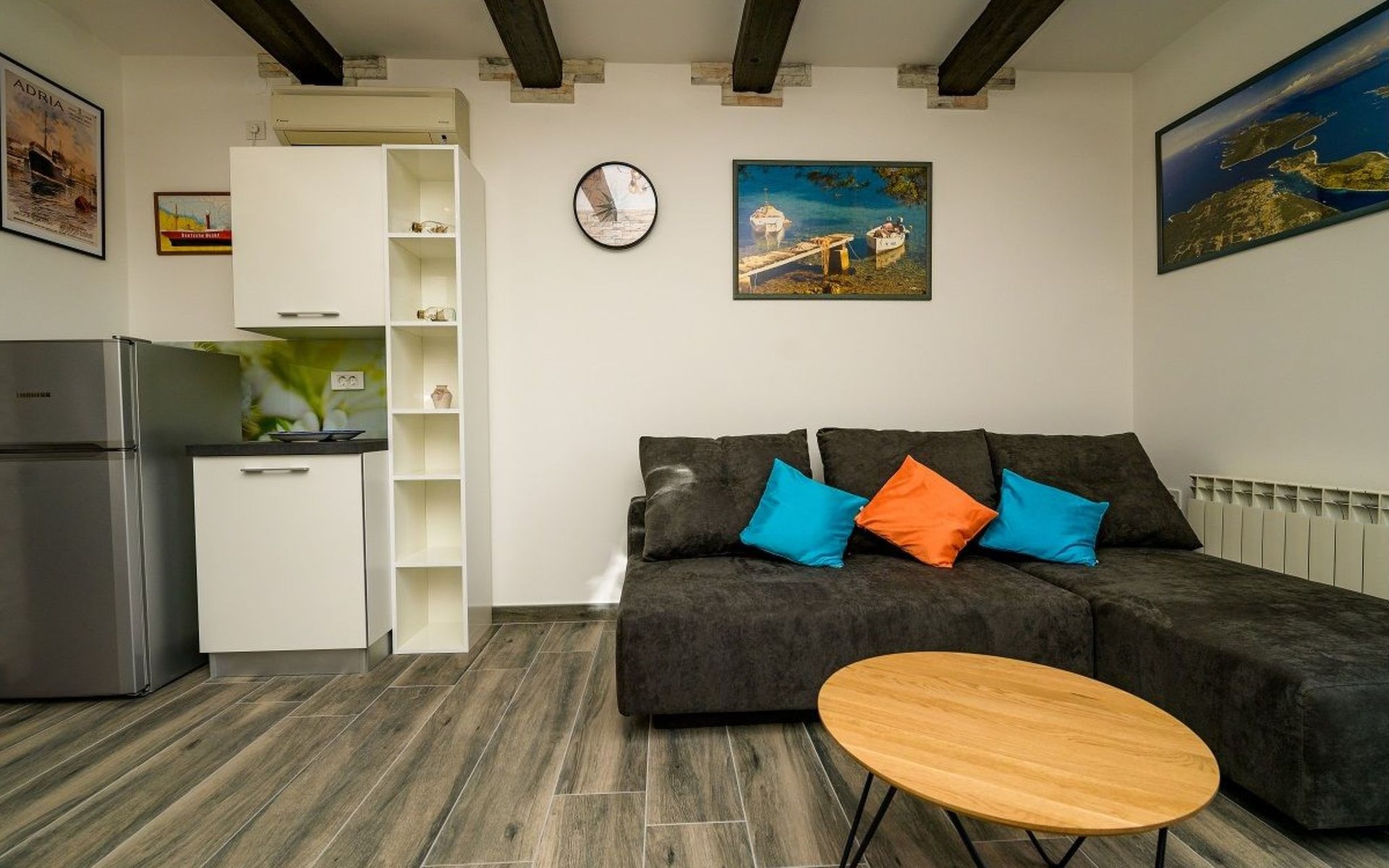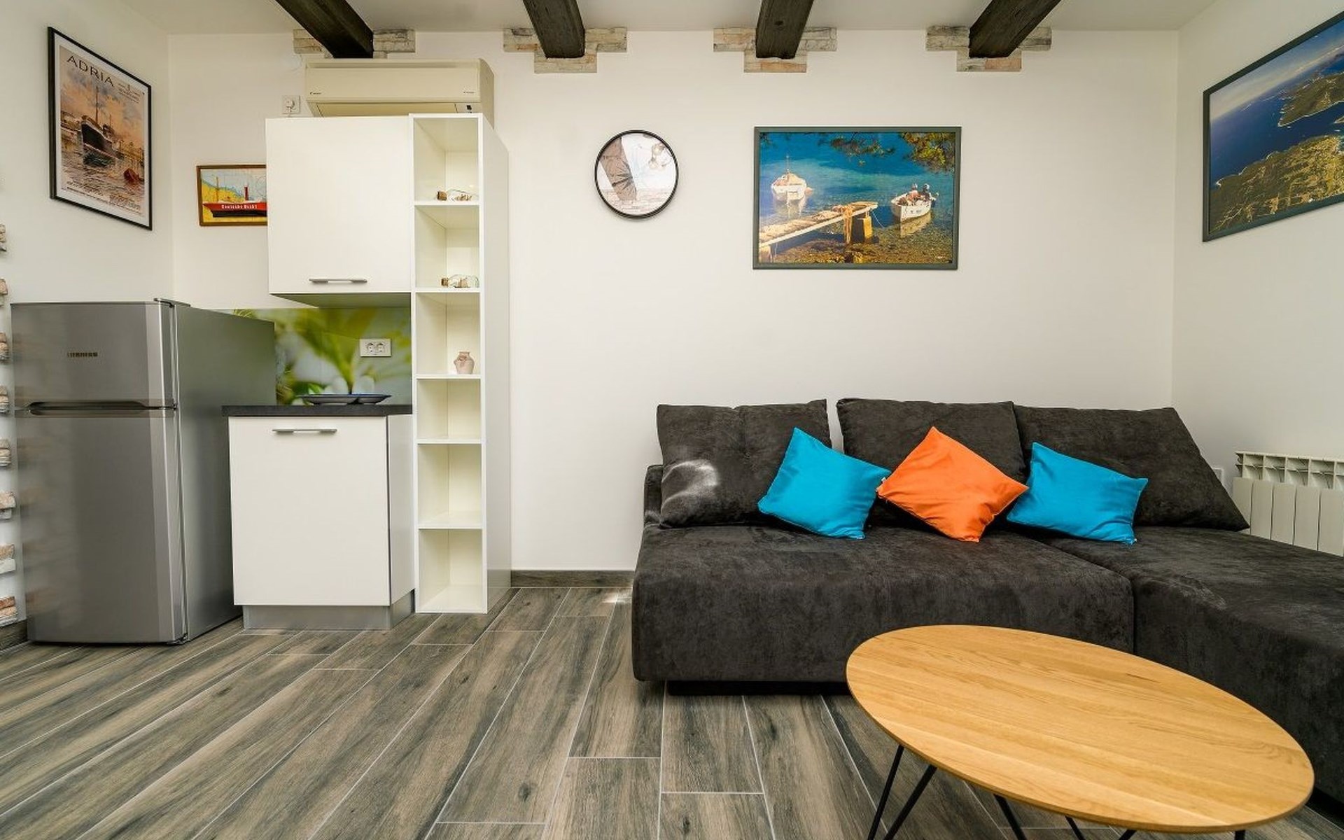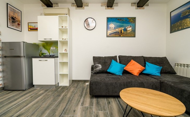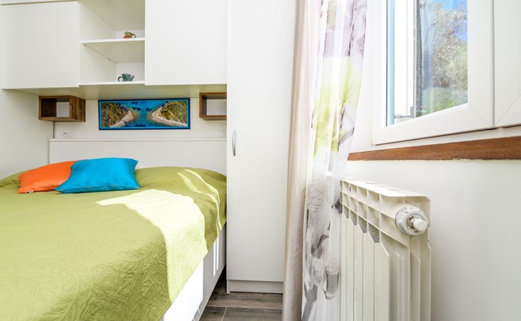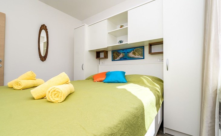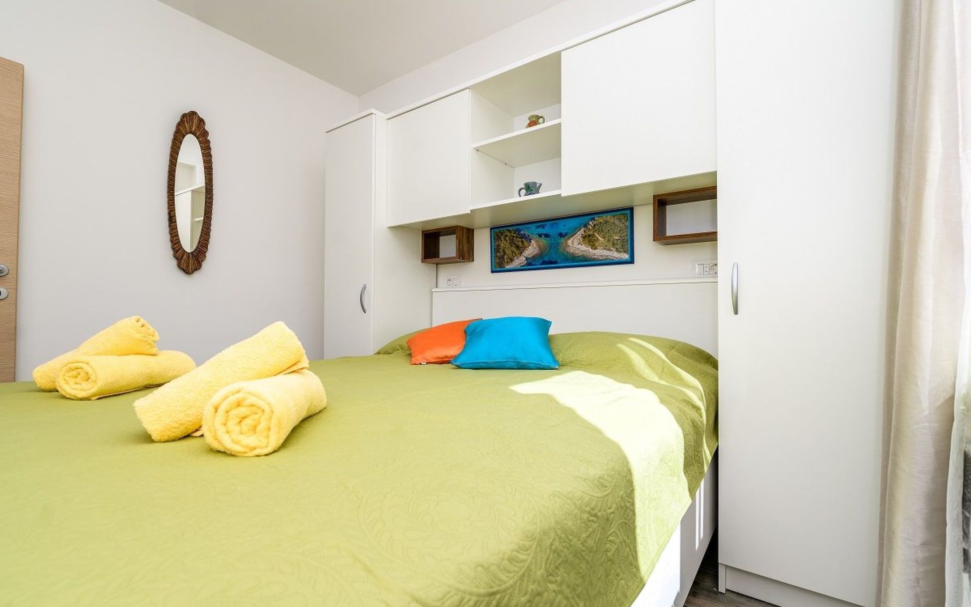 Die Apartments für 3 Personen Kamelia, Lavanda und Magnolia bestehen aus einem Zimmer mit Doppelbett, einer Küchenzeile mit allen Geräten und einem großen Wohnzimmer mit Esszimmer mit Blick auf das Meer und Ausgang zum Balkon. Außerdem gibt es im Wohnzimmer zwei getrennte Betten. Die Wohnung verfügt außerdem über ein Badezimmer mit Dusche.