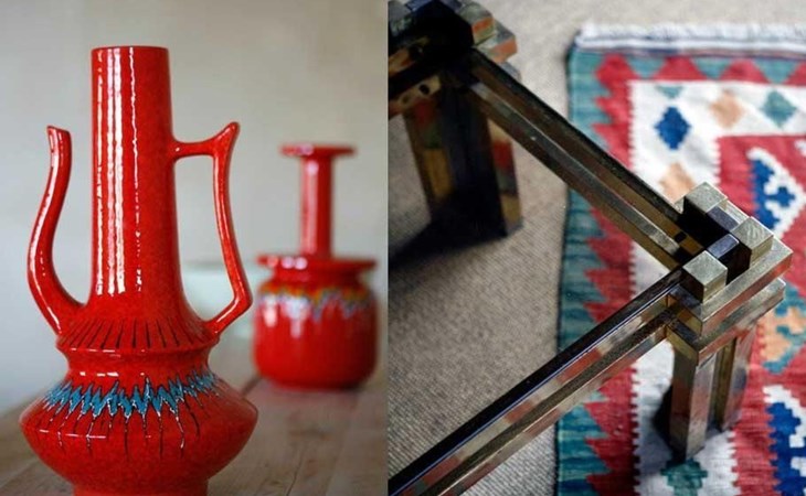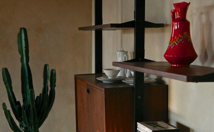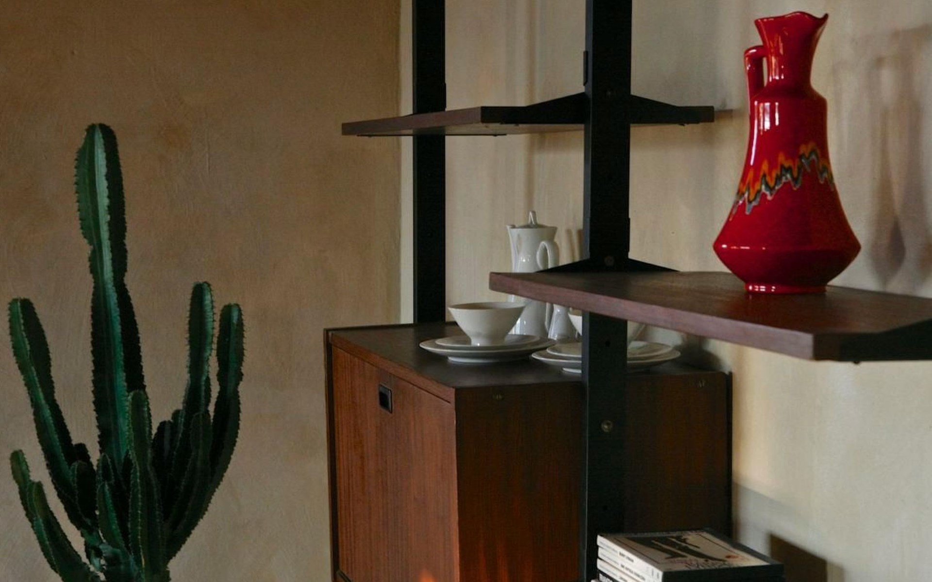 Die Regale sind mit einheimischen Keramiken bestückt. Von der modernistischen Porzellansammlung bis zu zeitgenössischen Stücken.