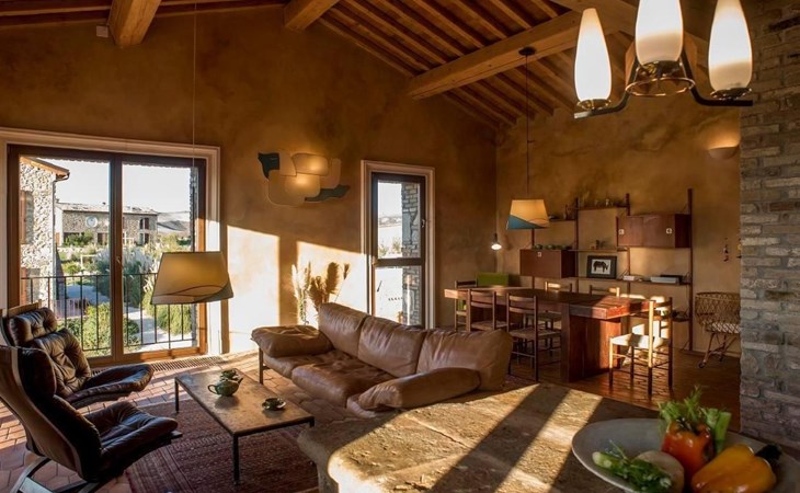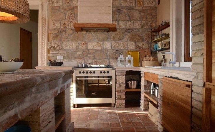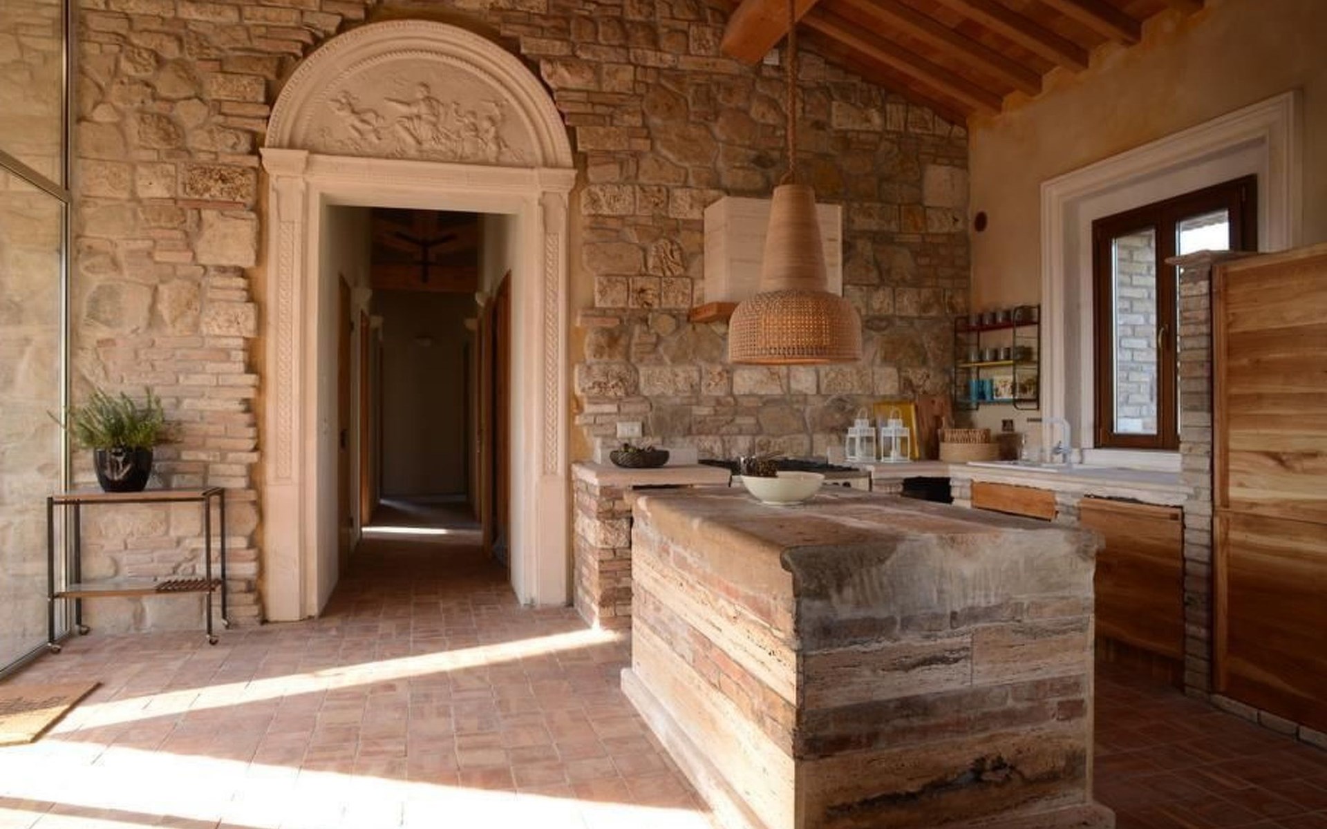 Dies ist zum Teil auf die strengen Naturschutzbestimmungen zurückzuführen, aber auch auf die Zusammenarbeit mit Künstlern, Designern und Handwerkern in der Toskana. Die Landschaft, die Geschichte und der lokale Charakter waren für unsere Version von Tuscany Forever ausschlaggebend, daher ist die Ästhetik klar, sauber und gemütlich, ein Ausdruck der menschlichen Kreativität und des Geschmacks für Schönheit, der mit großer Sensibilität für die Kunst und großer Wertschätzung für die Restaurierung eingesetzt wird. Holzbalken, Fliesen, Marmor wurden alle in Italien beschafft. Handgefertigter Cotto-Boden.