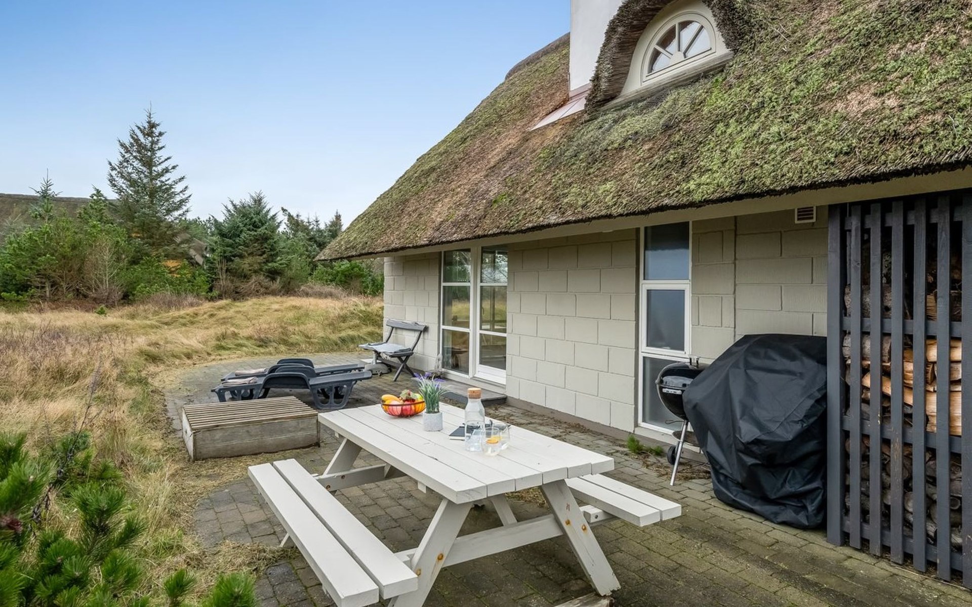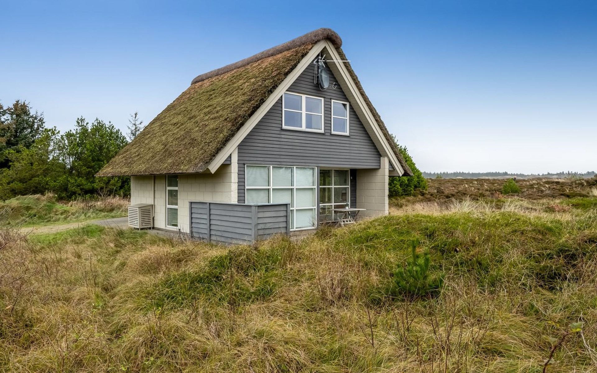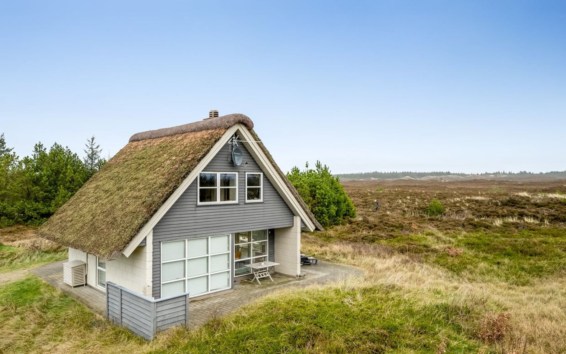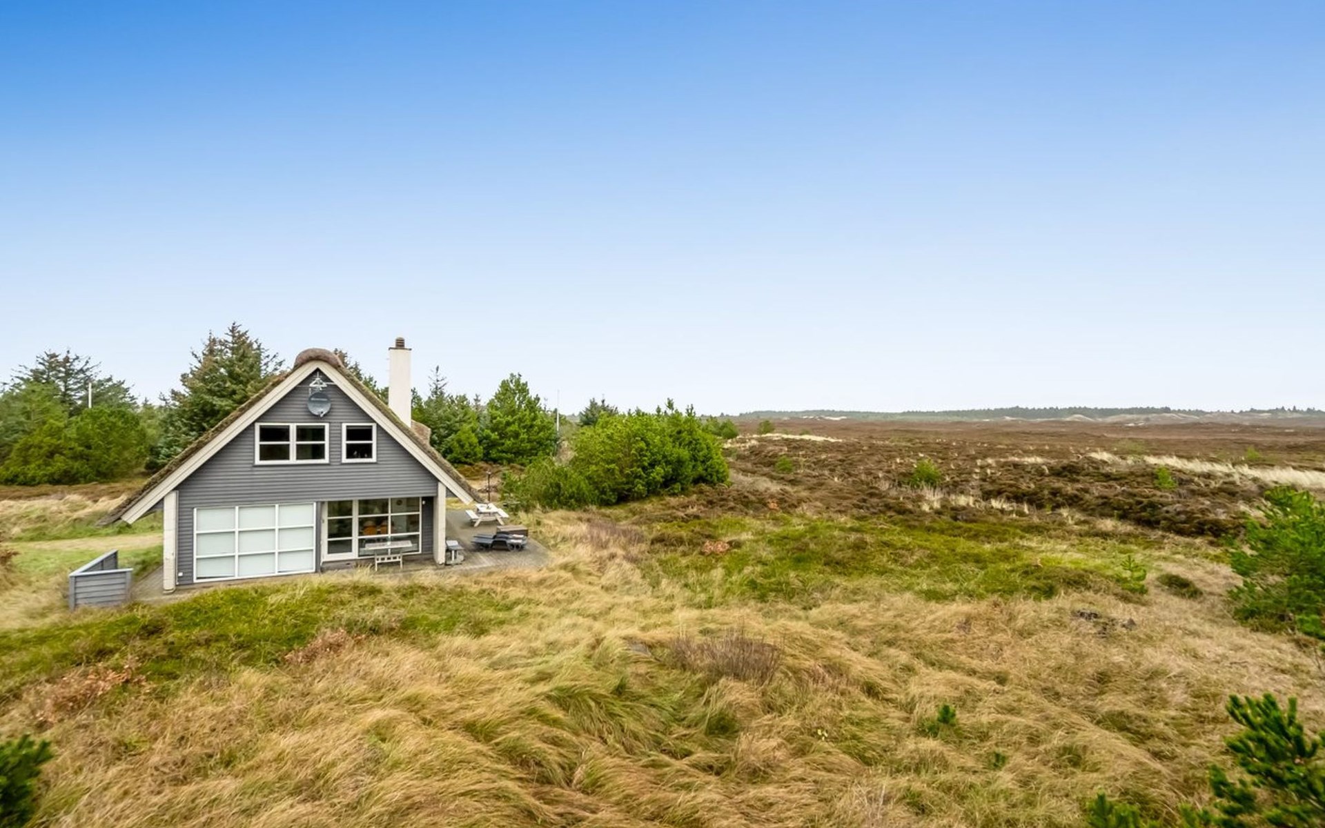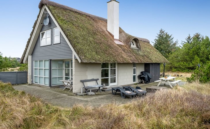 Einfamilienhaus, Baujahr 1969. 700 m vom Meer. Zur Alleinbenutzung: naturbelassenes Grundstück 2'000 m2. Terrasse (40 m2), Kinderspielplatz. Im Hause: Waschmaschine, Wäschetrockner. Parkplatz beim Haus. Lebensmittelgeschäft 1 km. Der Besitzer akzeptiert keine Jugendgruppen.