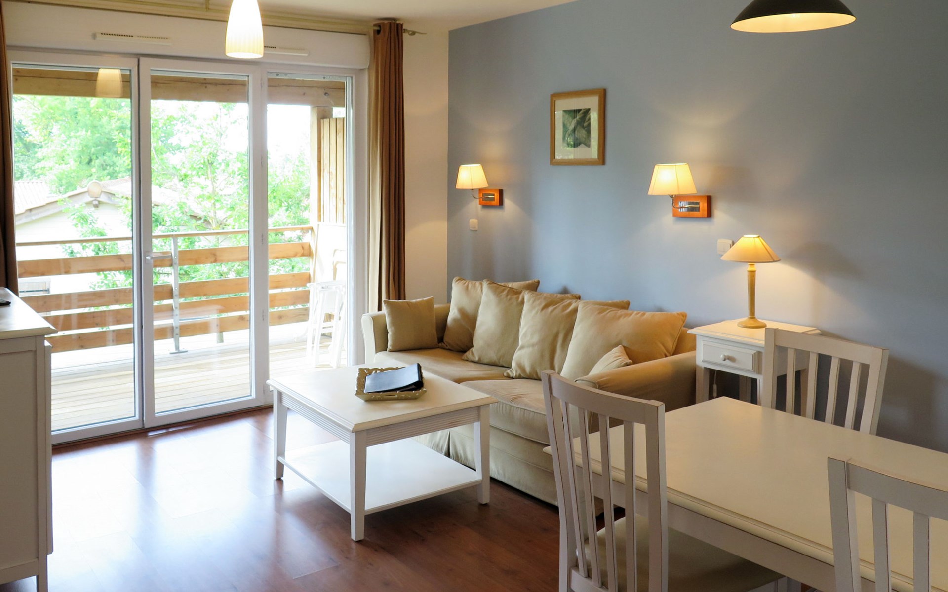 Kinderfreundliche Ferienanlage "Les Cottages du Lac", umgeben von Bäumen. 50 Häuser in der Residenz. 112 Wohnungen in der Residenz. 3 km vom Zentrum von Parentis, 9 km vom Zentrum von Biscarrosse, 27 km vom Zentrum von Mimizan, 18 km vom Meer, 400 m vom See. Zur Mitbenutzung: Grundstück (eingezäunt) mit Bäumen, 2 Schwimmbäder beheizt (400 m2, saisonale Verfügbarkeit: 01.Mai. - 15.Okt.). Kinderbecken, Aussendusche, Sprudelbad, Tischtennis, Boccia. In der Anlage: Empfang, Bistro, Wireless LAN, Sauna (extra). Billard, Waschmaschine, Wäschetrockner (zur Mitbenutzung, extra). Parkplatz (beschränkte Anzahl) auf dem Grundstück. E-Ladestation. Einkaufsgeschäft 3 km, Supermarkt 4 km, Restaurant 3 km, Bushaltestelle "Parc segot" 3 km, Sandstrand "Biscarrosse-Plage" 18 km, Badesee "Lac de Biscarrosse et Parentis" 400 m. Bitte beachten: Die Residenz wird durch elektrische Tore geschlossen. Das Foto ist nur ein Hausbeispiel. Die Mietobjekte können sich in Wohnfläche, Raumaufteilung, Ausstattung und Einrichtung unterscheiden.