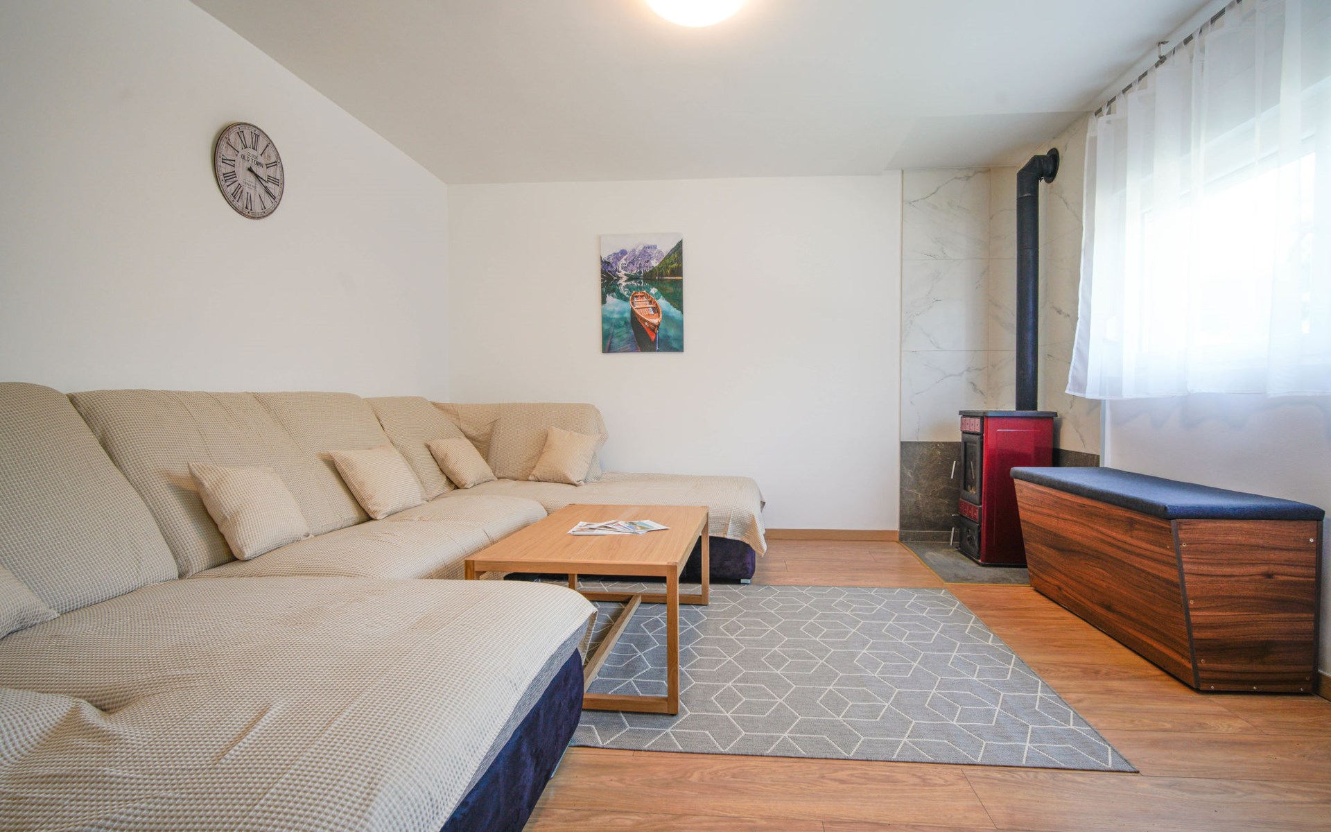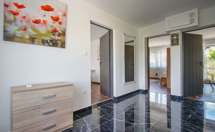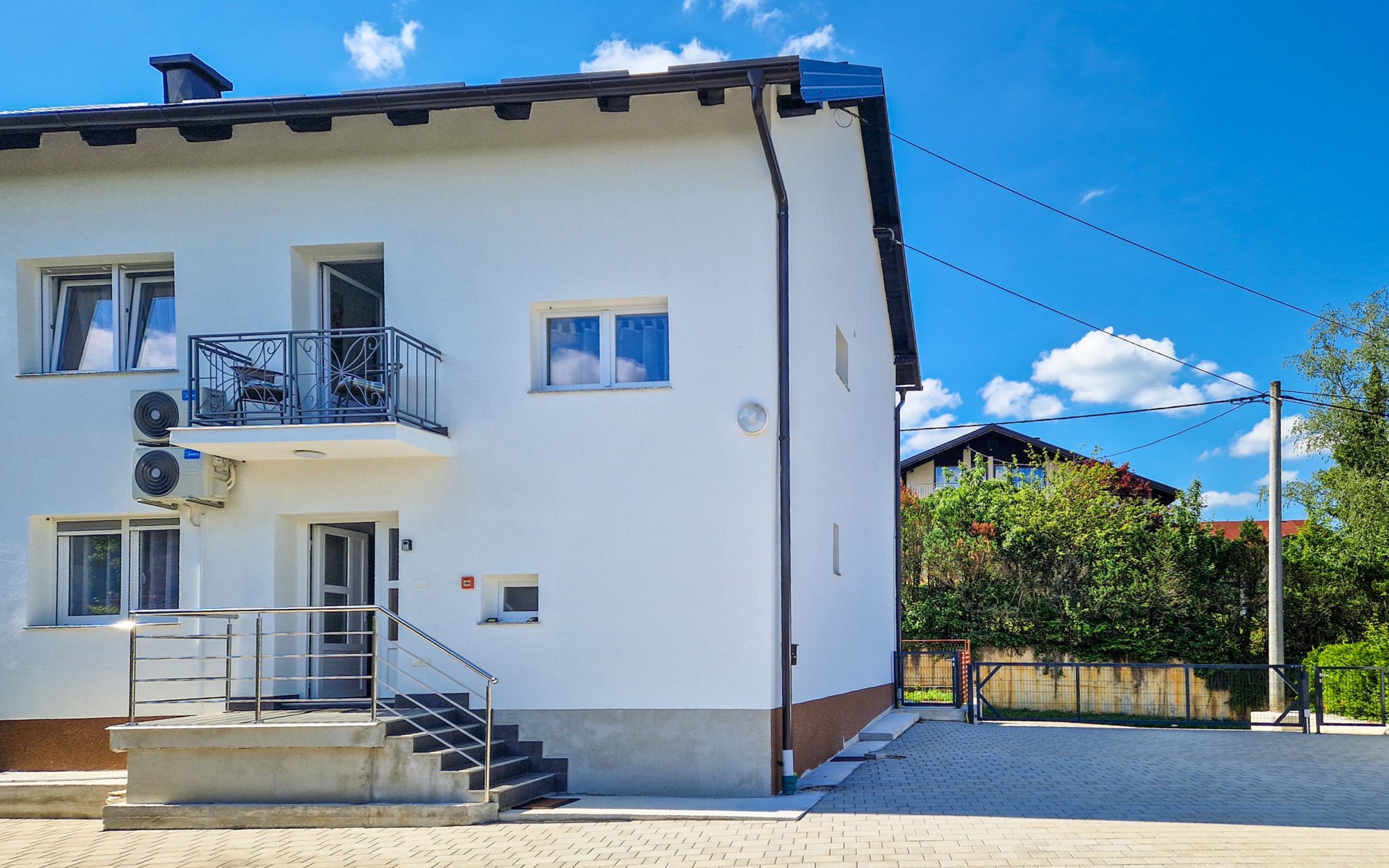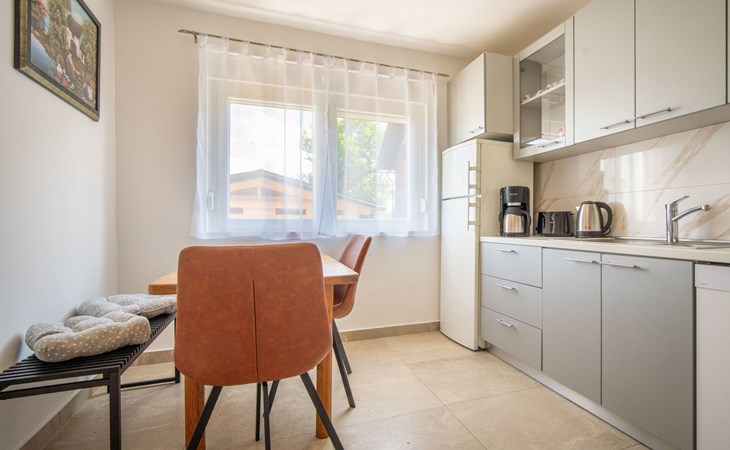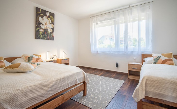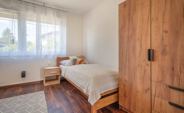 Belavići: Komfortables Einfamilienhaus "Golub", auf 2 Stockwerken, renoviert im Jahre 2025. 4.3 km vom Zentrum von Duga Resa, 14 km vom Zentrum von Karlovac, 100 km vom Meer, 1 km vom Fluss, an einer Strasse. Zur Alleinbenutzung: Grundstück 350 m2 mit Rasen 40 m2 Blumen. Sprudelbad, Pergola (20 m2), Grill. Im Hause: Internetzugang, Waschmaschine, Wäschetrockner. Parkplatz (für 4 Autos) beim Haus auf dem Grundstück. Supermarkt 650 m, Restaurant 600 m, Bushaltestelle, Bahnstation 500 m. Nahe gelegene Sehenswürdigkeiten: Old Town Bosiljevo 23 km, Old town Novigrad na Dobri 13 km, River Mrežnica 1 km. Bitte beachten: geeignet für Familien. Der Besitzer wohnt auf dem gleichen Grundstück.