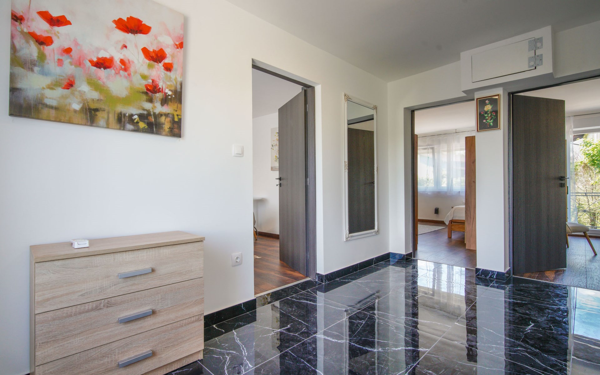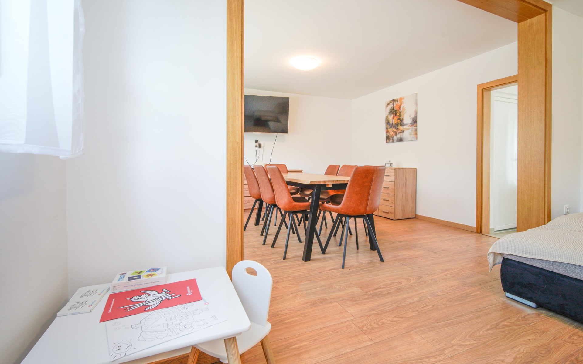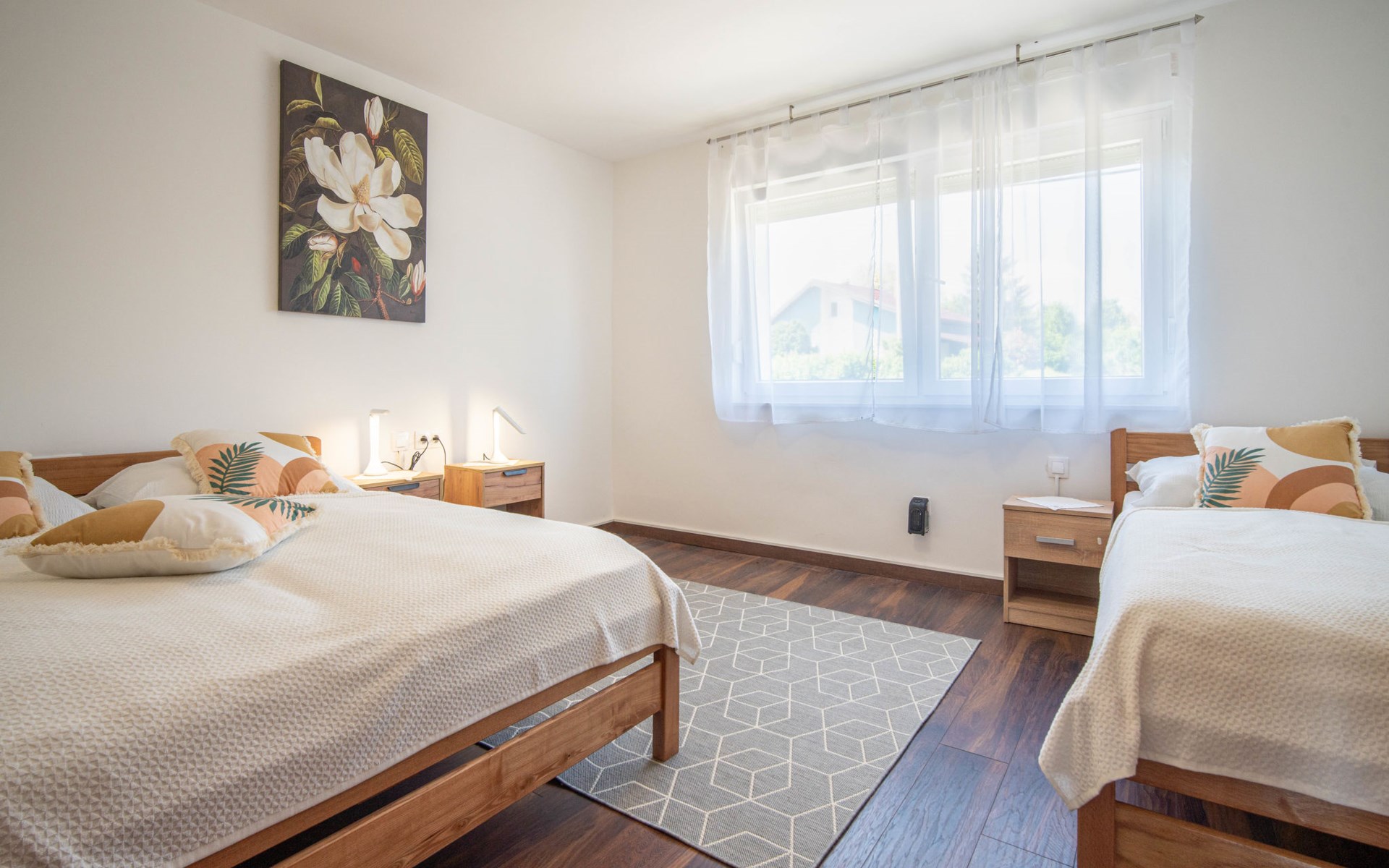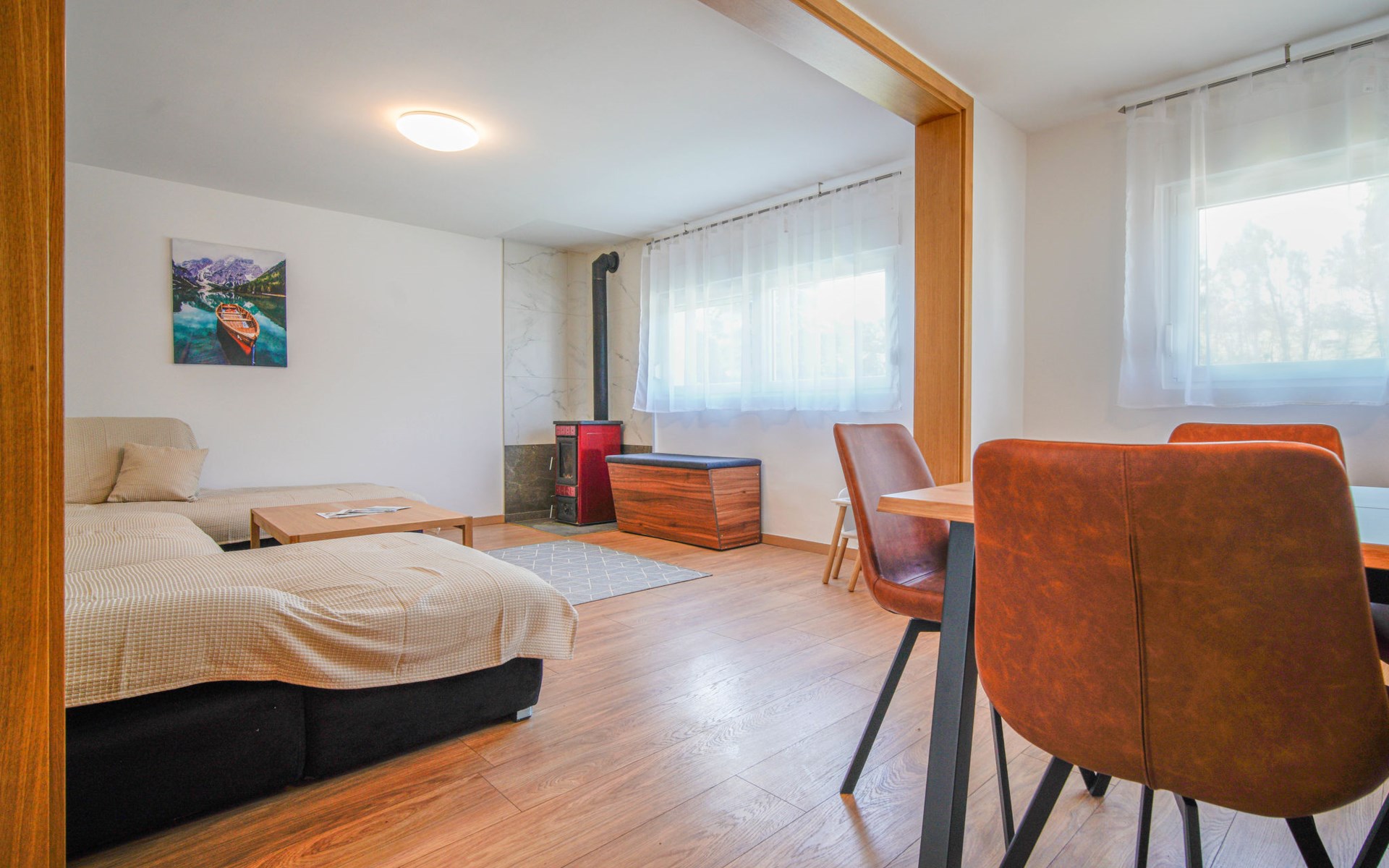 Belavići: Komfortables Einfamilienhaus "Golub", auf 2 Stockwerken, renoviert im Jahre 2025. 4.3 km vom Zentrum von Duga Resa, 14 km vom Zentrum von Karlovac, 100 km vom Meer, 1 km vom Fluss, an einer Strasse. Zur Alleinbenutzung: Grundstück 350 m2 mit Rasen 40 m2 Blumen. Sprudelbad, Pergola (20 m2), Grill. Im Hause: Internetzugang, Waschmaschine, Wäschetrockner. Parkplatz (für 4 Autos) beim Haus auf dem Grundstück. Supermarkt 650 m, Restaurant 600 m, Bushaltestelle, Bahnstation 500 m. Nahe gelegene Sehenswürdigkeiten: Old Town Bosiljevo 23 km, Old town Novigrad na Dobri 13 km, River Mrežnica 1 km. Bitte beachten: geeignet für Familien. Der Besitzer wohnt auf dem gleichen Grundstück.