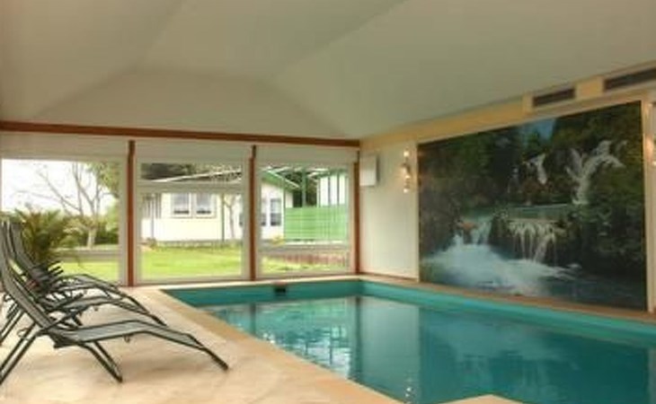 Der Außenbereich lädt zum Verweilen und Genießen ein. Eine Terrasse, ein gemeinschaftlicher Garten, und Zugang zu einem gemeinschaftlichen Indoorpool bieten vielfältige Möglichkeiten zur Entspannung und zur Freizeitgestaltung. Für die aktiven Gäste gibt es eine Spielwiese, und wer sein Elektroauto mitbringen möchte, findet eine praktische Aufladestation vor.