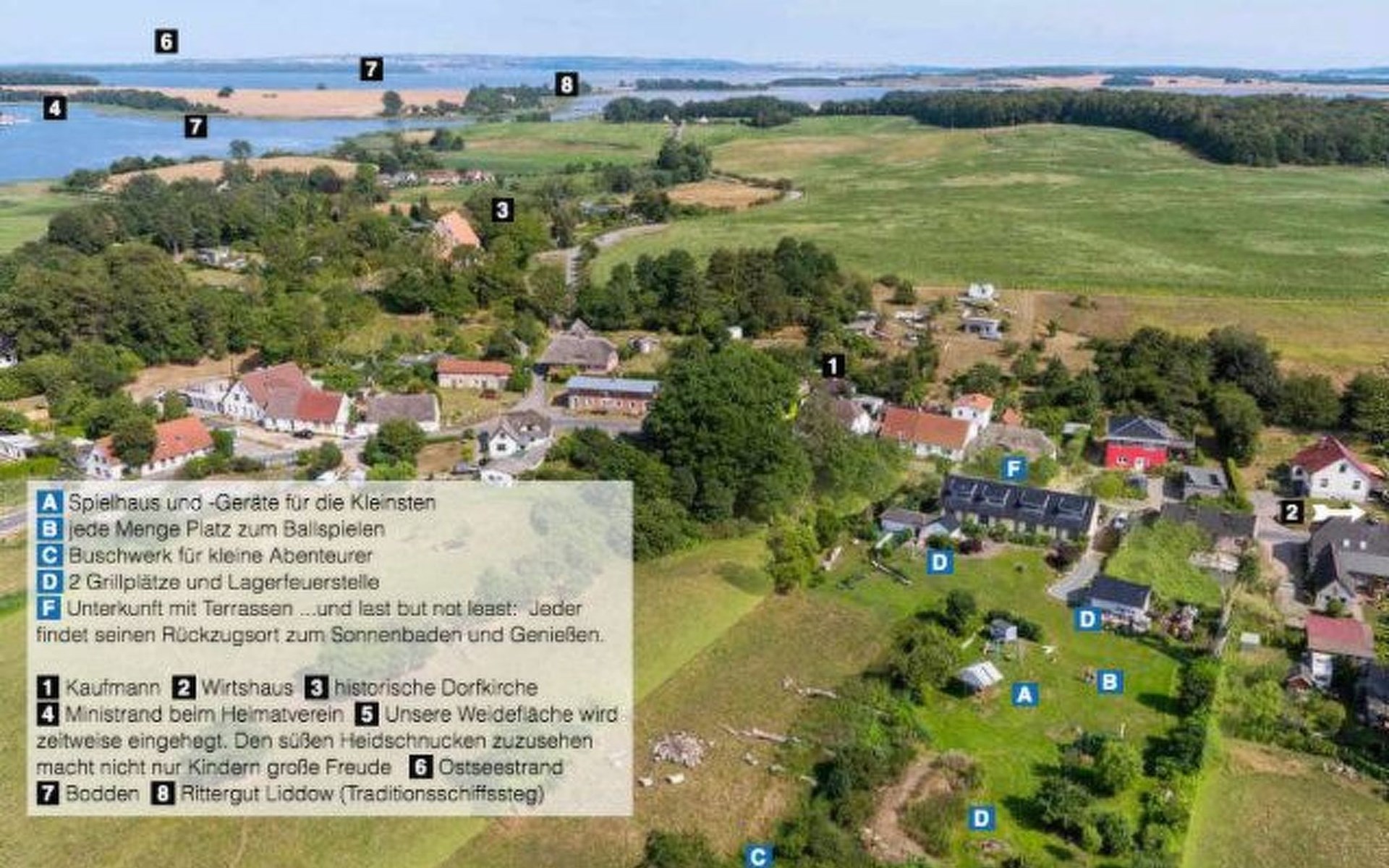 Auf dem weitläufigen Grundstück befinden sich ein Spielplatz mit Rutsche, Schaukeln, Spielhäusern und großer Spielwiese. Viel Platz zum Sonnenbaden oder Rückzugsorte mit einem guten Buch. Der große, teilüberdachte Grillplatz steht allen Gästen zur Verfügung und bietet nicht nur Schutz vor einem Schauer, sondern Sie haben auch Ihre Kinder im Blick beim Spielen - und abends den goldenen Sonnenuntergang über dem Hügel von Moritzhagen.