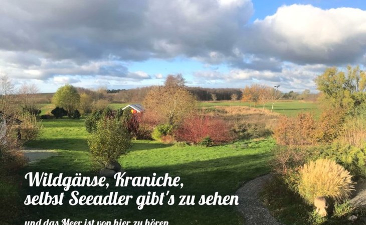 Wenn Sie mal nicht selbst kochen mögen, sorgt die sehr gute Küche (mediterran angehaucht, deutsch) des "Wirtshauses Neuenkirchen" auch kulinarisch für Entspannung. Für den täglichen Bedarf ist der Einkauf im Kaufmannsladen (Brötchen außer Sonntag) schräg gegenüber wie eine kleine Zeitreise in eine heile Welt. Beides erreichen sich in ca. 50 m Entfernung. Leckerste Steaks, kaufen Sie am Besten im Hofladen „Wild und Rind" am Anfang der Dorfstraße. Ebenfalls fußläufig ist der kleine, hübsche Sandstrand zum Plantschen oder abendliche Abkühlung im Lebbiner Bodden empfohlen, ca. 20 Min. direkt an der ehemaligen Kulisse der Robbenstation von "Hallo Robbie". Robben werden Sie hier eher nicht antreffen, aber sauberes Bodden-Wasser, da je nach Wetterlage ein starker Wasseraustausch zwischen Ostsee und den Bodden zirkuliert. Der Hausberg von Neuenkirchen ist der "Hoch Hilgor". Wanderung ca. 25 Min. von der Ferienanlage entfernt. Vom Aussichtsturm haben Sie einen fantastisches Rundumblick über die Insel und bei ganz klarer Sicht bis nach Dänemark zum Møns Klint.