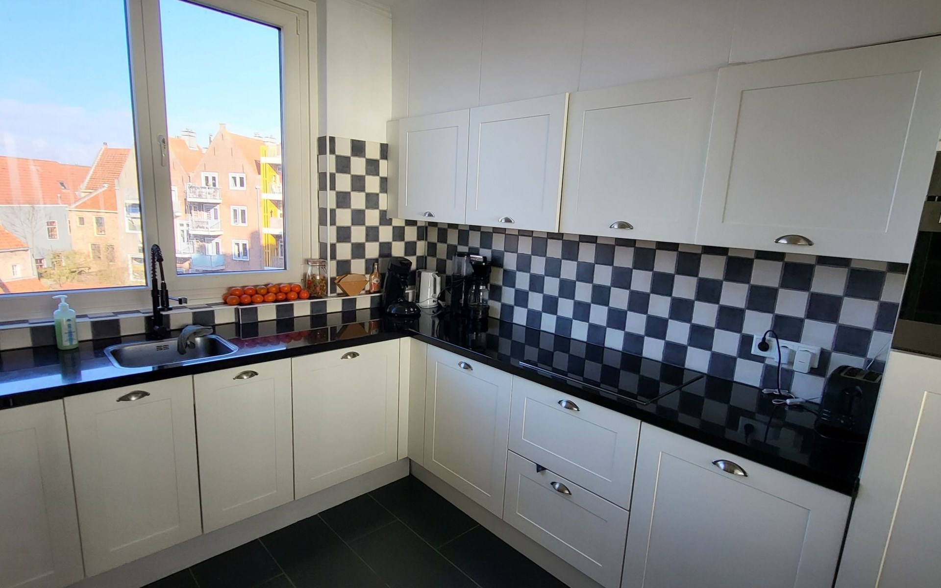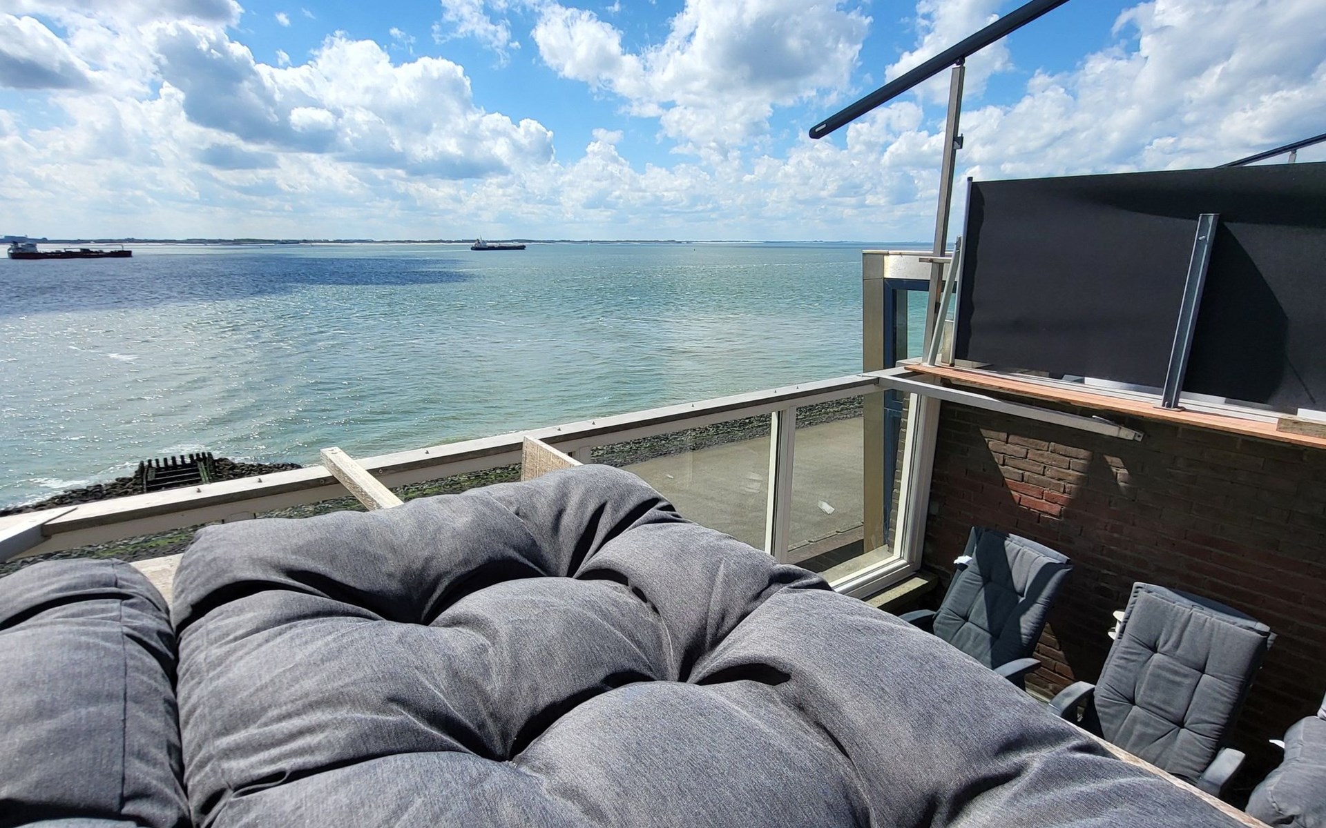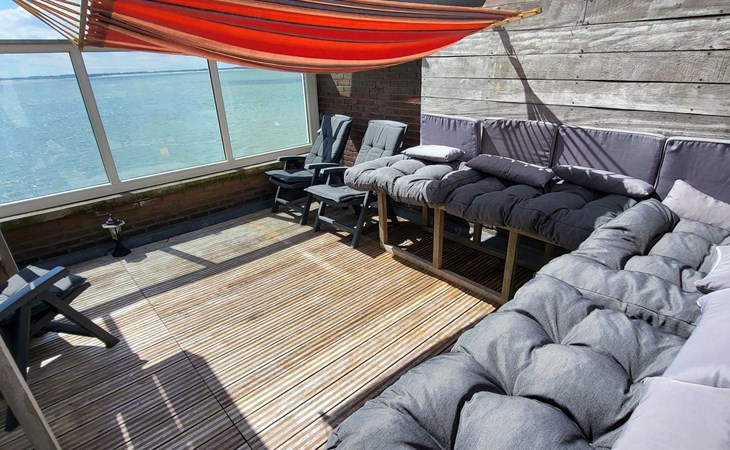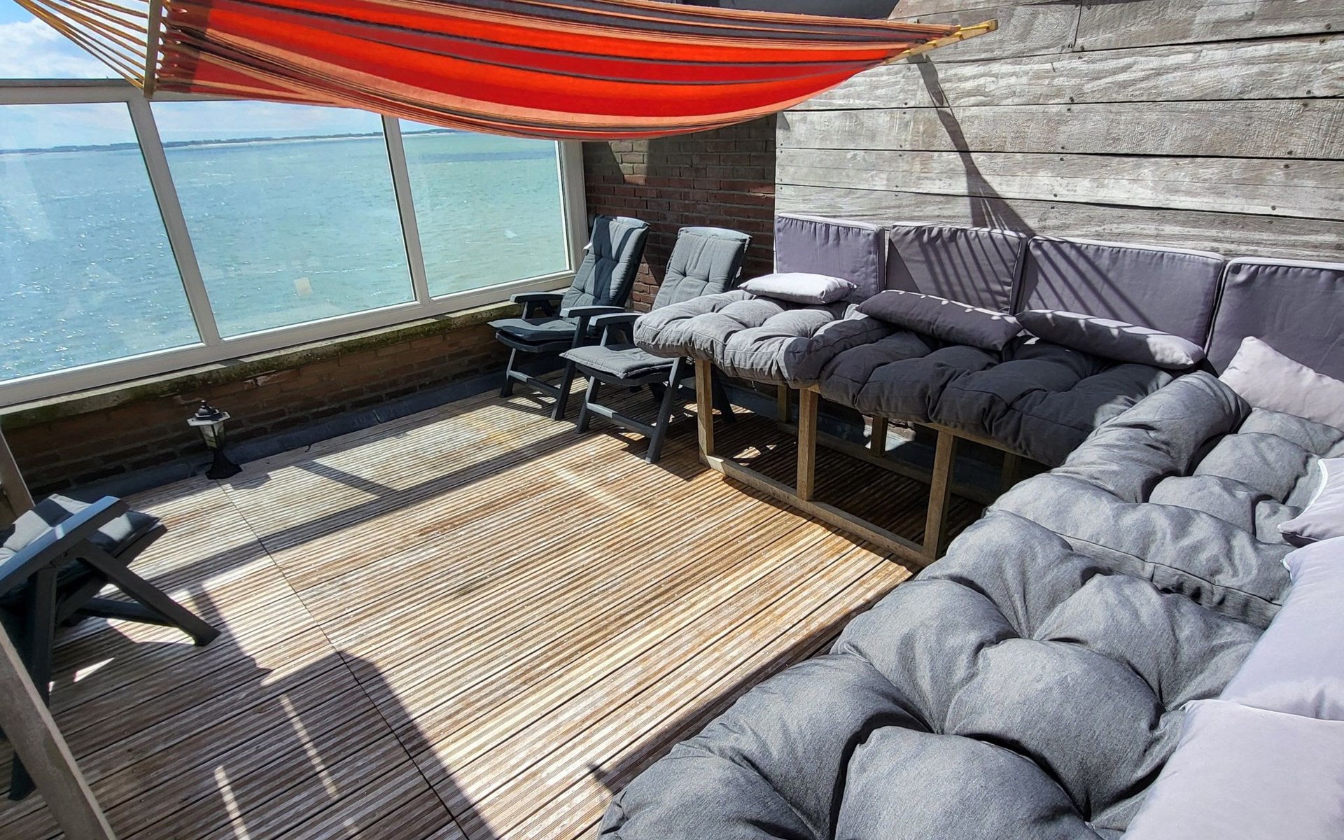 Der Außenbereich ist ebenso beeindruckend mit mehreren Plätzen zum Genießen im Freien: ein sonniger Balkon im zweiten Stock und eine geräumige, sicher abgeschirmte Dachterrasse von nicht weniger als 40 Quadratmetern, die nach Süden ausgerichtet ist und einen spektakulären Blick auf das Meer und die Altstadt bietet. Hier kann man sich sonnen oder die vorbeiziehenden Schiffe bewundern, während man einen Drink genießt oder sich mit anderen trifft.
