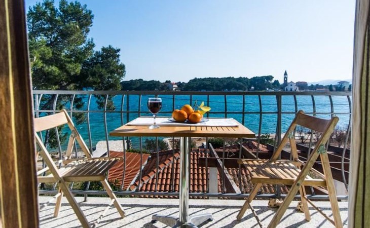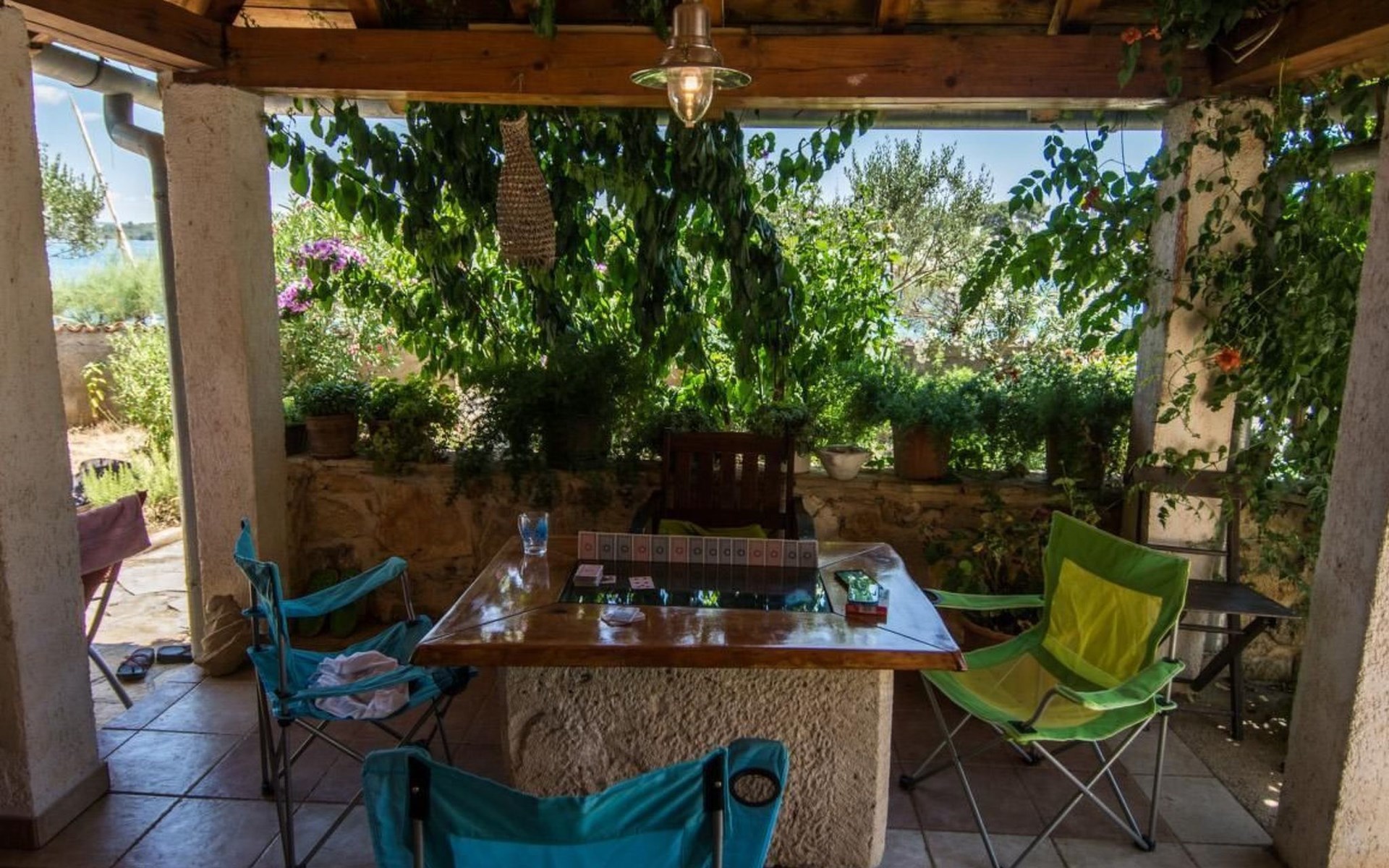 Der Balkon bietet einen atemberaubenden Blick auf das Meer und ist mit einem Tisch und zwei Stühlen ausgestattet, die zum Verweilen einladen. Der Gemeinschaftsgarten bietet eine herrliche Umgebung zum Entspannen oder um sich mit anderen Gästen auszutauschen. Außerdem steht Ihnen eine geräumige, traditionell eingerichtete Sommerküche mit Grill und Herd zur Verfügung, in der Sie herrlich im Freien kochen und essen können.