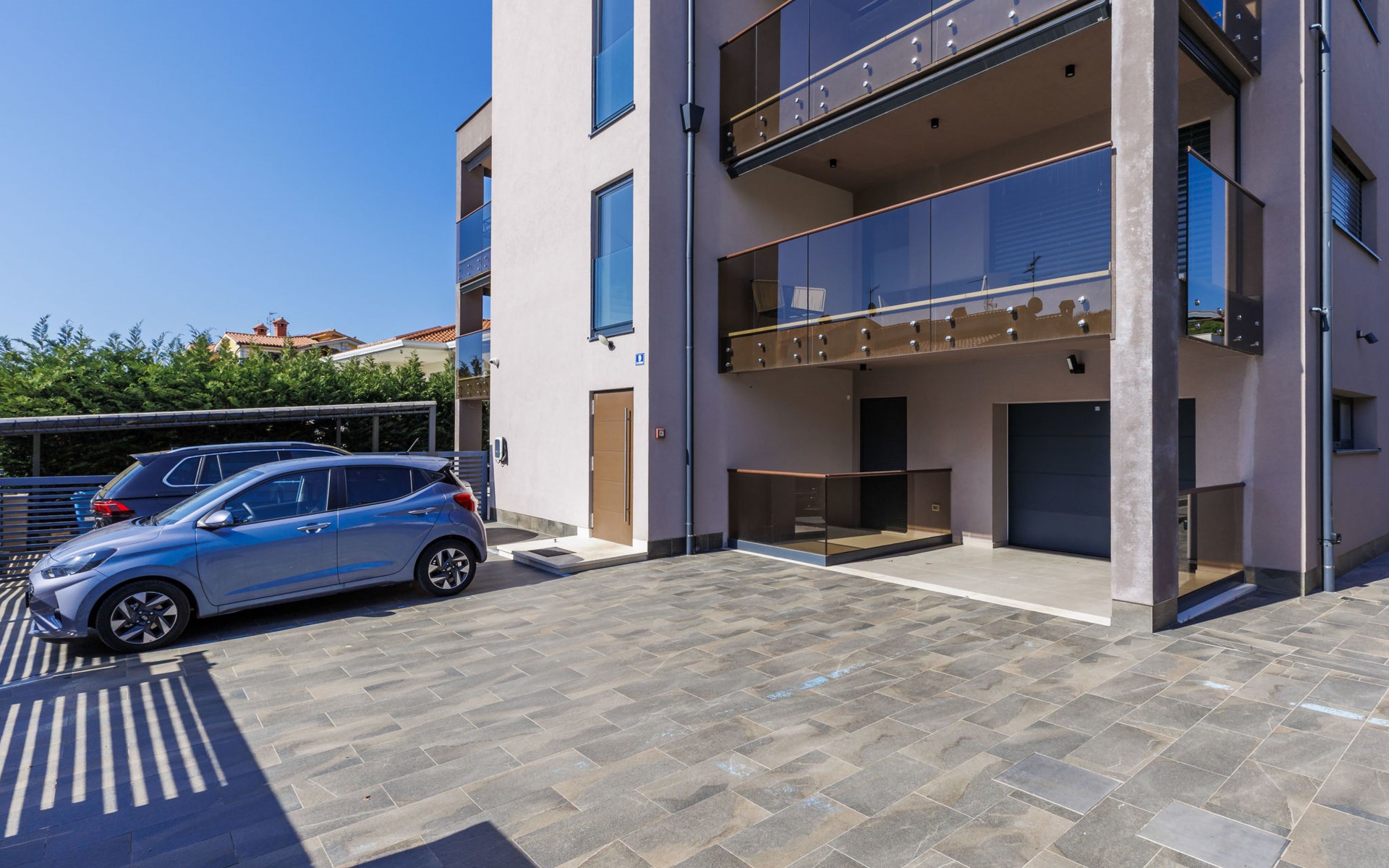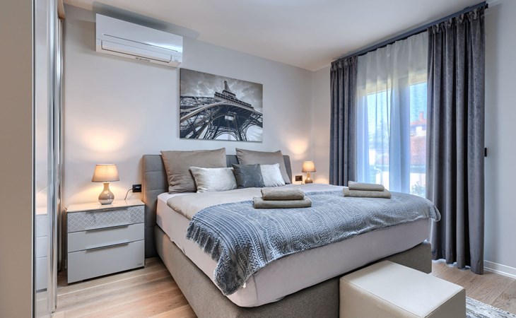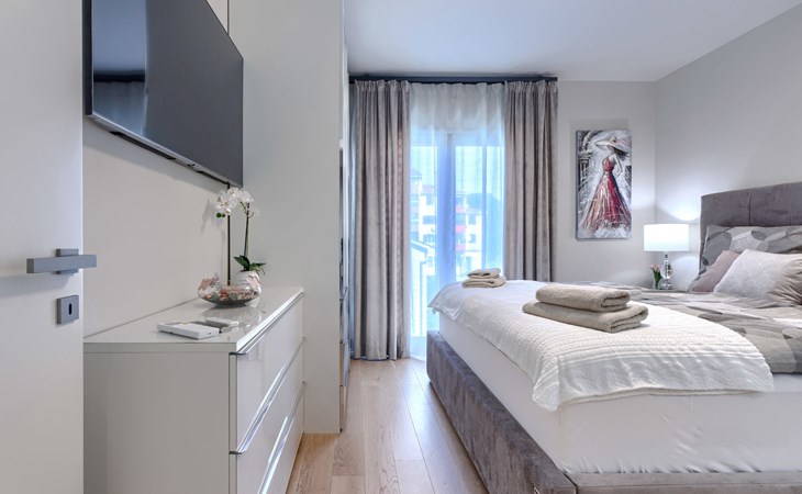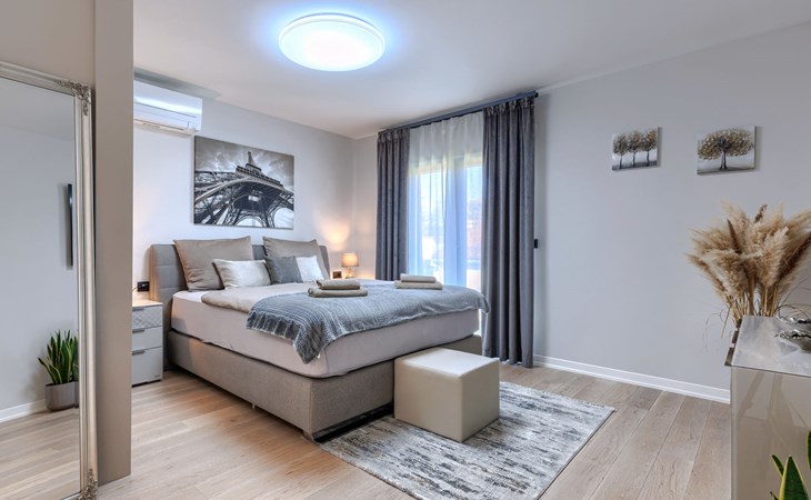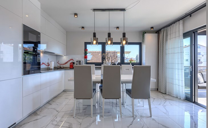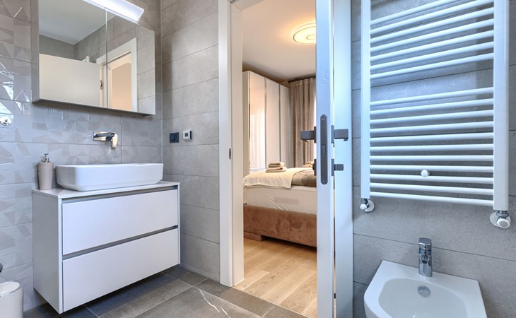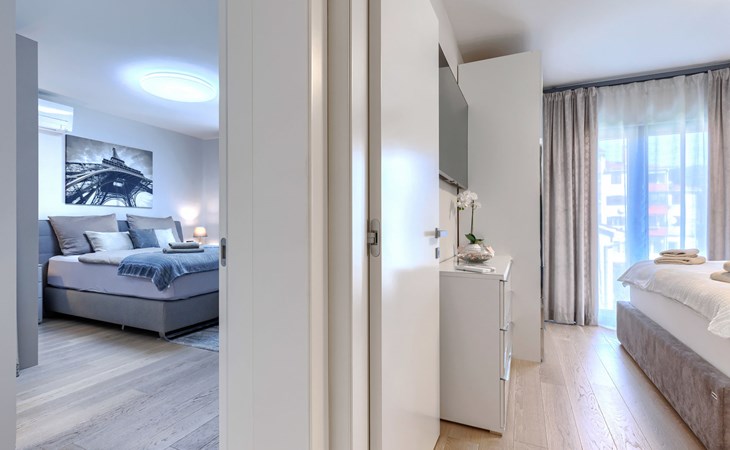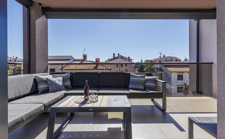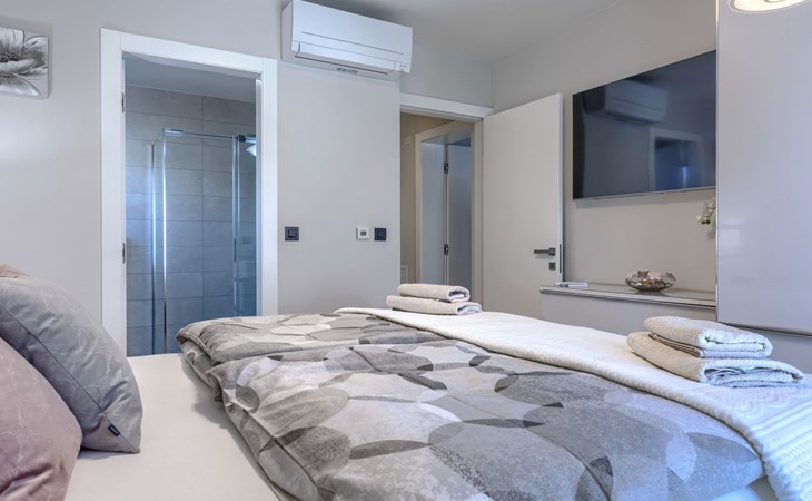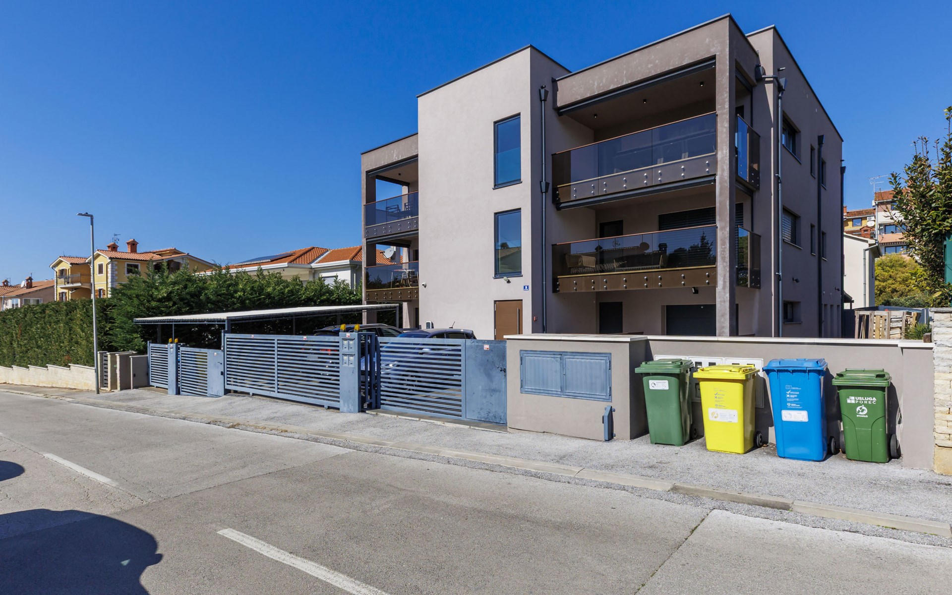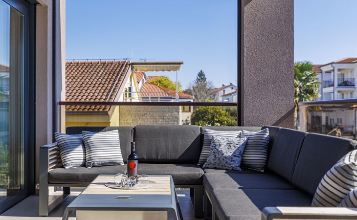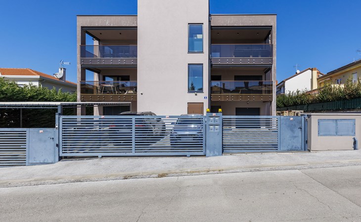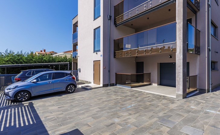 Modernes Mehrfamilienhaus. Im Ortsteil Čimižin, 900 m vom Zentrum von Poreč, 600 m vom Meer, 800 m vom Strand. Im Hause: Internetzugang, Fahrstuhl. Parkplatz beim Haus auf dem Grundstück. Supermarkt 350 m, Restaurant 500 m, Bushaltestelle 1.1 km, Kieselstrand, Felsstrand 800 m. Jacht-Hafen 1 km, Segelschule 1 km, Tennis 1 km, Wanderwege ab Haus 1 km, Radweg 1 km, Kinderspielplatz 300 m. Nahe gelegene Sehenswürdigkeiten: Aquapark 3 km. Der Besitzer akzeptiert keine Jugendgruppen.