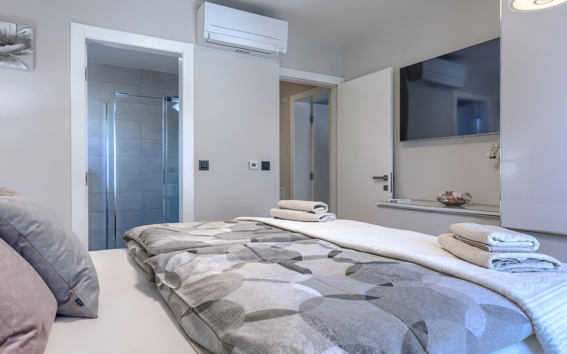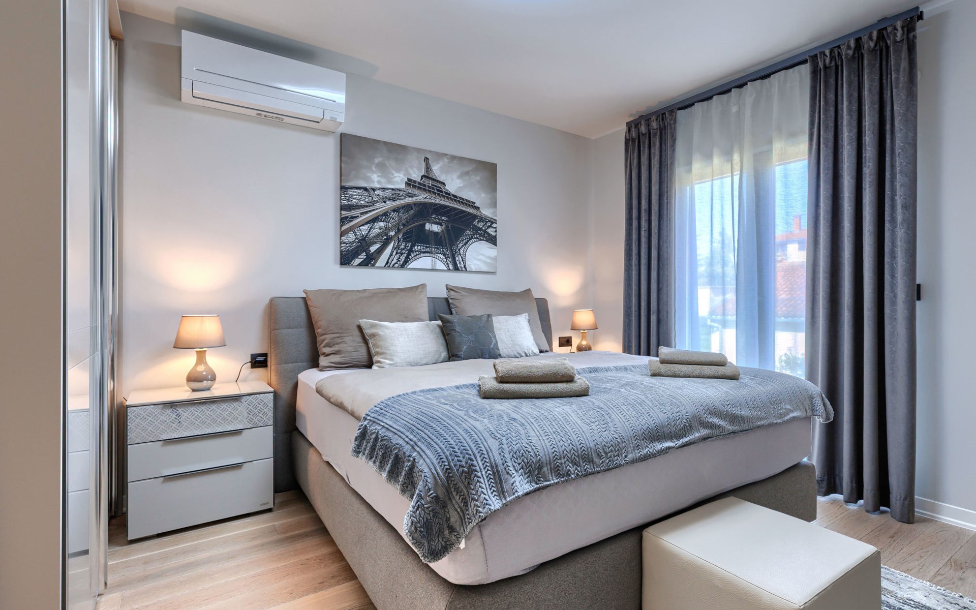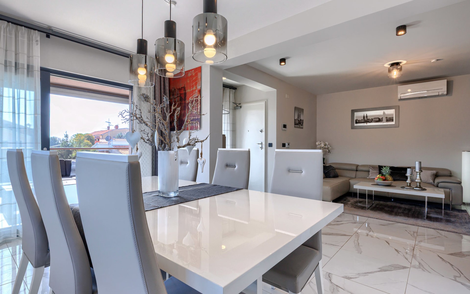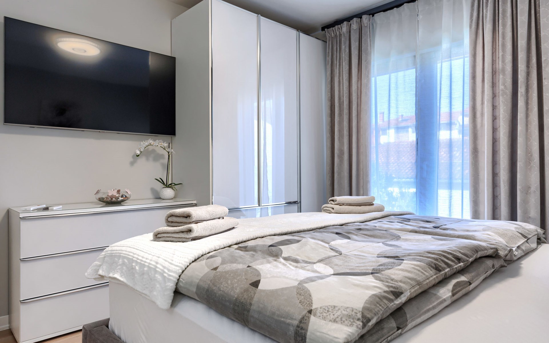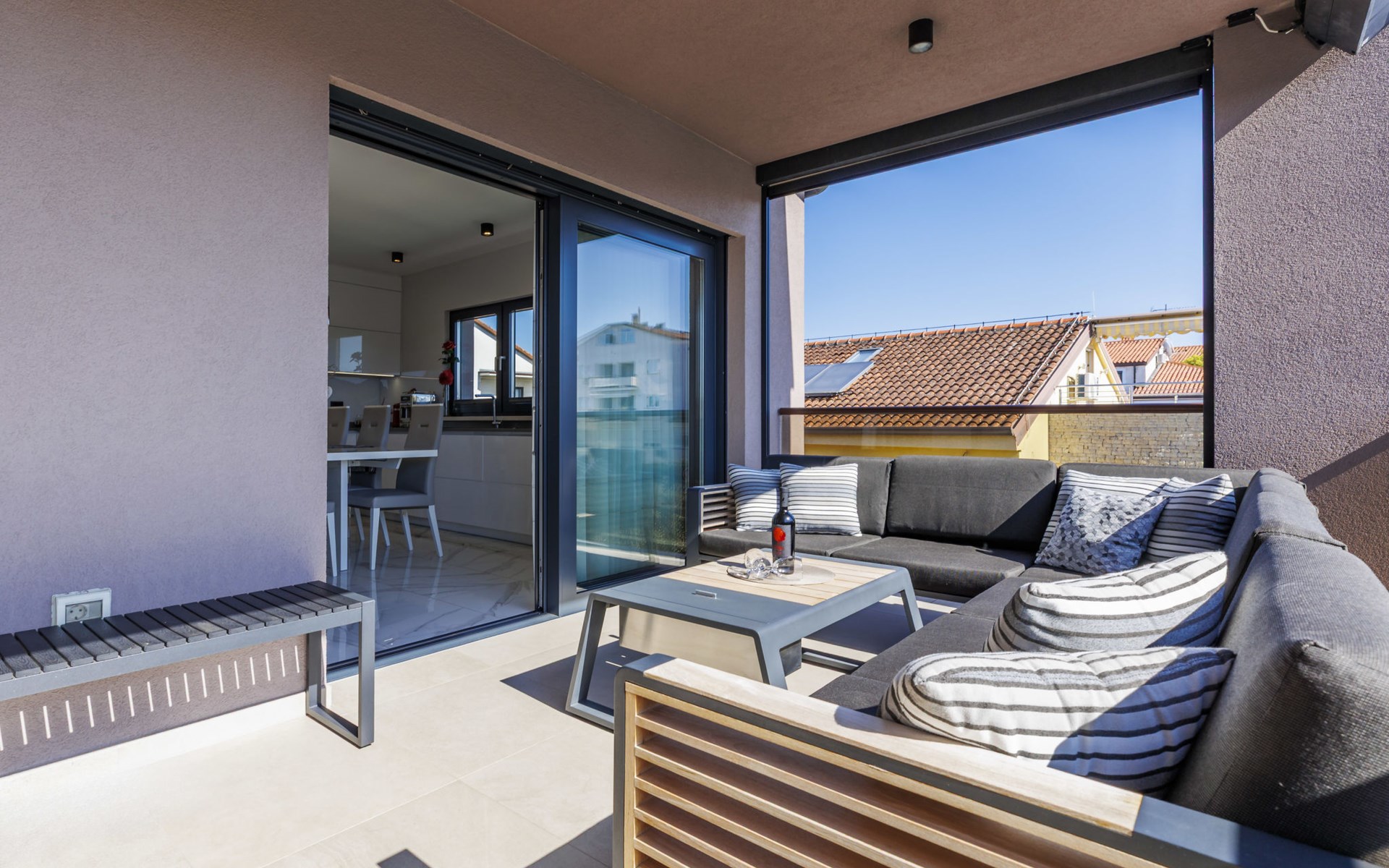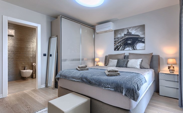 Modernes Mehrfamilienhaus. Im Ortsteil Čimižin, 900 m vom Zentrum von Poreč, 600 m vom Meer, 800 m vom Strand. Im Hause: Internetzugang, Fahrstuhl. Parkplatz beim Haus auf dem Grundstück. Supermarkt 350 m, Restaurant 500 m, Bushaltestelle 1.1 km, Kieselstrand, Felsstrand 800 m. Jacht-Hafen 1 km, Segelschule 1 km, Tennis 1 km, Wanderwege ab Haus 1 km, Radweg 1 km, Kinderspielplatz 300 m. Nahe gelegene Sehenswürdigkeiten: Aquapark 3 km. Der Besitzer akzeptiert keine Jugendgruppen.