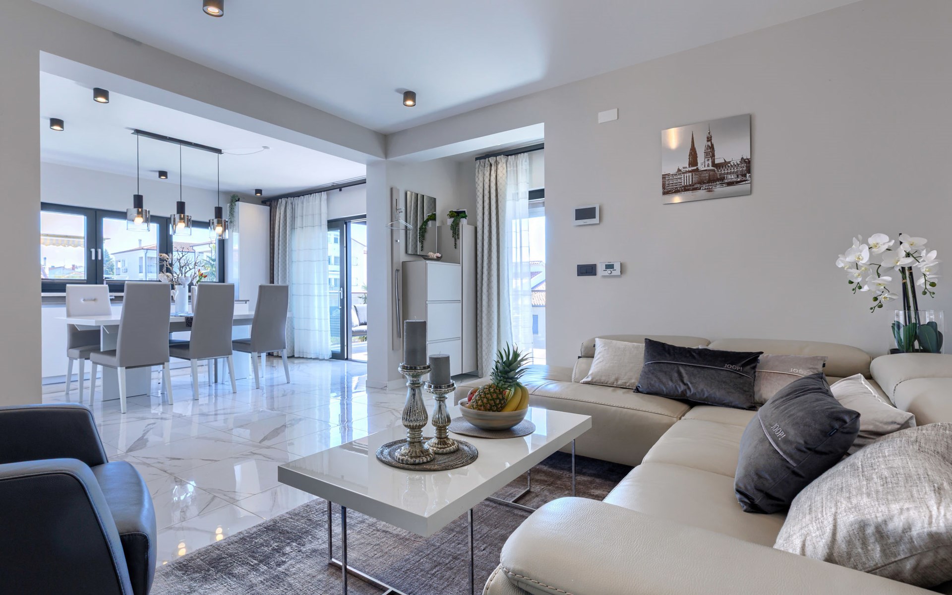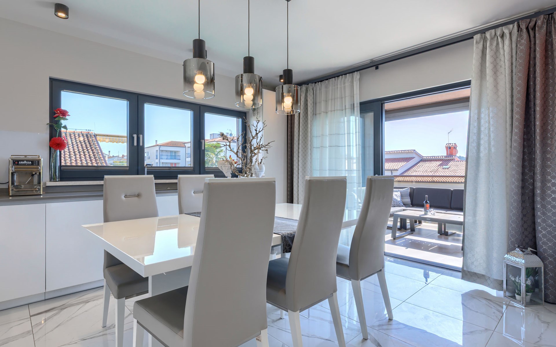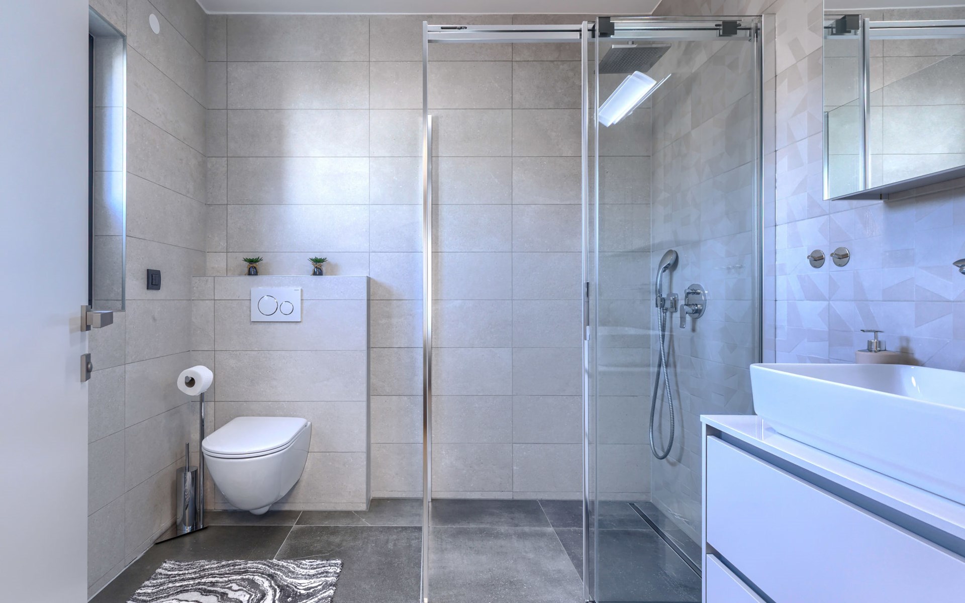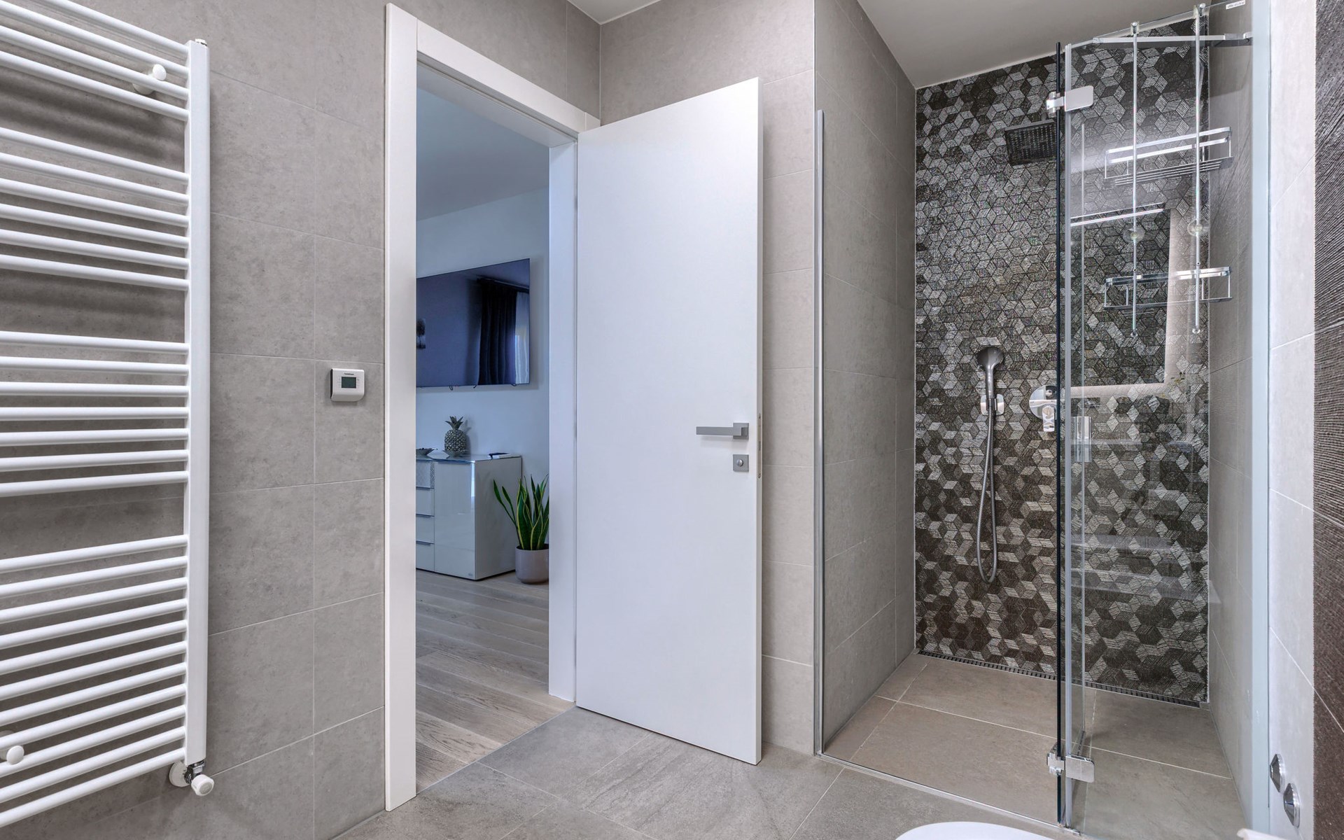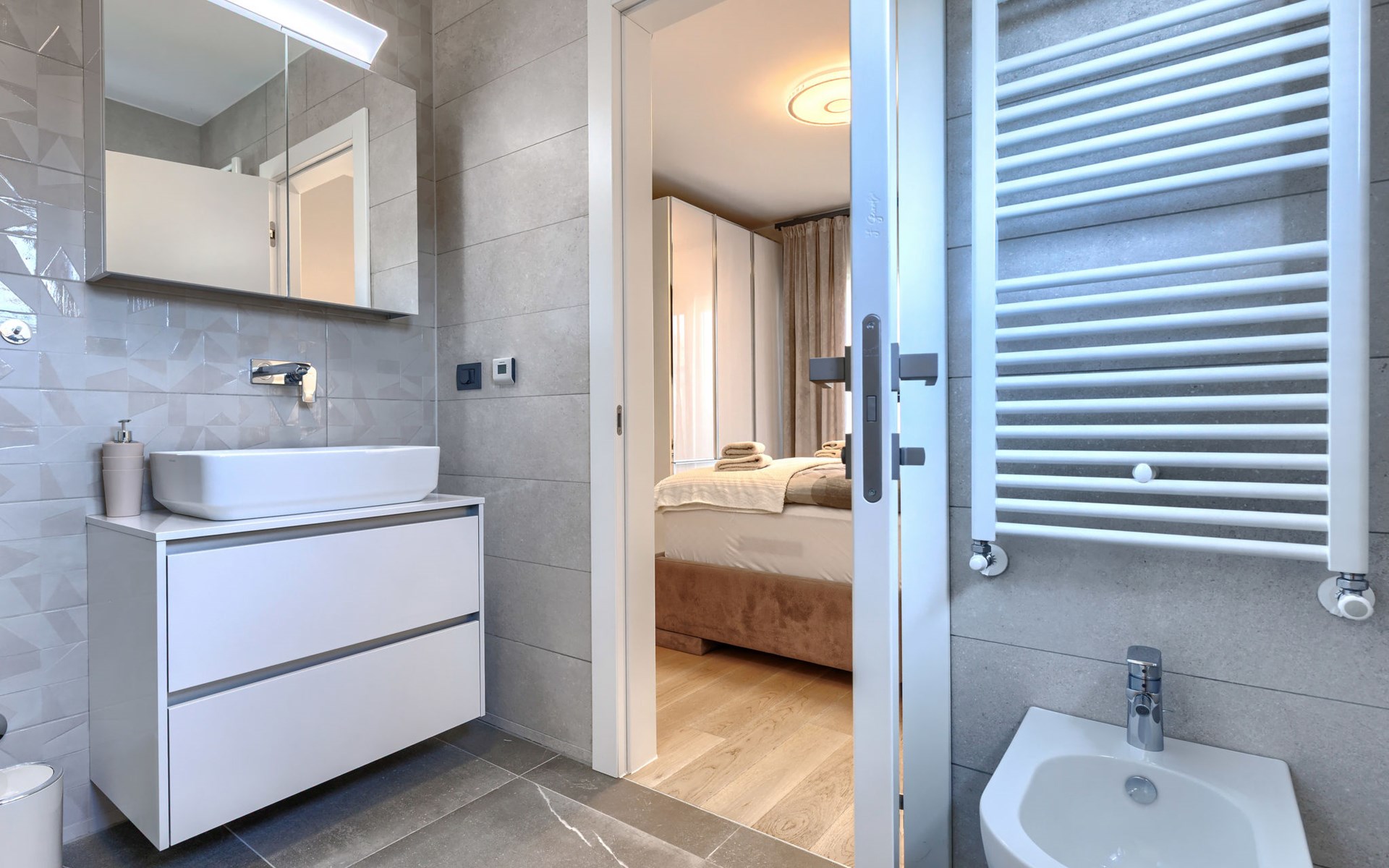 Modernes Mehrfamilienhaus. Im Ortsteil Čimižin, 900 m vom Zentrum von Poreč, 600 m vom Meer, 800 m vom Strand. Im Hause: Internetzugang, Fahrstuhl. Parkplatz beim Haus auf dem Grundstück. Supermarkt 350 m, Restaurant 500 m, Bushaltestelle 1.1 km, Kieselstrand, Felsstrand 800 m. Jacht-Hafen 1 km, Segelschule 1 km, Tennis 1 km, Wanderwege ab Haus 1 km, Radweg 1 km, Kinderspielplatz 300 m. Nahe gelegene Sehenswürdigkeiten: Aquapark 3 km. Der Besitzer akzeptiert keine Jugendgruppen.
