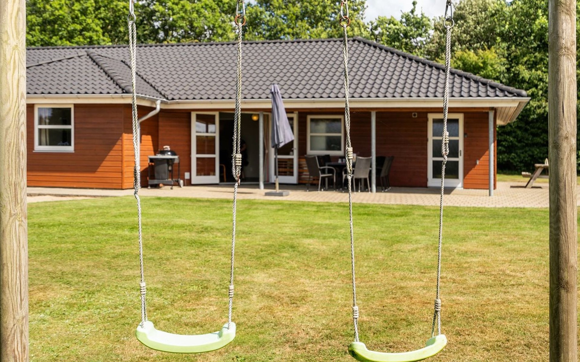 Einfamilienhaus, Baujahr 2008. 25 km vom Meer. Zur Alleinbenutzung: Grundstück 1'200 m2, gepflegter Garten. Terrasse (80 m2), Kinderspielplatz (Schaukel). Im Hause: Sauna, Waschmaschine, Wäschetrockner. Parkplatz beim Haus. Lebensmittelgeschäft 1 km. Der Besitzer akzeptiert keine Jugendgruppen.