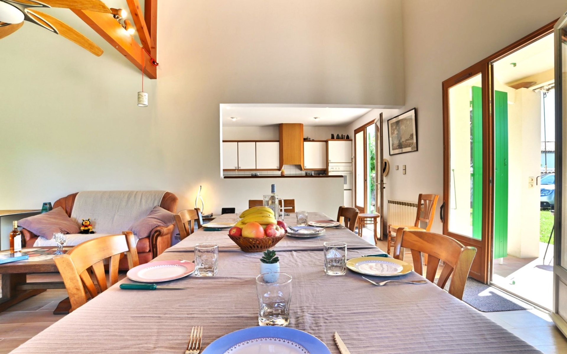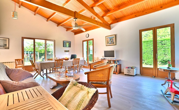 Grosses Einfamilienhaus "L'Horizon A". Im Ort, 500 m vom Zentrum von Saint Denis d'Oléron, ruhige Lage, 650 m vom Meer, 650 m vom Strand. Zur Alleinbenutzung: Grundstück 1'000 m2 mit Rasen und Pflanzen, Parkplatz auf dem Grundstück. Einkaufsgeschäft, Lebensmittelgeschäft, Restaurant, Bar, Bäckerei, Café, Fahrradverleih 600 m, Bushaltestelle "Stade de Saint Denis" 1 km, Bahnstation "Rochefort sur mer" 59 km, Sandstrand "600". Sporthafen 700 m, Golfplatz (9 Loch) 20 km, Surfschule 6 km, Segelschule 700 m. Nahe gelegene Sehenswürdigkeiten: Iléo centre aquatique 23 km, Phare de Chassiron 4 km, Port de la Cotiniere 17 km, Corderie Royale Rochefort 57 km, La Rochelle 93 km.