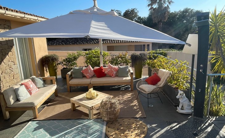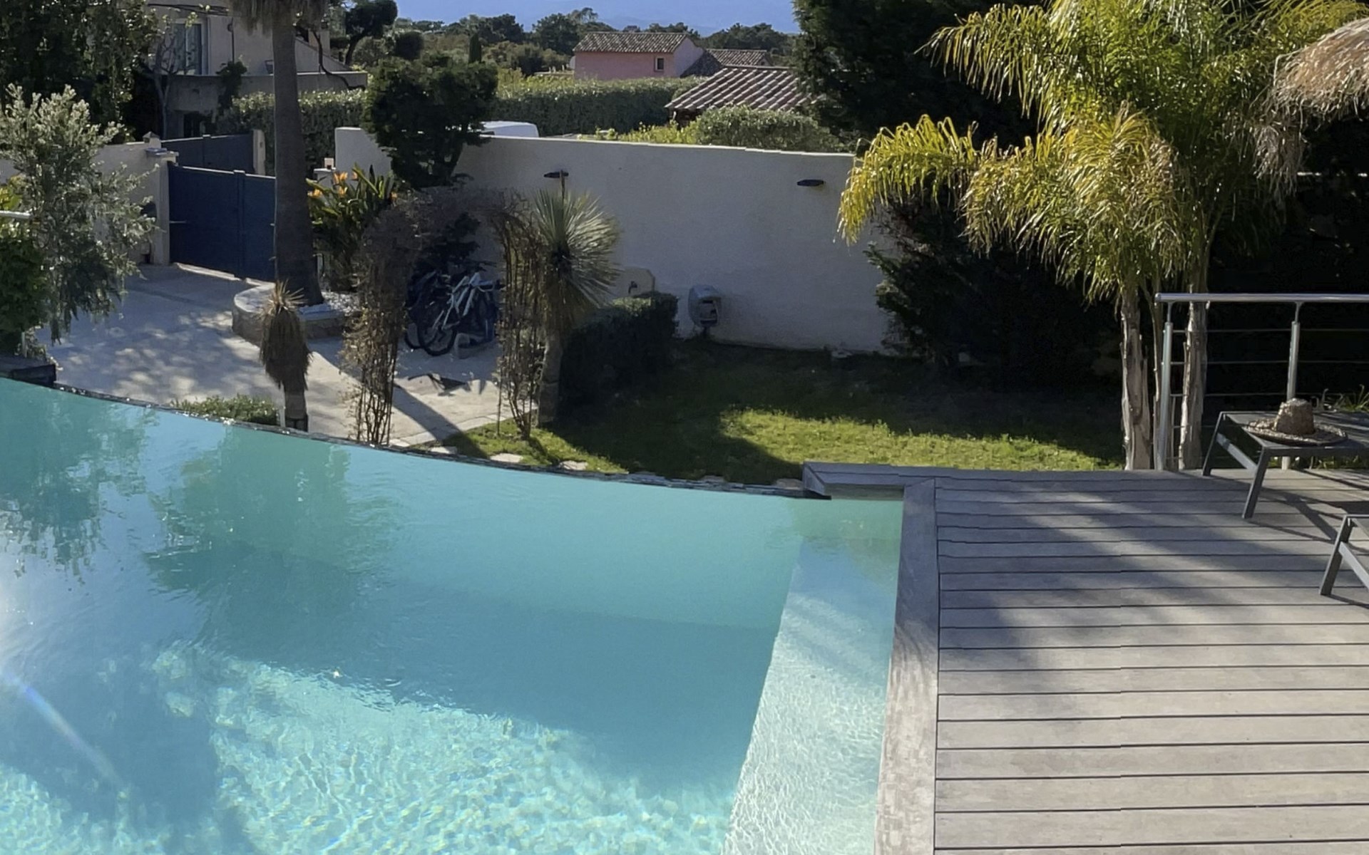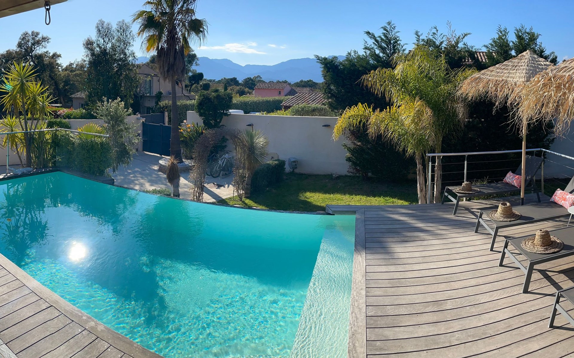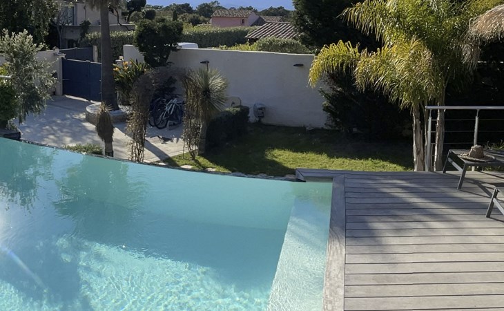Klimatisierte Villa mit 4 Schlafzimmern, Infinity-Pool und Poolhaus, ideal gelegen an der Kreuzung der Strände. Parkplatz mit Tor und kostenloses Wifi.