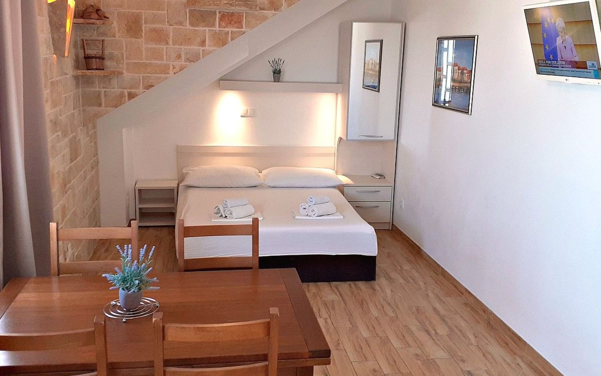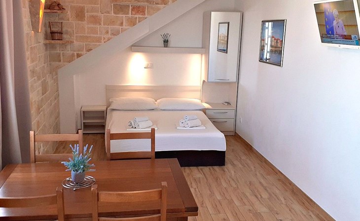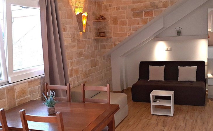 Zu Fuss erreicht man in drei bis vier Minuten Geschäfte und Restaurants sowie einen Spielplatz in 50 m. Baska Voda ist ein berühmter Urlaubsort am Fuße des Biokovo auf der Makarska Riviera in Mitteldalmatien. Baska Voda hat eine Fülle von Möglichkeiten für Ruhe und Erholung auf dem Land und am Meer, schöne Kies-und Sandstränden, zahlreiche Sportmöglichkeiten, Tauchschulen, Plätze für Nautiker in der erweiterten Hafen usw. Nebeb des Meeres und Sonne, Badefreuden und angenehmen Spazierwegen, historischen Denkmäler und einem Museum bietet Baska Voda attraktive Kultur-und Unterhaltungsveranstaltungen, verschiedene Sport-und Freizeiteinrichtungen (Tennis, Fußball, Handball, Tischtennis, Minigolf, Angeln, Wandern, etc.). Baska Voda ist der Startpunkt für viele organisierte Ausflüge zu den Inseln Brac, Hvar, Korcula und anderen beliebten Urlaubszielen Dubrovnik, Mostar, Split, Trogir, Sibenik, Plitvice Seen ...In den Abendstunden es gibt viele Unterhaltungsmöglichkeiten in Bars, auf Terrassen und Diskotheken. Regionale Spezialitäten werden von vielen Restaurants und Gaststätten angeboten.