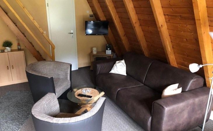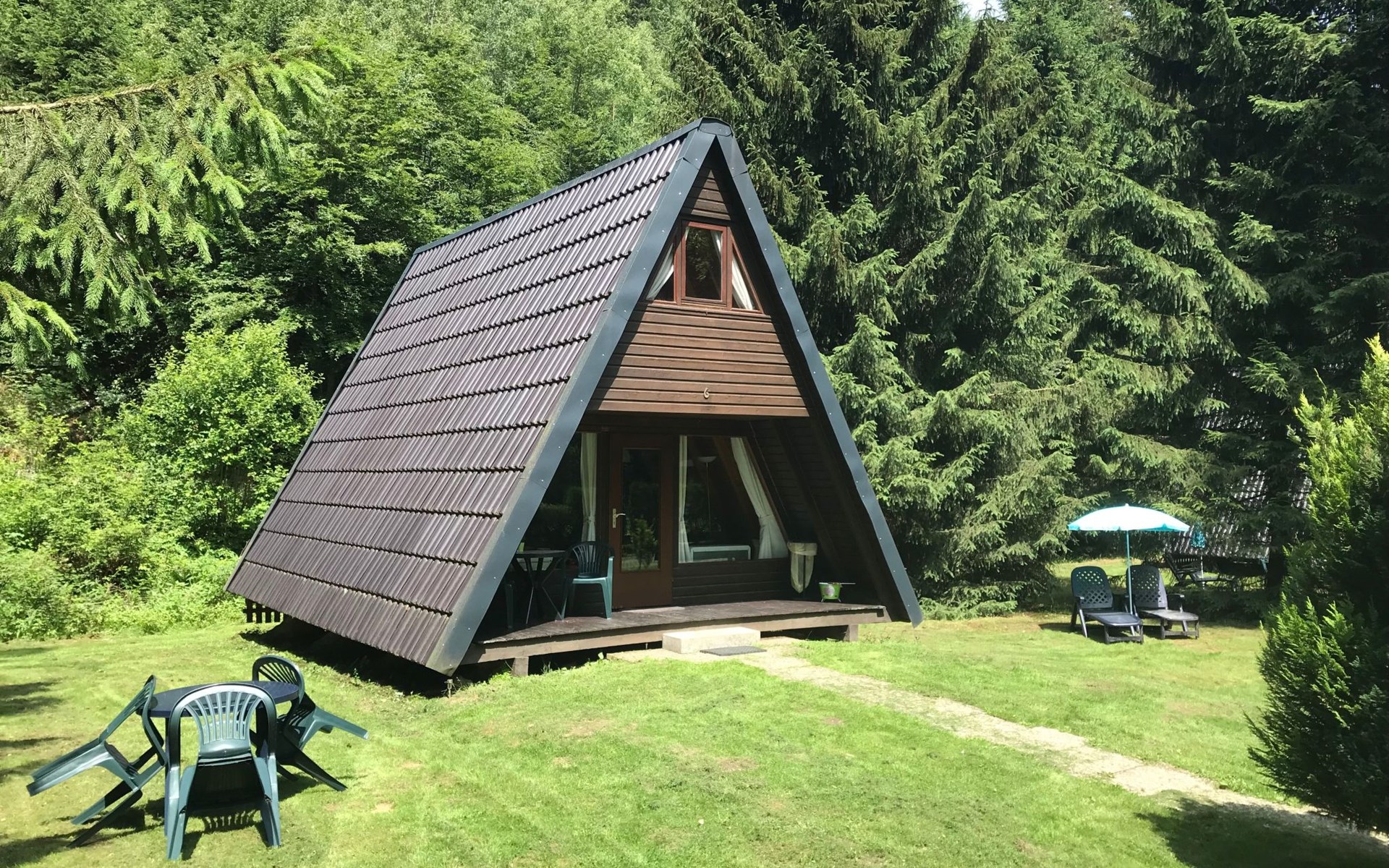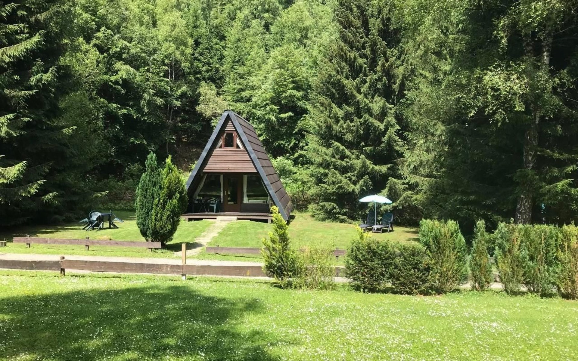 Flachbildschirm, Kabelfernsehen, Stereoanlage mit CD-Player, Senceo Kaffeepadmaschine, Regendusche, Kinderbett, Kinderhochstuhl, Tisch, Stühle und Sonnenschirm auf der Veranda, zwei Liegestühle für den Garten und einen Grill. Im Winter hat jedes einen Schlitten.