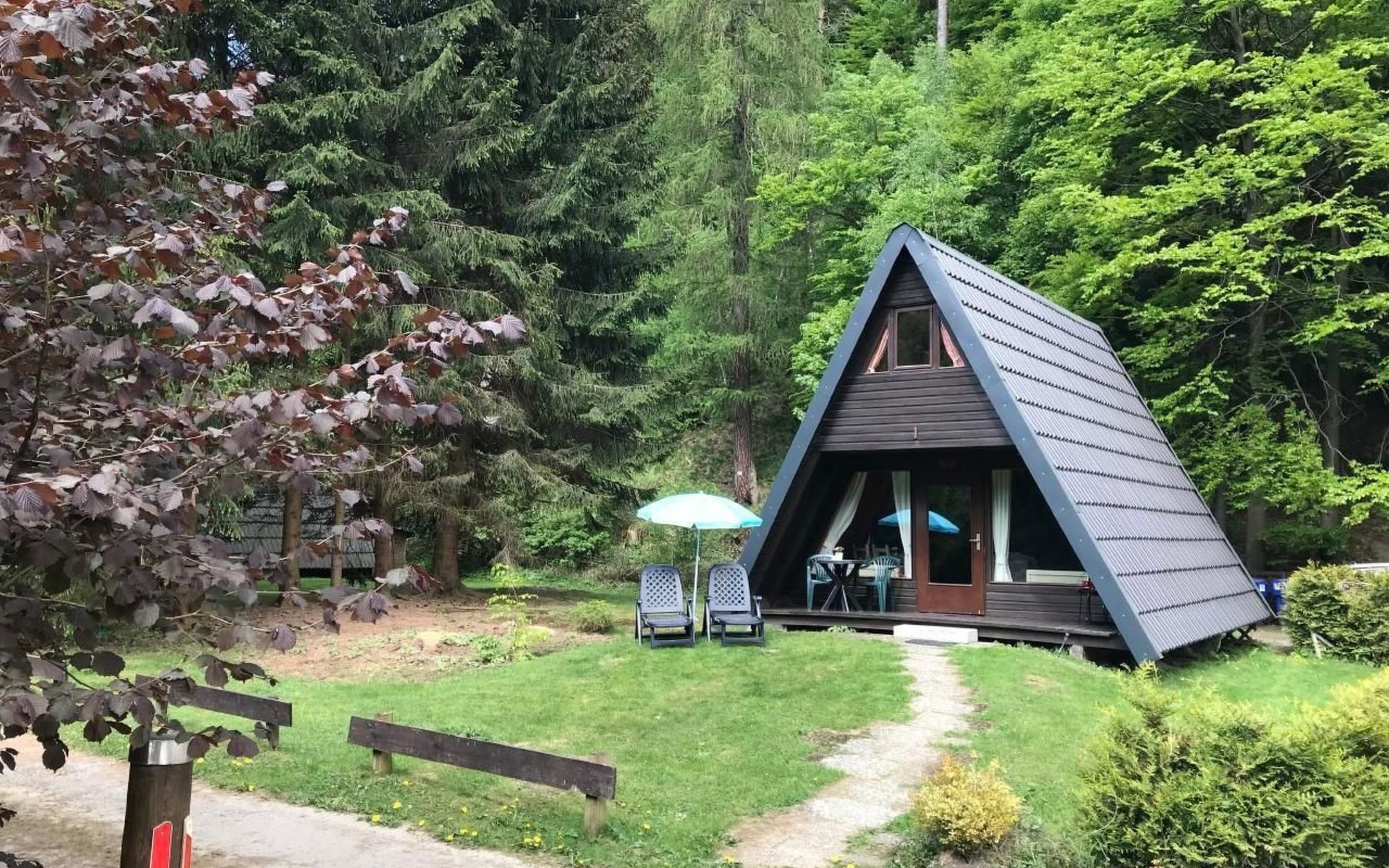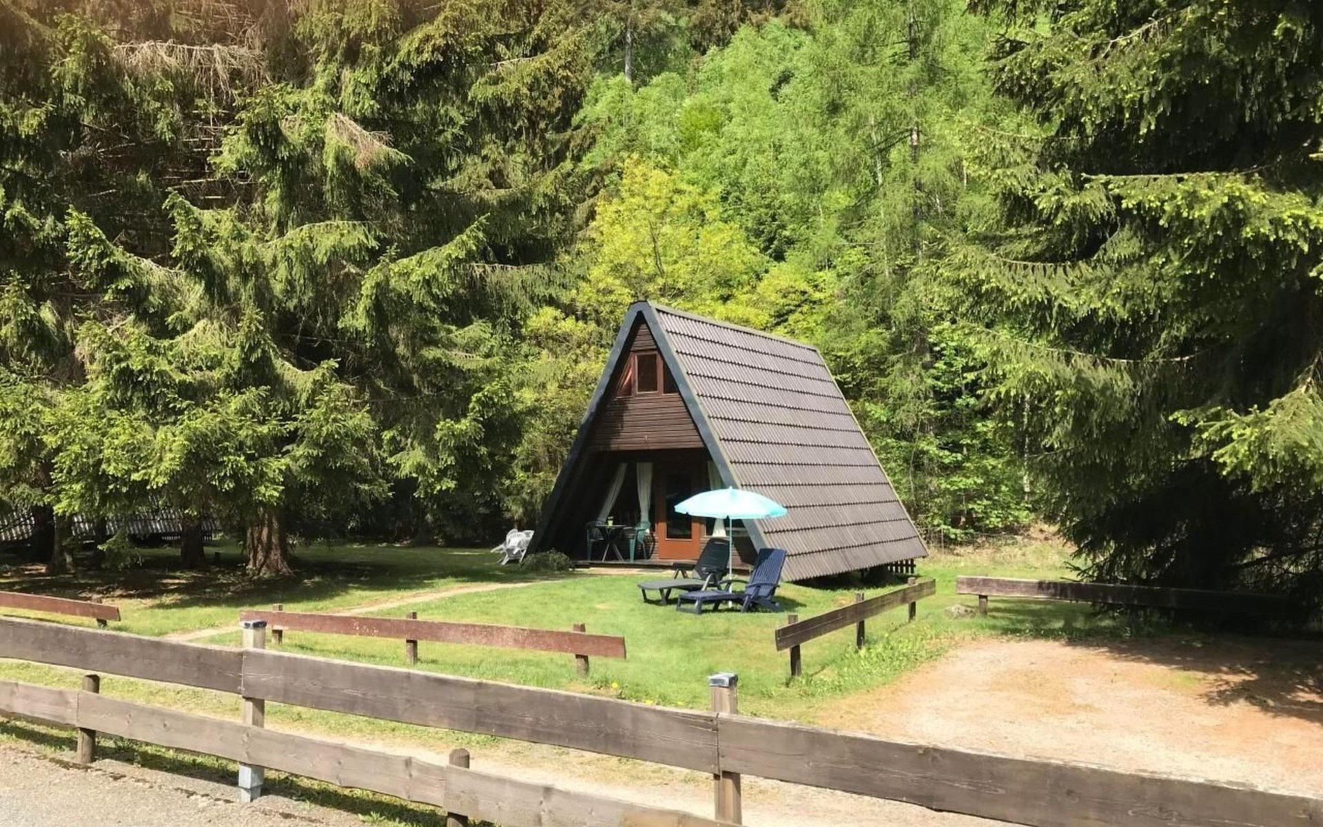 Die Ferienhäuser liegen in einer Sackgasse (Privatweg)