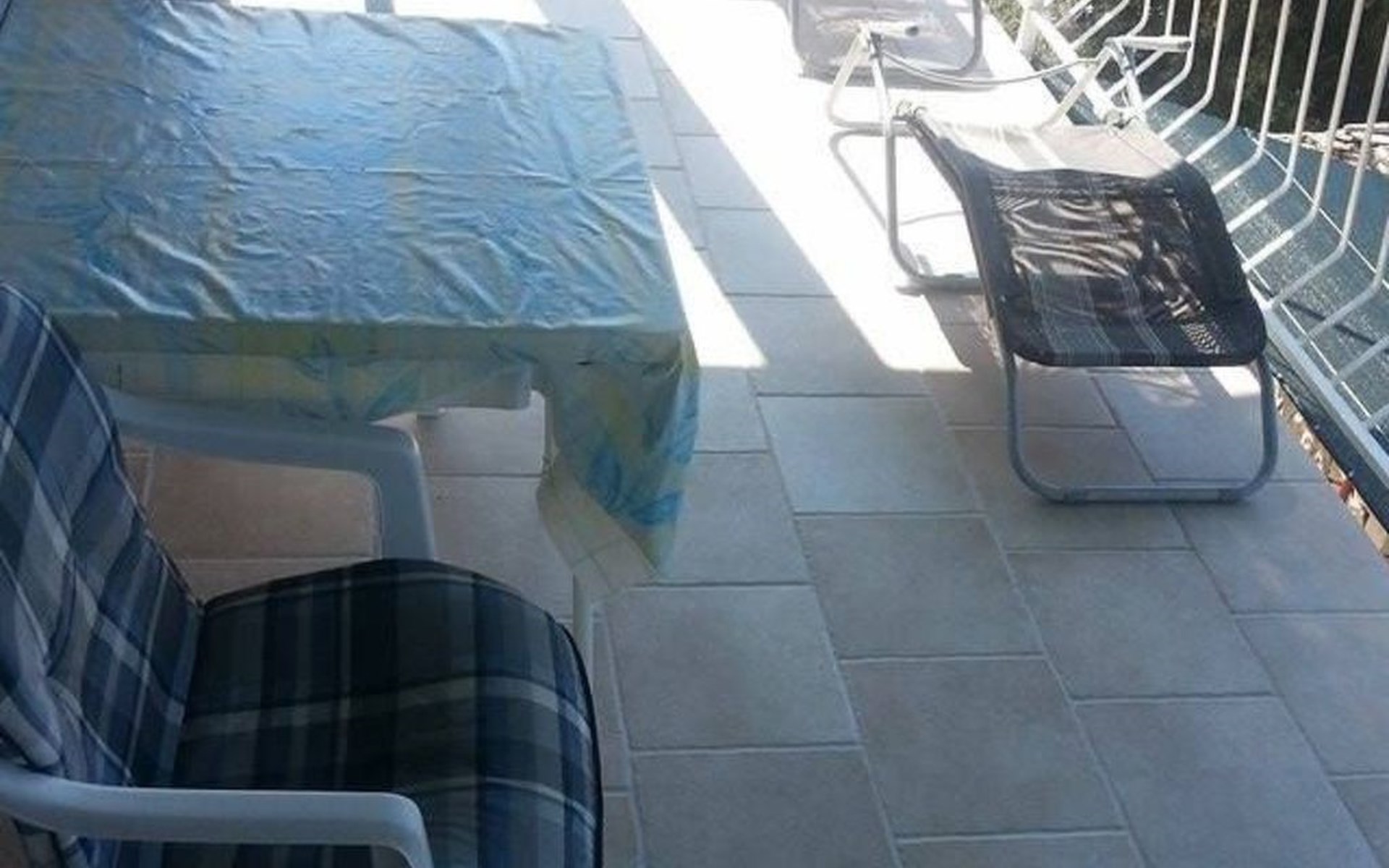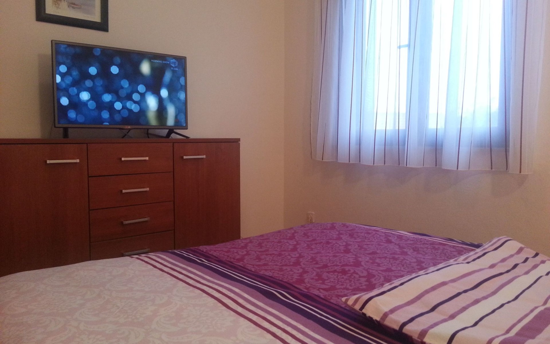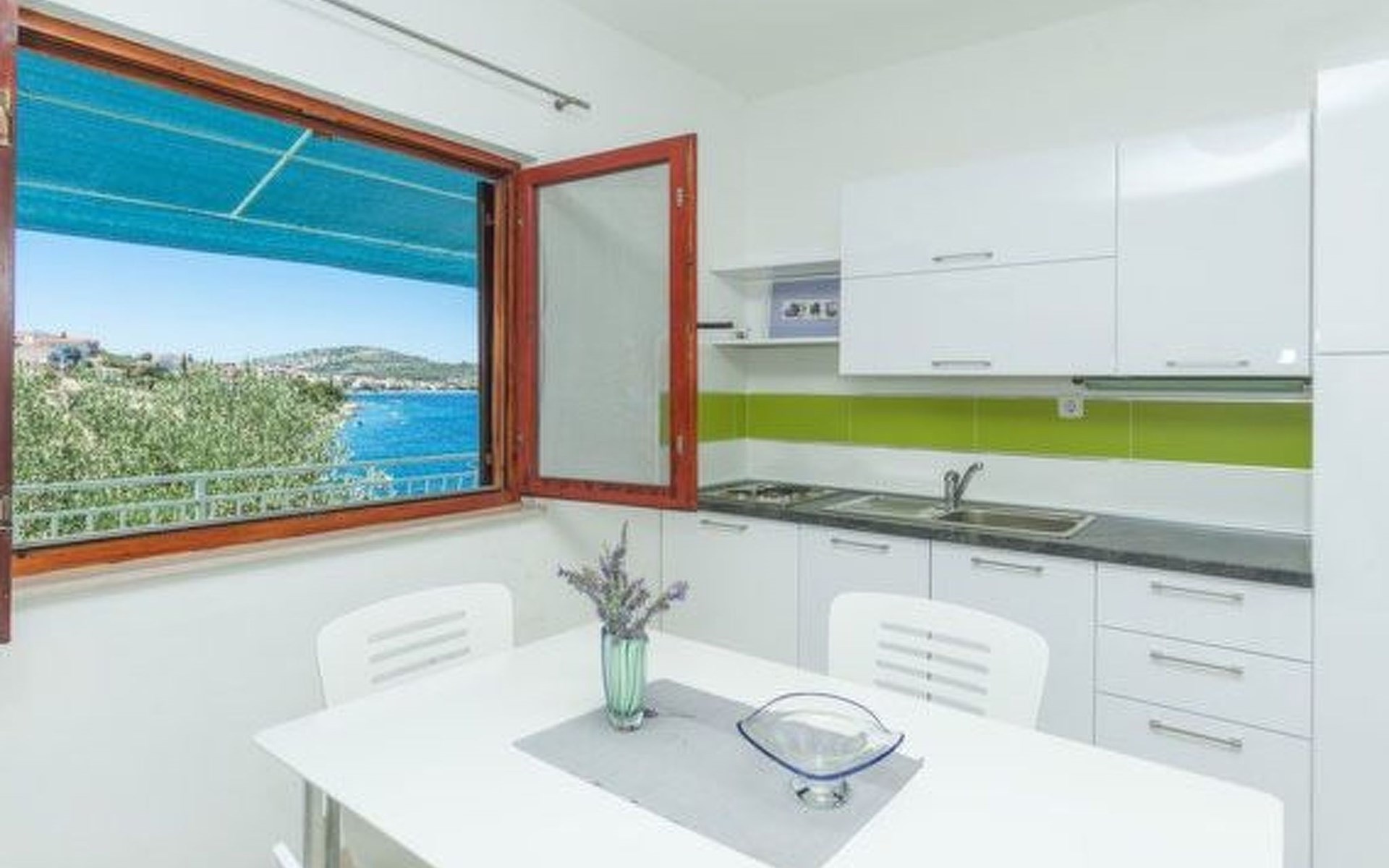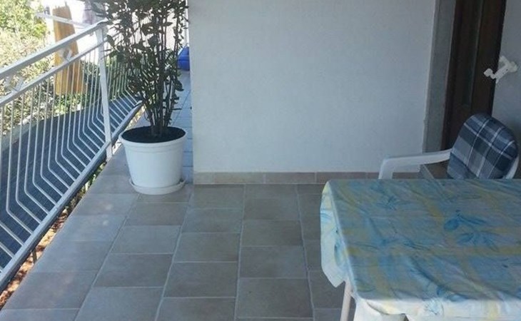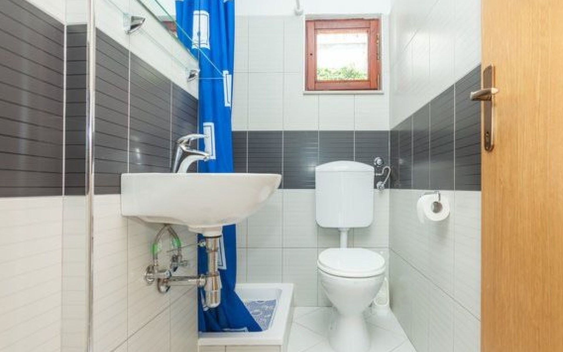 Dieses Appartement mit separatem Eingang liegt auf der ersten Ettage und bietet bis zu vier Personen Platz. Das Schlafzimmer verfügt über ein großes Doppelbett, einen Kleiderschrank und einen Flachbildfernseher mit Sat.-TV. Das Badezimmer besteht aus einer Dusche, Waschbecken und Toilette. Das offen gestaltete Wohn- und Esszimmer mit der Küche ist mit einer Schlafcouch für zwei Kinder und einem Esstisch mit vier Stühlen eingerichtet. Die Küchenzeile ist mit 2-Platten-Herd, Kühl-Gefrierschrank, Mikrowelle und Kaffeemaschine ausgestattet.