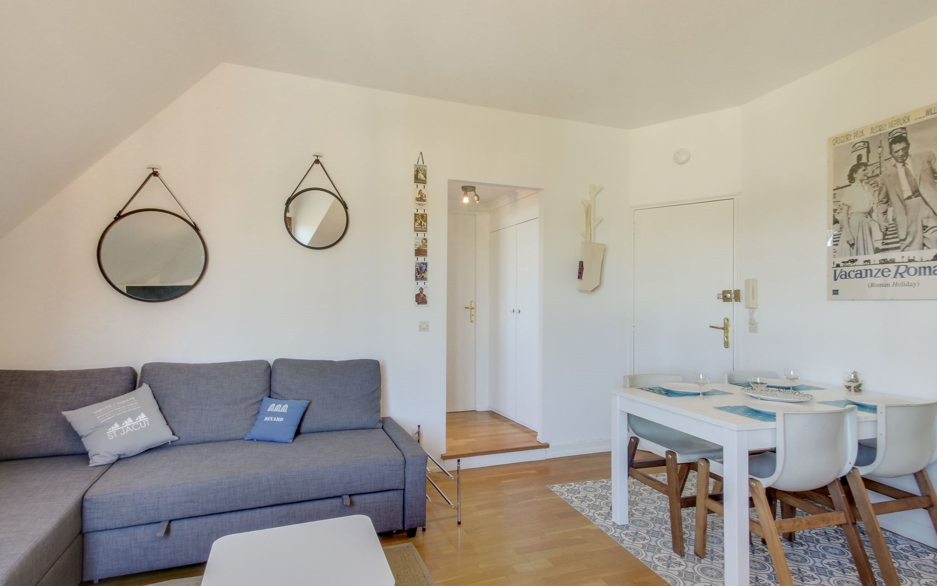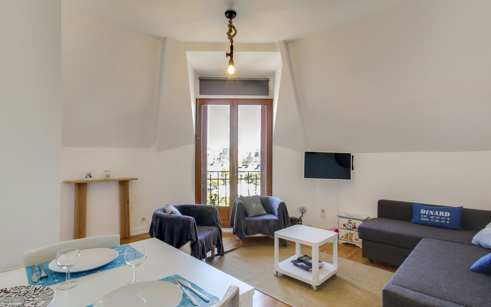 Appartementhaus "Basse Vallée", auf 2 Stockwerken. Im Ortszentrum von Dinard, vom Meer, 500 m vom Strand. Öffentliche Parkplätze auf der Strasse. Lebensmittelgeschäft 150 m, Supermarkt 350 m, Einkaufszentrum 3.2 km, Restaurant 20 m, Bar 50 m, Bäckerei 150 m, Bushaltestelle "Office du Tourisme" 350 m, Bahnstation "SNCF Saint Malo" 12.3 km, Sandstrand "l'Ecluse" 500 m, Park "Port Breton" 2.5 km, Hallenbad 600 m, Thermalbad "Thalasso de Dinard" 1.9 km. Sporthafen 950 m, Golfplatz (18 Loch) 6.6 km, Segelschule 700 m, Tennis 2.6 km, Minigolf 2.1 km, Reitstall 2.6 km, Sportzentrum 2.4 km. Nahe gelegene Sehenswürdigkeiten: Saint malo 12 km, Le grand aquarium de saint malo 8.1 km, Cancale 23.4 km, Dinan 23.4 km, Cap Fréhel 35 km, Mont Saint Michel 57 km. Bitte beachten: kein Fahrstuhl vorhanden. Die Schlüsselübergabe findet bei der Agentur Interhome in Dinard statt, 2 km.