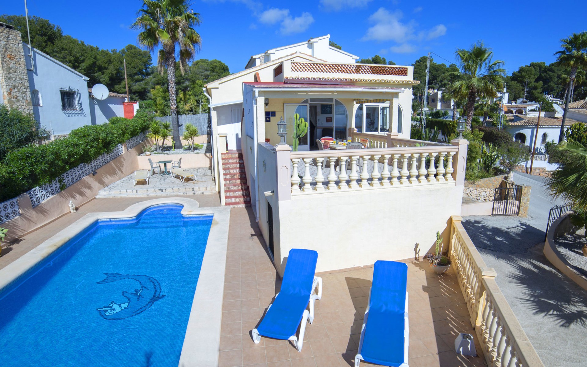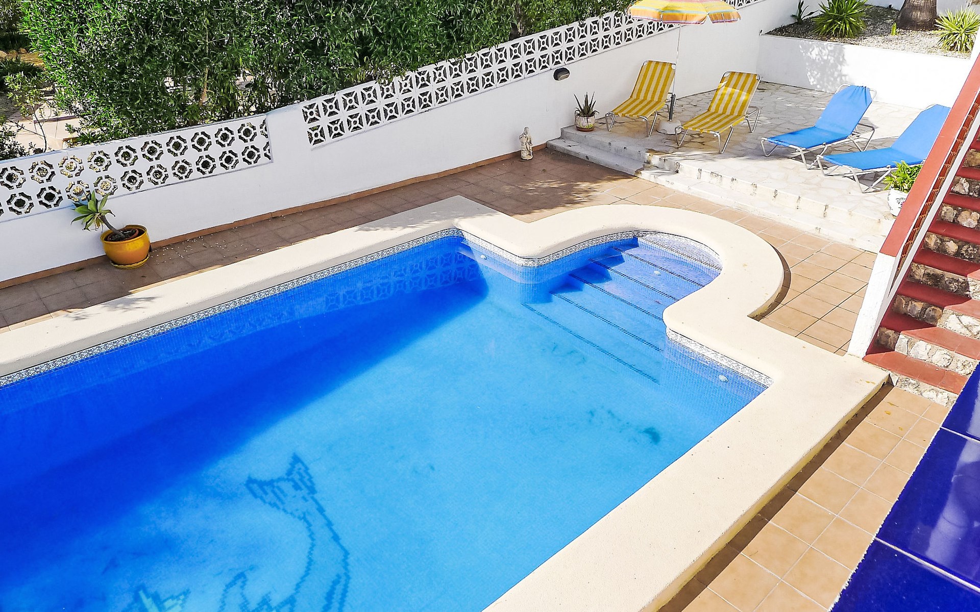 La Fustera: Einfaches Einfamilienhaus "Meluca", auf 2 Stockwerken. 5.7 km vom Zentrum von Calpe, ruhige Lage, 600 m vom Meer. Zur Alleinbenutzung: Grundstück 500 m2, Garten, Schwimmbad eckig (8 x 4 m, 100 - 200 cm tief, saisonale Verfügbarkeit: 01.Jan. - 31.Dez.) mit Innentreppe. Aussendusche, Terrasse, Gartenmöbel, Parkplatz. Supermarkt 600 m, Restaurant, Bar 500 m, Bushaltestelle 400 m, Sandstrand "La Fustera" 800 m, Tauchzentrum 1.3 km. Sporthafen 1.3 km, Golfplatz (9 Loch) 7 km, Tennis 6 km. Nahe gelegene Sehenswürdigkeiten: Aqualandia, Mundomar, Terra Natura, Terra Mítica, Benidorm Palace (Benidorm). Ein Teil des Hauses ist geschlossen und nicht bewohnt.