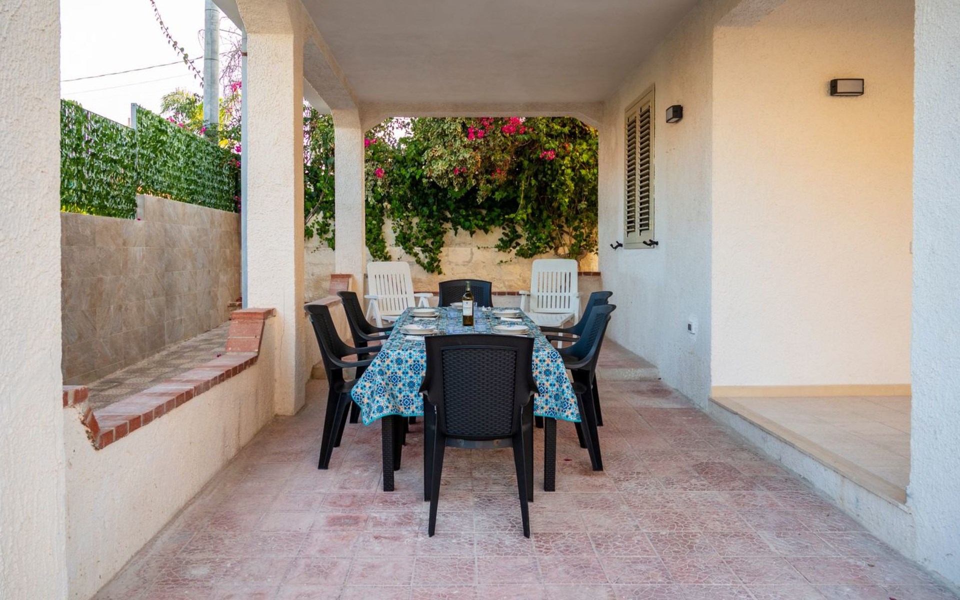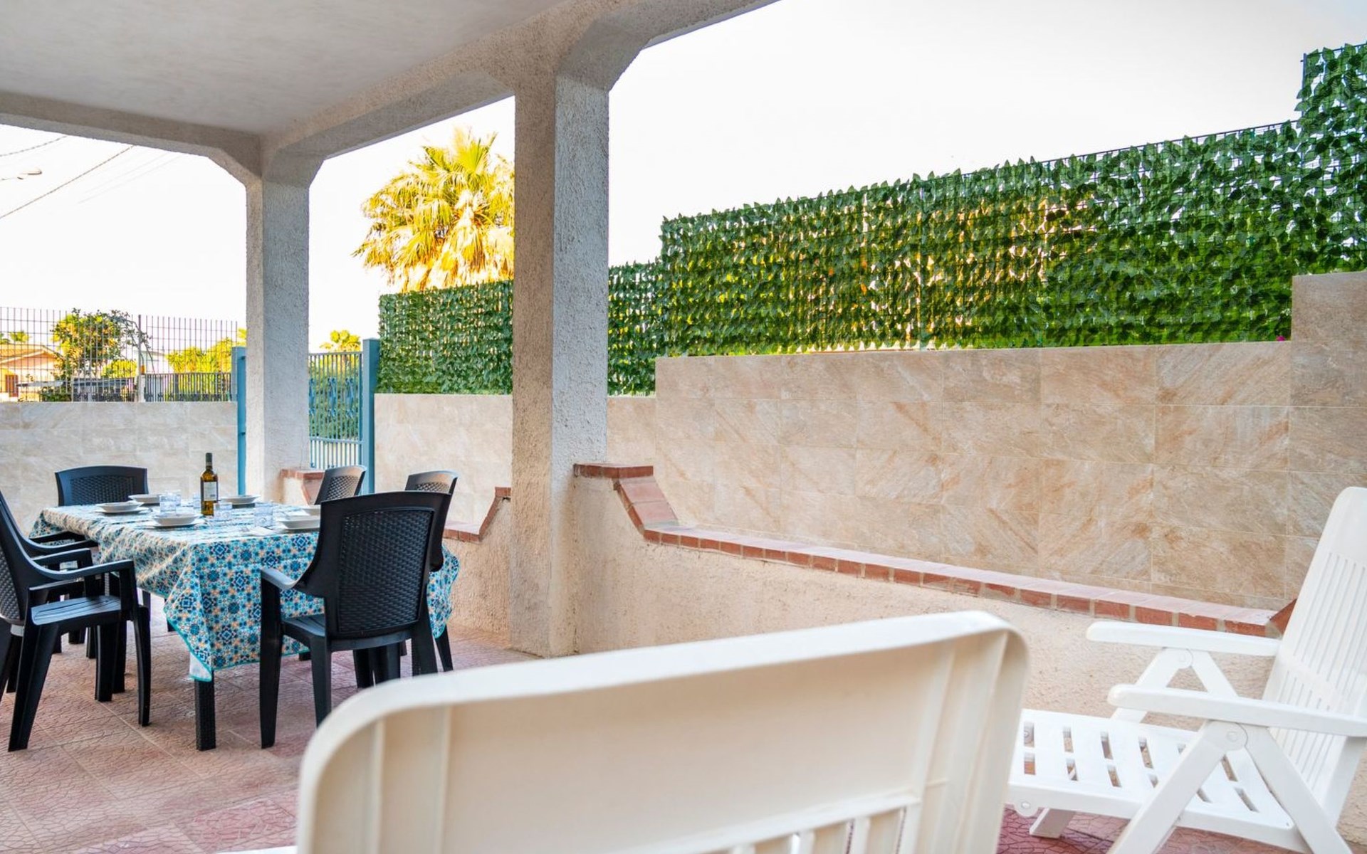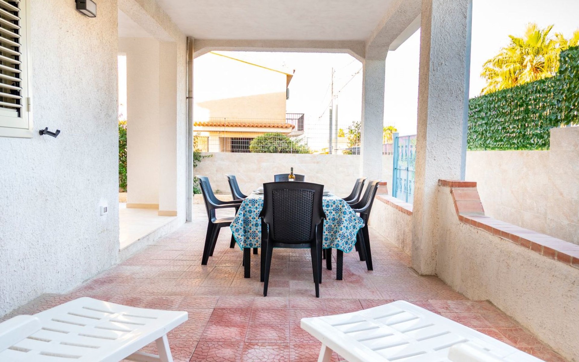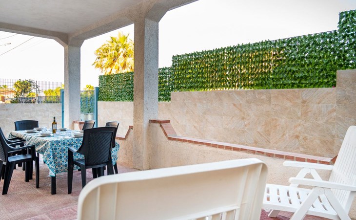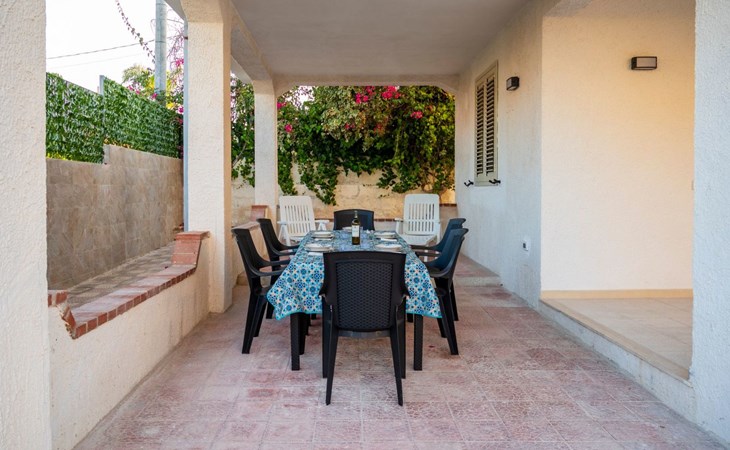 Im Außenbereich der Villa gibt es einen eigenen Bereich, in dem die Gäste entspannen und die ruhige Umgebung genießen können. Ideal für ein Frühstück im Freien, ein Abendessen unter dem Sternenhimmel oder einfach nur, um einen Moment der absoluten Entspannung zu genießen, ist der Außenbereich dieses Hauses so gestaltet, dass er Ihr Urlaubserlebnis mit Momenten des puren Wohlbefindens bereichert.