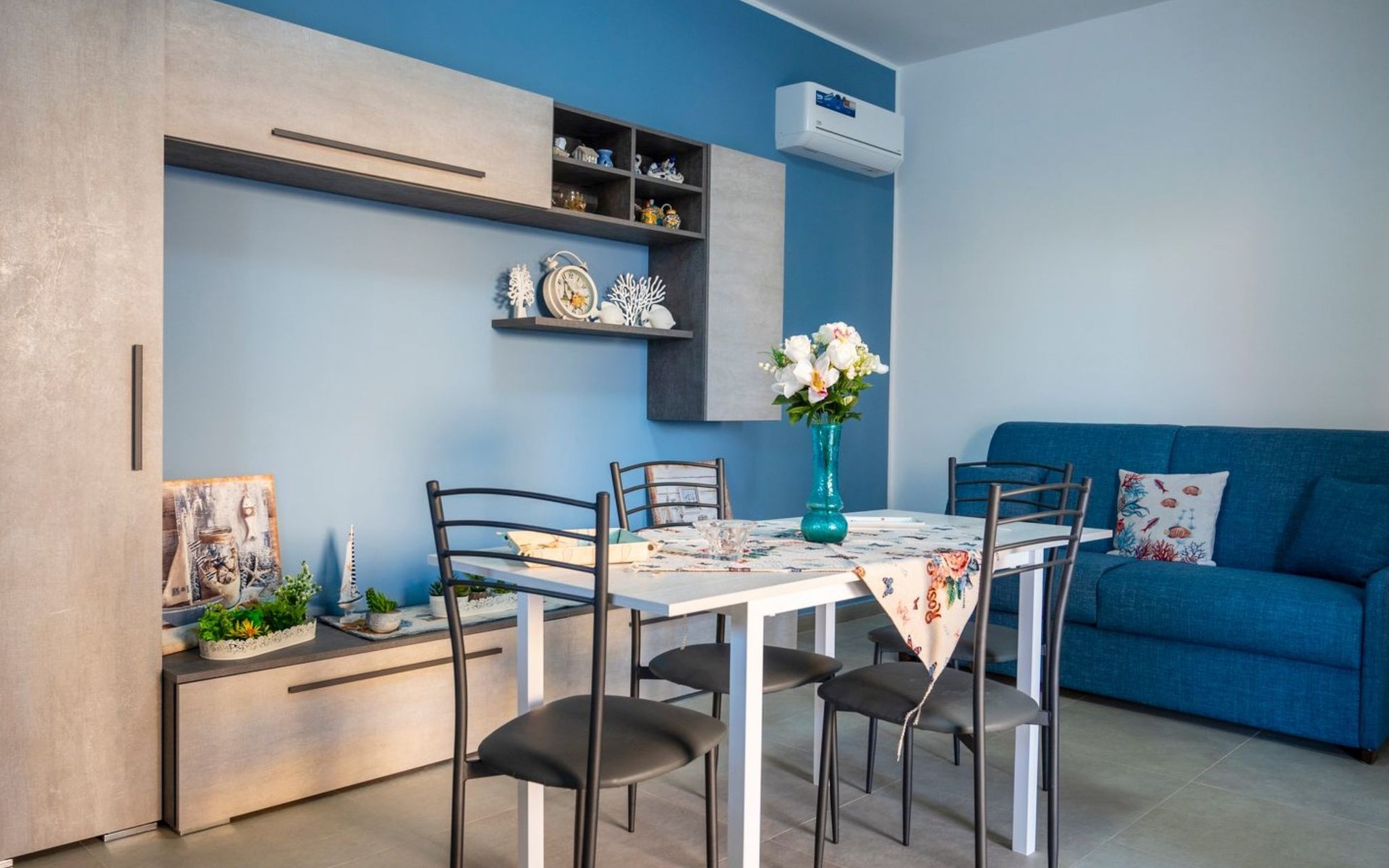 Im Inneren bietet die Villa eine gut durchdachte Aufteilung, um allen Gästen maximalen Komfort zu bieten. Mit drei gemütlichen Schlafzimmern und einem Badezimmer mit Dusche ist die Unterkunft ideal für Familien oder Gruppen von Freunden. Die Klimaanlage, die in allen Zimmern vorhanden ist, sorgt für ein ideales Klima zu jeder Jahreszeit, während die Waschmaschine, die Ihnen zur alleinigen Nutzung zur Verfügung steht, Ihren Aufenthalt noch komfortabler macht, so dass Sie mit leichtem Gepäck reisen und dieses Haus als Ihr eigenes empfinden können. Die Küche ist mit allem ausgestattet, was Sie brauchen, einschließlich einer modernen Kapselkaffeemaschine, mit der Sie einen guten Start in den Tag haben.