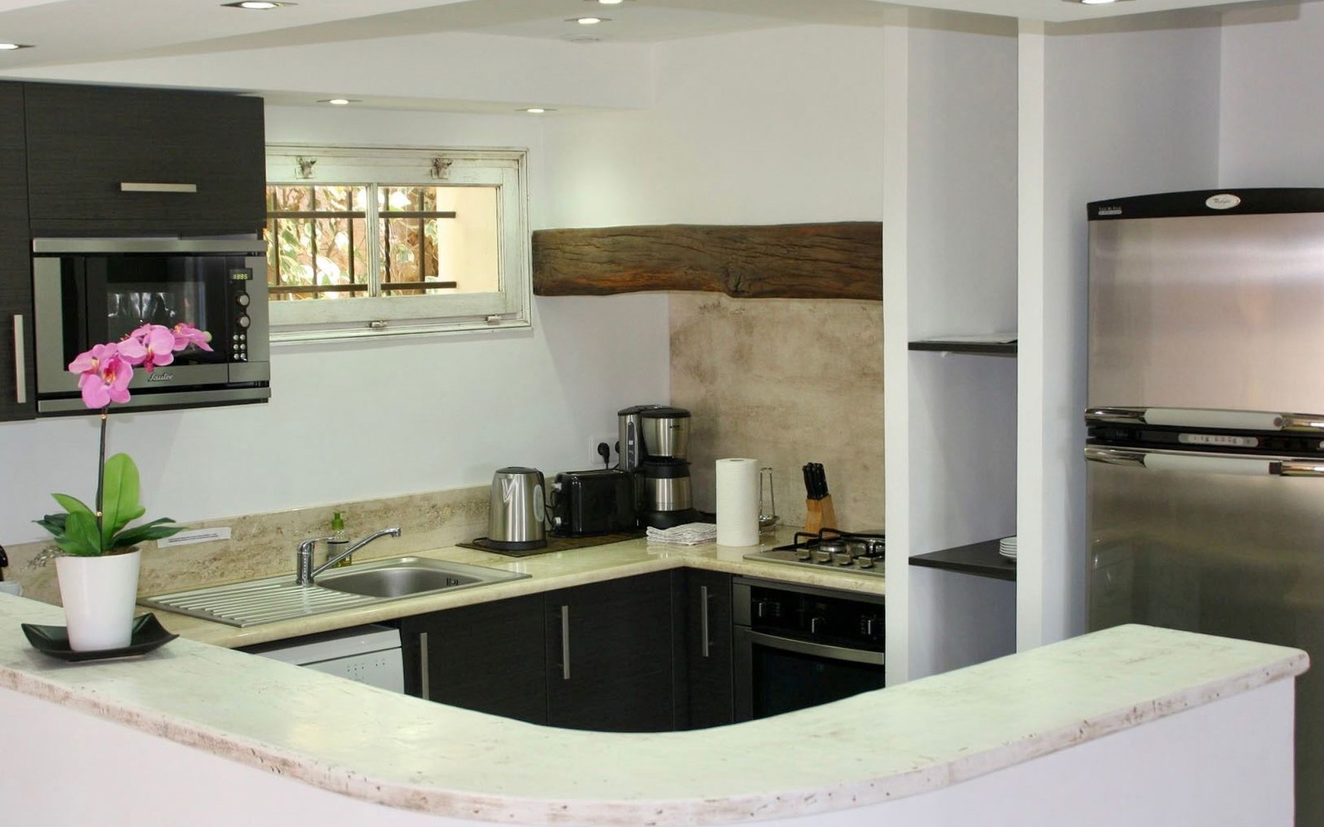 Draußen werden Sie von der schattigen, mit Tisch und Stühlen ausgestatteten Terrasse begeistert sein, die perfekt für Al-fresco-Mahlzeiten ist. Eine Ecke unter den Platanen, ausgestattet mit Liegestühlen, lädt Sie zur völligen Entspannung ein. Für Grillfans steht ein gemauerter Grillplatz zur Verfügung (nur mit Holzkohle). Eine Außendusche und ein Privatparkplatz runden die Außenanlagen zu Ihrer Bequemlichkeit ab.