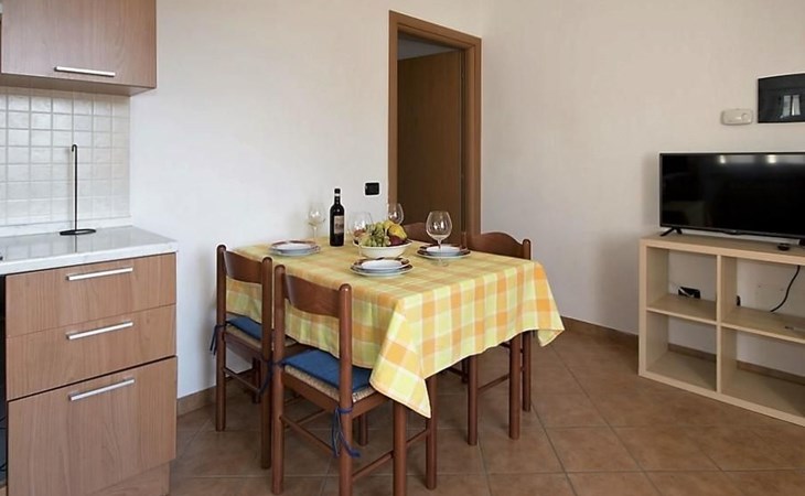 Das Innere des Hauses ist so gestaltet, dass jeder Gast mit höchstem Komfort und Eleganz verwöhnt wird. Das Wohnzimmer ist mit einem Doppelschlafsofa und Satellitenfernsehen ausgestattet, ideal für entspannte und unterhaltsame Abende. Die moderne und funktionelle Küche verfügt über einen Backofen, ein Induktionskochfeld, einen Kühlschrank mit Gefrierfach und sämtliches Geschirr, das Sie für die Zubereitung köstlicher Mahlzeiten benötigen. Das Schlafzimmer mit Doppelbett sorgt mit seinem ruhigen und erholsamen Ambiente für die ideale Erholung, ergänzt durch ein Badezimmer mit allen Annehmlichkeiten, einschließlich Dusche, WC und Bidet.