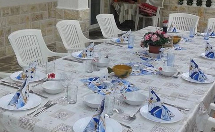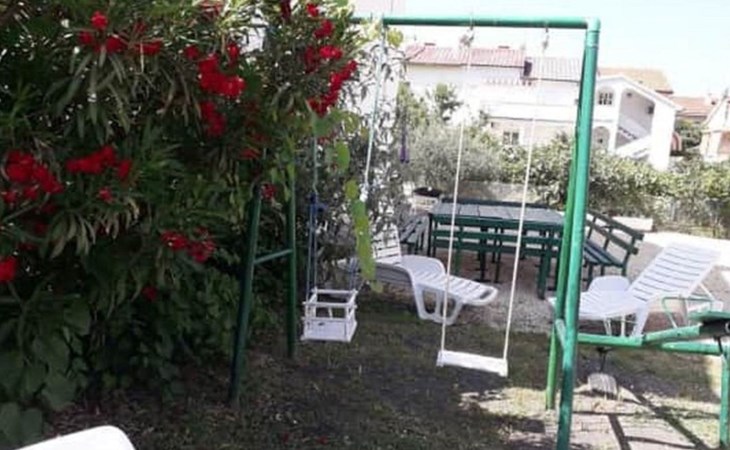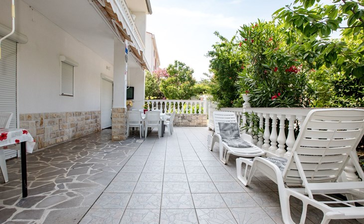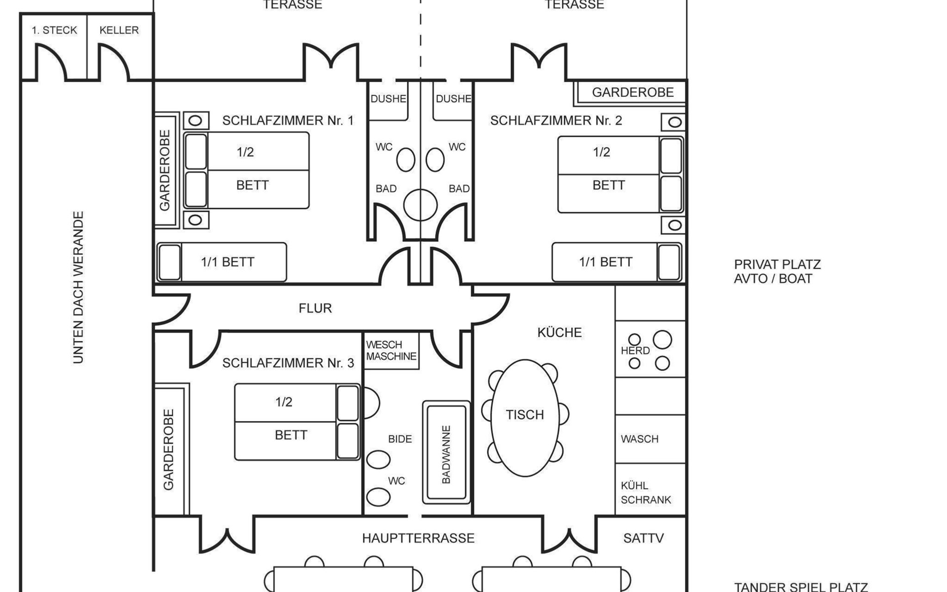 Im Außenbereich lädt unser kleines Paradies zum Entspannen und Verweilen ein. Eine überdachte Terrasse, ausgestattet mit bequemen Gartenmöbeln, zwei hochwertigen Grills für gemütliche Abendessen unter dem Sternenhimmel, ein Kinderspielplatz für unsere kleinen Gäste, Sonnenschirme, Liegestühle und sogar eine erfrischende Außendusche stehen zur Verfügung. Der großzügige und sorgfältig umzäunte Garten, bepflanzt mit mediterranen Pflanzen und Obstbäumen, sowie praktische Annehmlichkeiten wie ein privater Parkplatz und ein Bootsanliegeplatz versprechen einen komfortablen und sorglosen Aufenthalt.