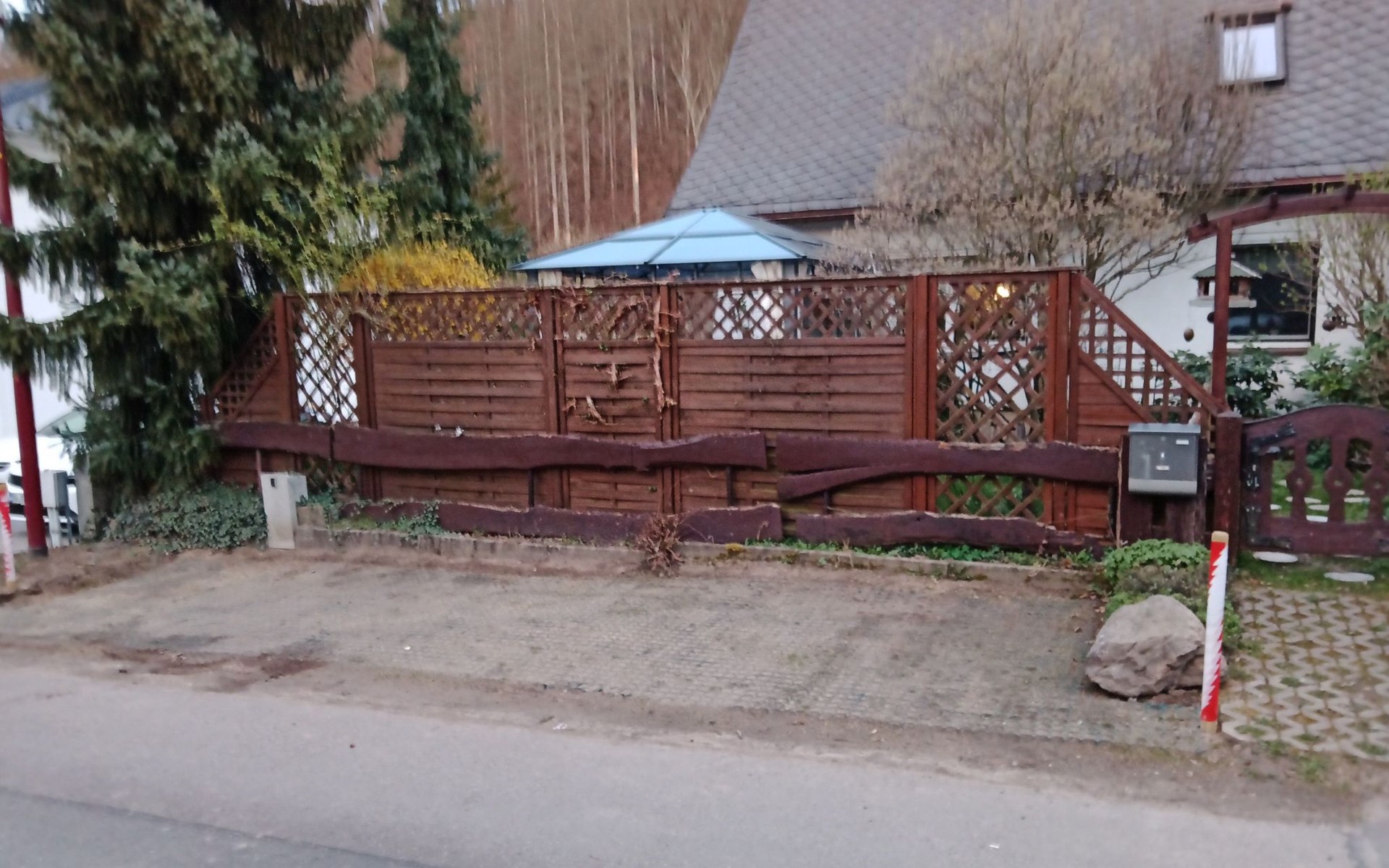 - komplett eingefriedet (mit Mauer, Zaun oder Hecke)