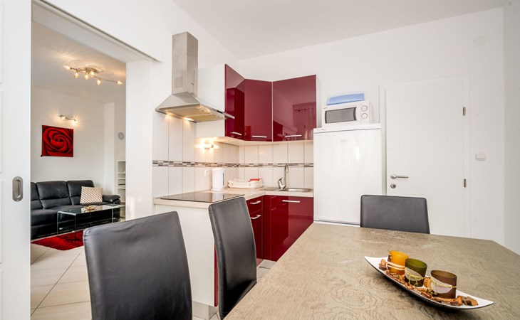 Žaborić 3 km von Brodarica: Mehrfamilienhaus "Andrea". 1 km vom Zentrum von Žaborić, 8 km vom Zentrum von Šibenik, 14 km vom Zentrum von Primošten, ruhige, sonnige Lage, 60 m vom Meer, 60 m vom Strand, in einer Sackgasse. Zur Mitbenutzung: Aussendusche, Tischtennis, Grill. Im Hause: Internetzugang. Parkplatz beim Haus auf dem Grundstück. Einkaufsgeschäft 900 m, Einkaufszentrum 8 km, Restaurant 1 km, Bushaltestelle 400 m, betonierter Strand 60 m.