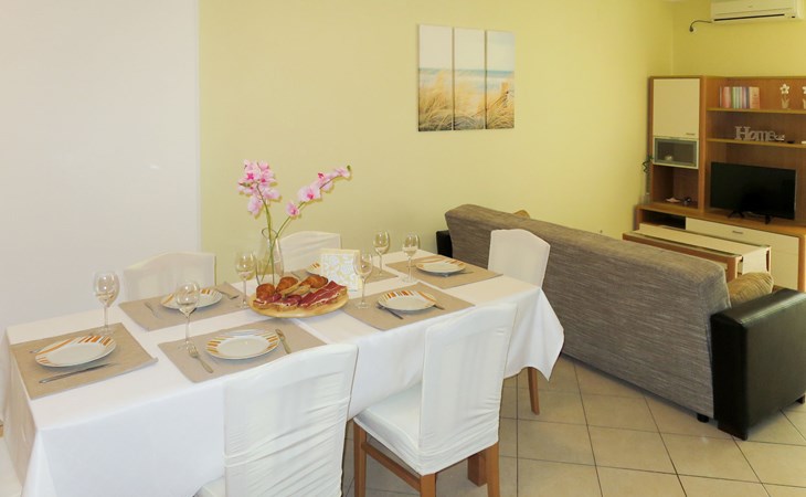Appartementhaus "Toni". 350 m vom Zentrum von Grebaštica, 13 km vom Zentrum von Primošten, 15 km vom Zentrum von Šibenik, 350 m vom Meer, 350 m vom Strand. Zur Mitbenutzung: Grundstück 500 m2. Grill. Im Hause: Internetzugang. Schmale Zufahrt bis zum Haus. Parkplatz auf dem Grundstück. Einkaufsgeschäft 350 m, Supermarkt 9 km, Bushaltestelle 650 m, Felsstrand 350 m.