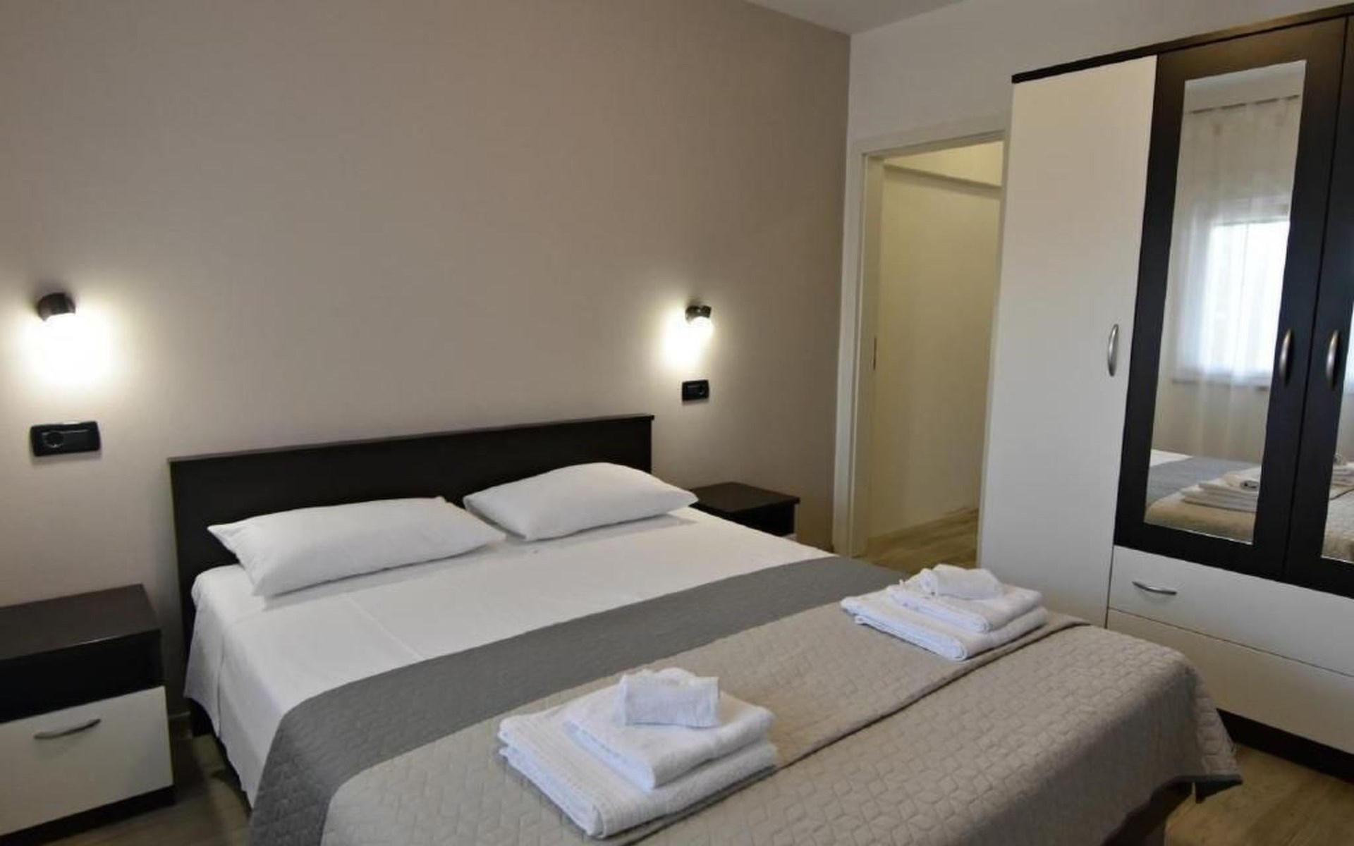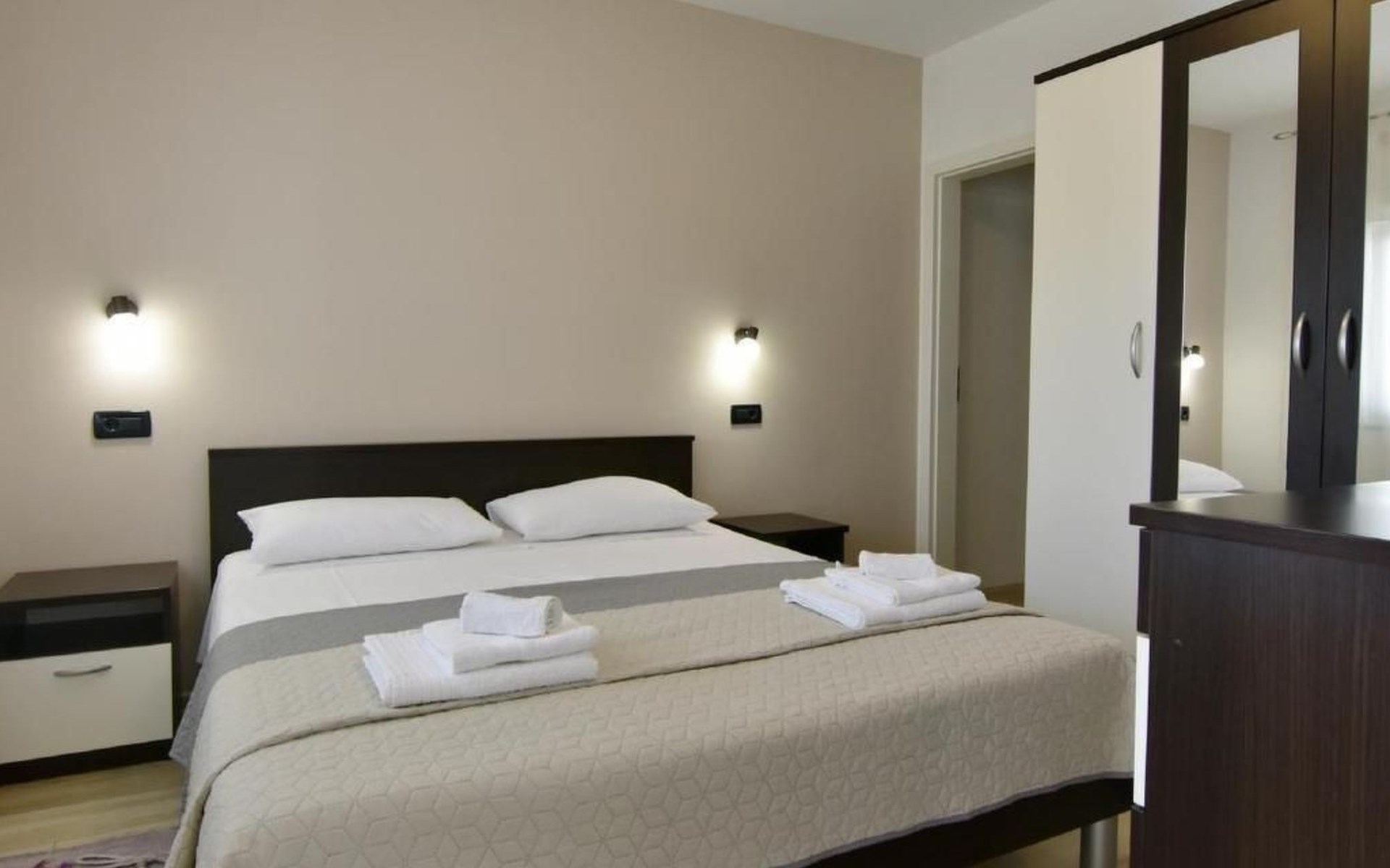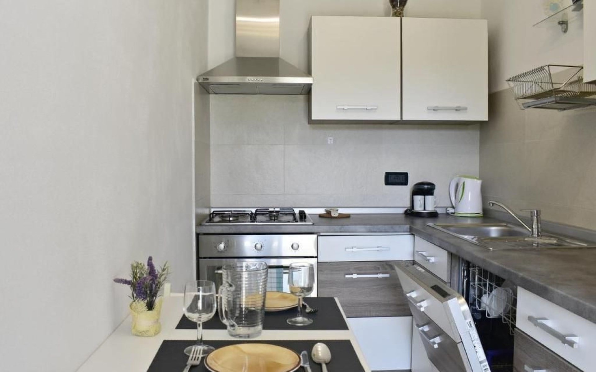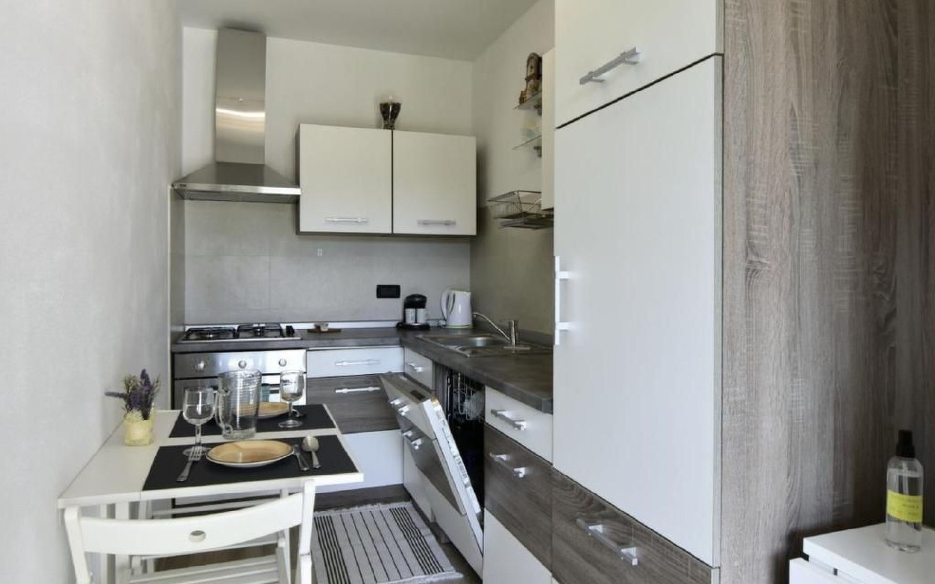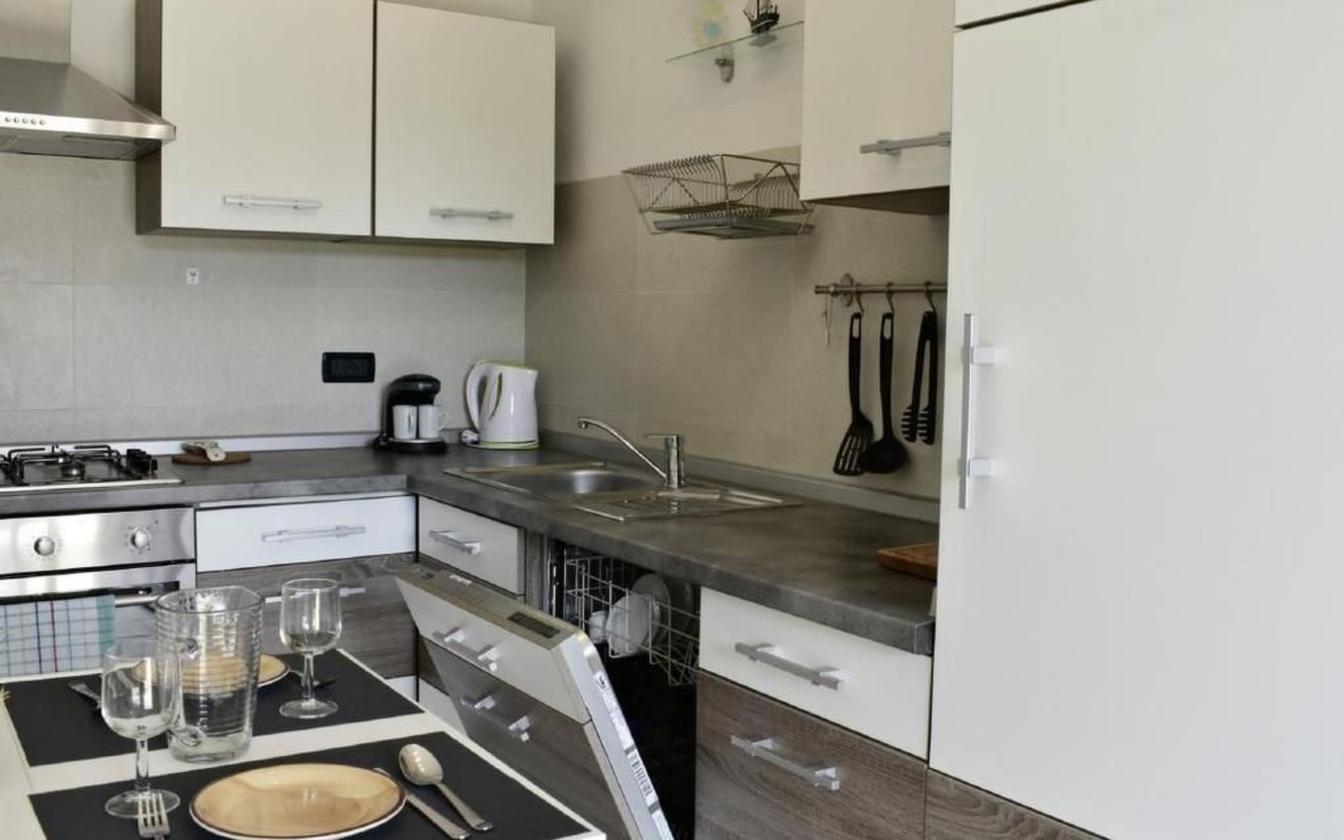 Im Inneren erwartet Sie eine moderne und voll ausgestattete Küche mit Geschirrspüler, Backofen, Herd, Kühlschrank und einem gemütlichen Esstisch für zwei. Das angrenzende Schlafzimmer verspricht mit einem komfortablen Doppelbett, Nachttischen, einem geräumigen Kleiderschrank sowie einem Flachbild-Sat-TV Komfort pur. Zudem steht Ihnen eine Klimaanlage zur Verfügung und das Badezimmer ist mit einem Bidet, WC, einem Waschbecken samt Spiegel und einer Duschkabine komplett ausgestattet. Bettwäsche wird wöchentlich gewechselt und eine kostenlose WLAN-Internetverbindung ist ebenfalls Teil des Angebots.