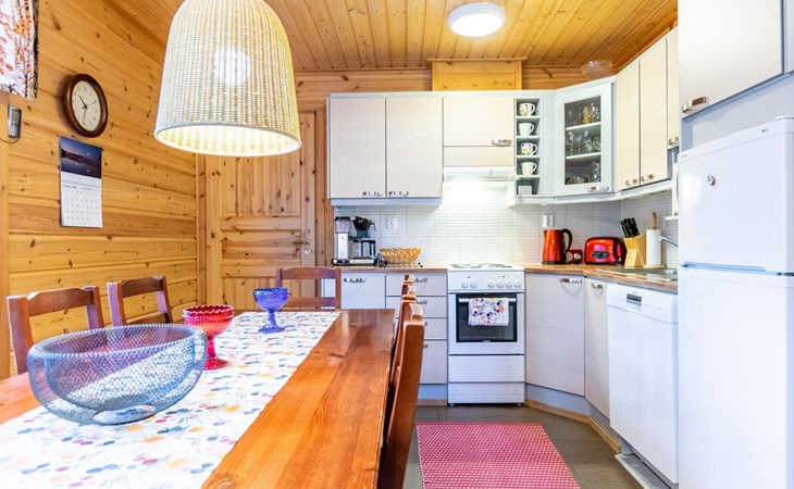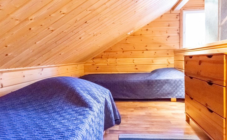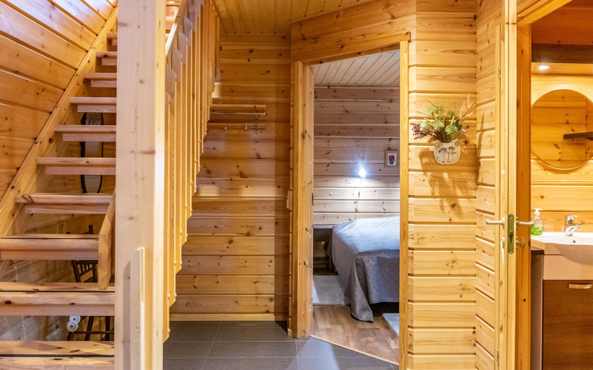 53 km north from Kemijärvi. Log cabin built in 2008. Living room/kitchen, two bedrooms with double beds, toilet, washroom where toilet, sauna (electric stove), utility room and open porch. Upstairs open loft with 4 beds.