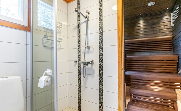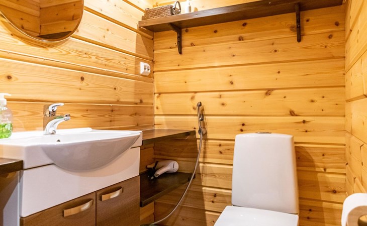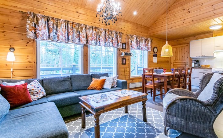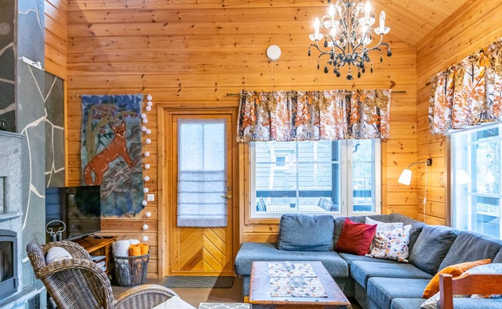 There is a child equipment, 2 pairs of snowshoes, separate service room for skis and 2 sledges + 2 bikes + 1 children's bike (for under 10 years old) included in this cabin. TV and DVD player in the living room and also upstairs.
