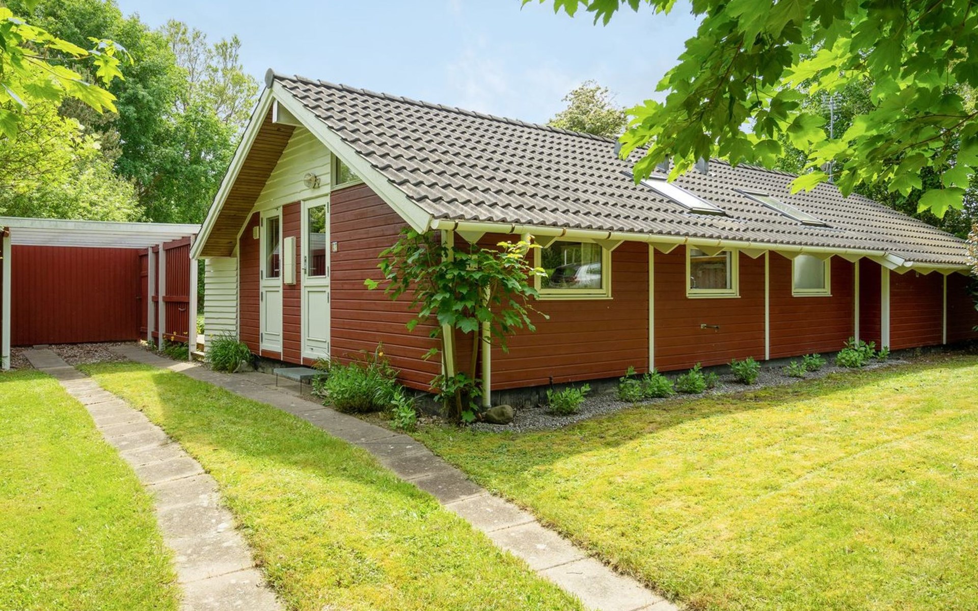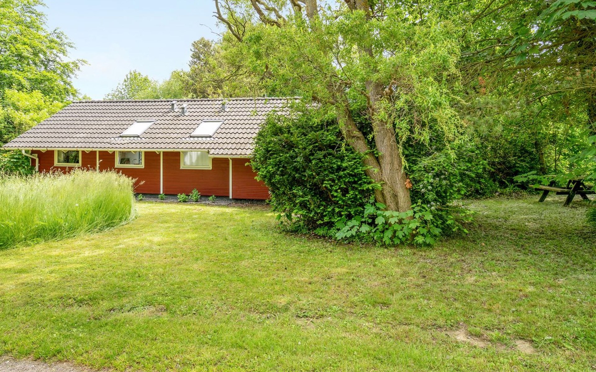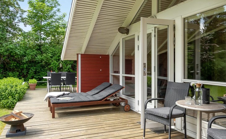 Einfamilienhaus, Baujahr 1994. 325 m vom Meer. Zur Alleinbenutzung: Grundstück 1'198 m2, gepflegter Garten. Terrasse (40 m2), Grill. Im Hause: Waschmaschine. Parkplatz beim Haus. Carport. Lebensmittelgeschäft 8 km. Der Besitzer akzeptiert keine Jugendgruppen.