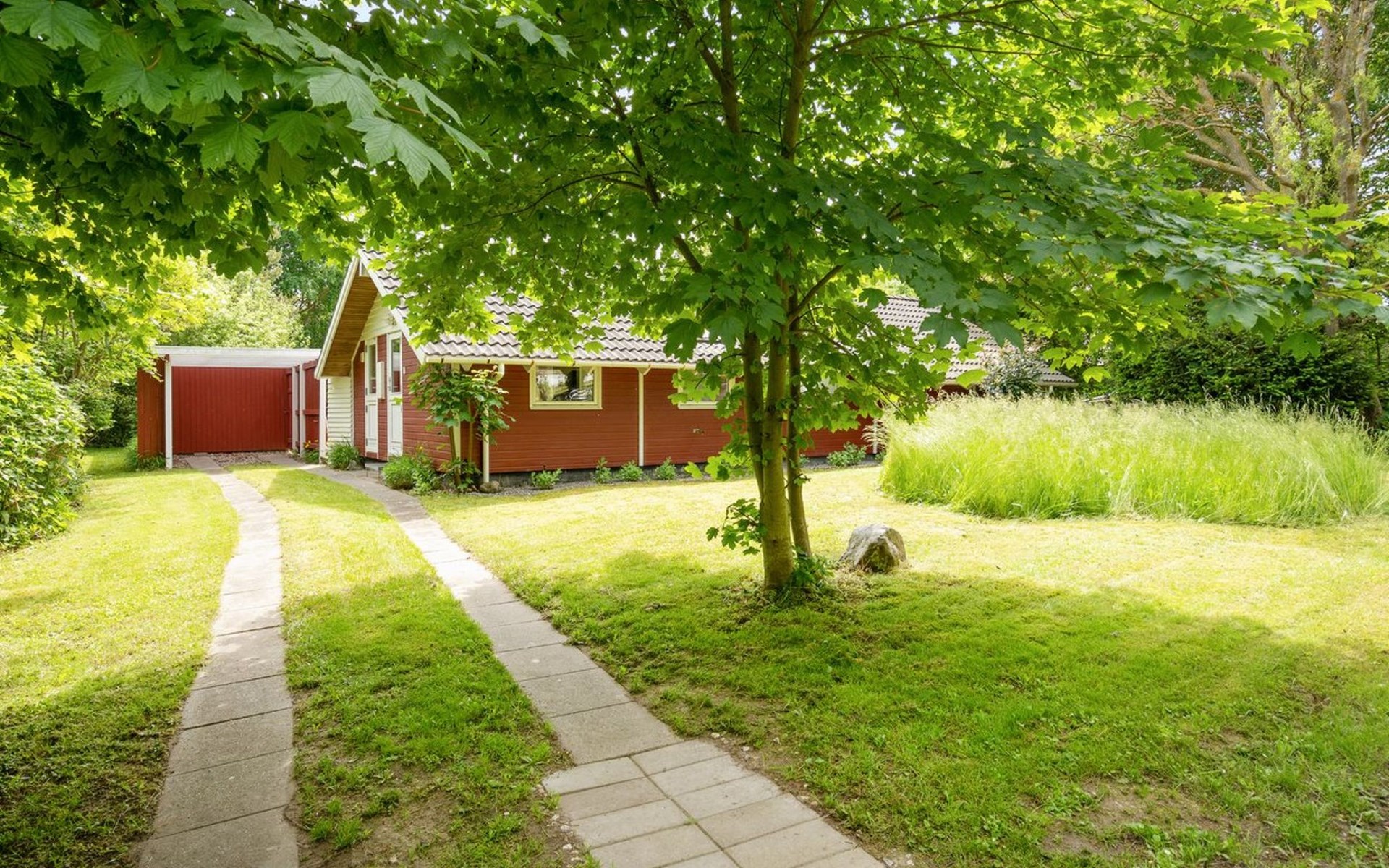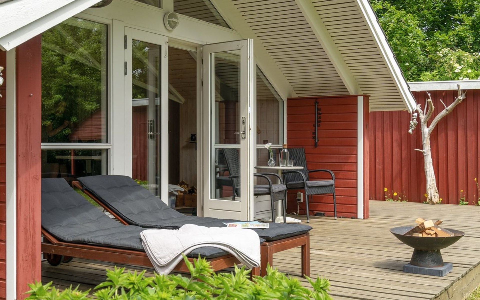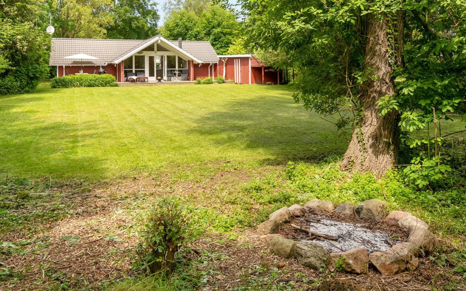 Einfamilienhaus, Baujahr 1994. 325 m vom Meer. Zur Alleinbenutzung: Grundstück 1'198 m2, gepflegter Garten. Terrasse (40 m2), Grill. Im Hause: Waschmaschine. Parkplatz beim Haus. Carport. Lebensmittelgeschäft 8 km. Der Besitzer akzeptiert keine Jugendgruppen.
