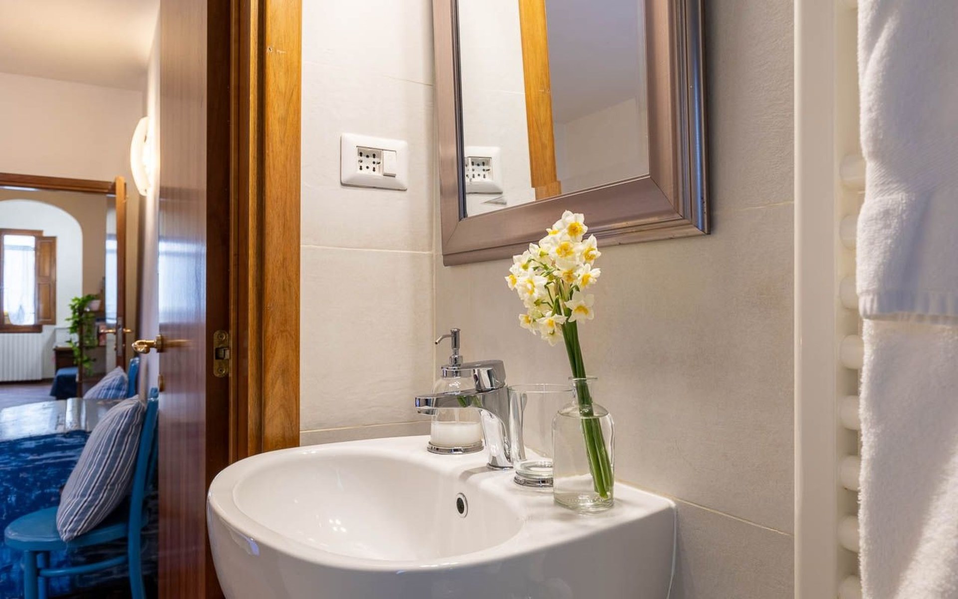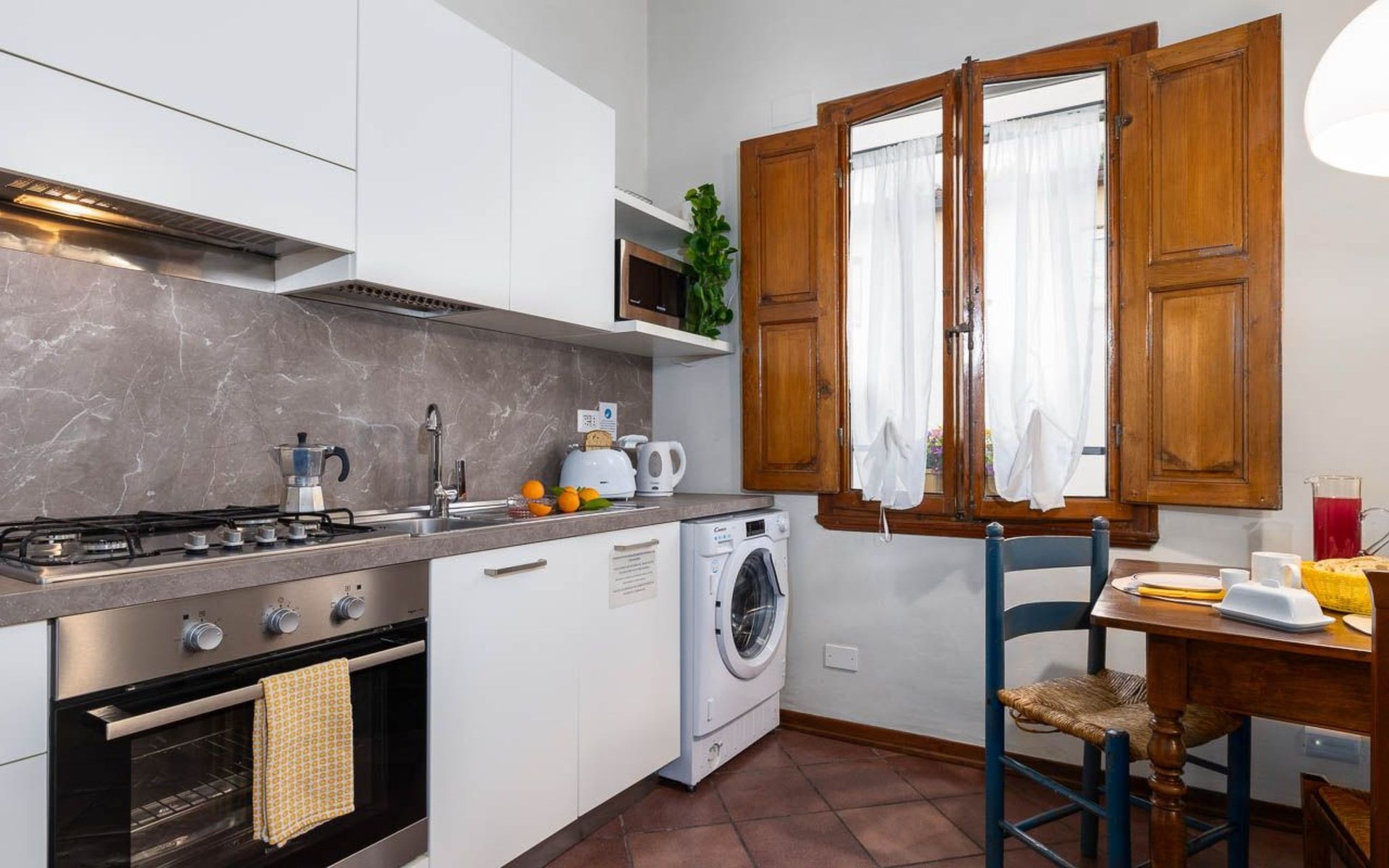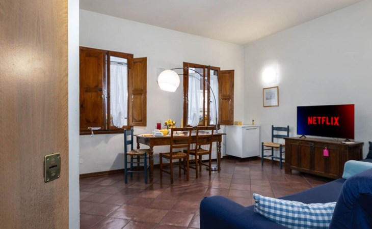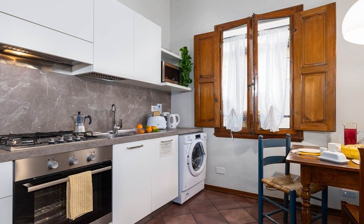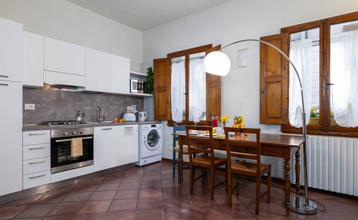 Obwohl die Wohnung nicht über einen eigenen Außenbereich verfügt, bietet ihre Lage eine einzigartige Gelegenheit, in das tägliche Leben von Florenz einzutauchen. Umgeben von Geschichte und Kultur können die Gäste die florentinische Atmosphäre in vollen Zügen genießen, indem sie durch die engen Gassen voller Handwerksläden, Cafés und traditioneller Restaurants schlendern.