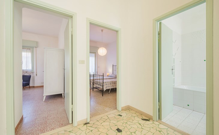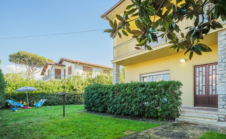 Grosses Einfamilienhaus. 2 Wohnungen im Ferienhaus. Im Weiler Tonfano, 1 km vom Zentrum von Marina di Pietrasanta, zentrale, ruhige, sonnige Lage im Villenviertel, 150 m vom Meer, vom Strand. Zur Mitbenutzung: grosser Garten (eingezäunt), Naturgarten, öffentliche Parkplätze auf der Strasse extra. Lebensmittelgeschäft 500 m, Supermarkt 1 km, Einkaufszentrum 1 km, Restaurant 500 m, Bar 300 m, Bäckerei, Fußgängerzone 1 km, Fahrradverleih 300 m, Zentrum zu Fuss in 5 Minuten erreichbar, Bushaltestelle 200 m, Bahnstation "Pietrasanta" 5 km, Park "Versiliana" 1 km, See Massaciuccoli 15 km. Golfplatz (18 Loch) 10 km, Segelschule 5 km, Tennis 2 km, Radweg 50 m, Kinderspielplatz 1 km. Nahe gelegene Sehenswürdigkeiten: Lucca 30 km, Pisa 30 km, Firenze 90 km, Cinque Terre 50 km, Forte dei Marmi 6 km, Pietrasanta 4 km. Bekannte Seen in der Umgebung sind gut erreichbar: Massaciuccoli 15 km. Wandergebiete: Sentieri Alpi Apuane 10 km. Bitte beachten: geeignet für Familien. Der Besitzer akzeptiert keine Jugendgruppen. Der Besitzer wohnt auf dem gleichen Grundstück.