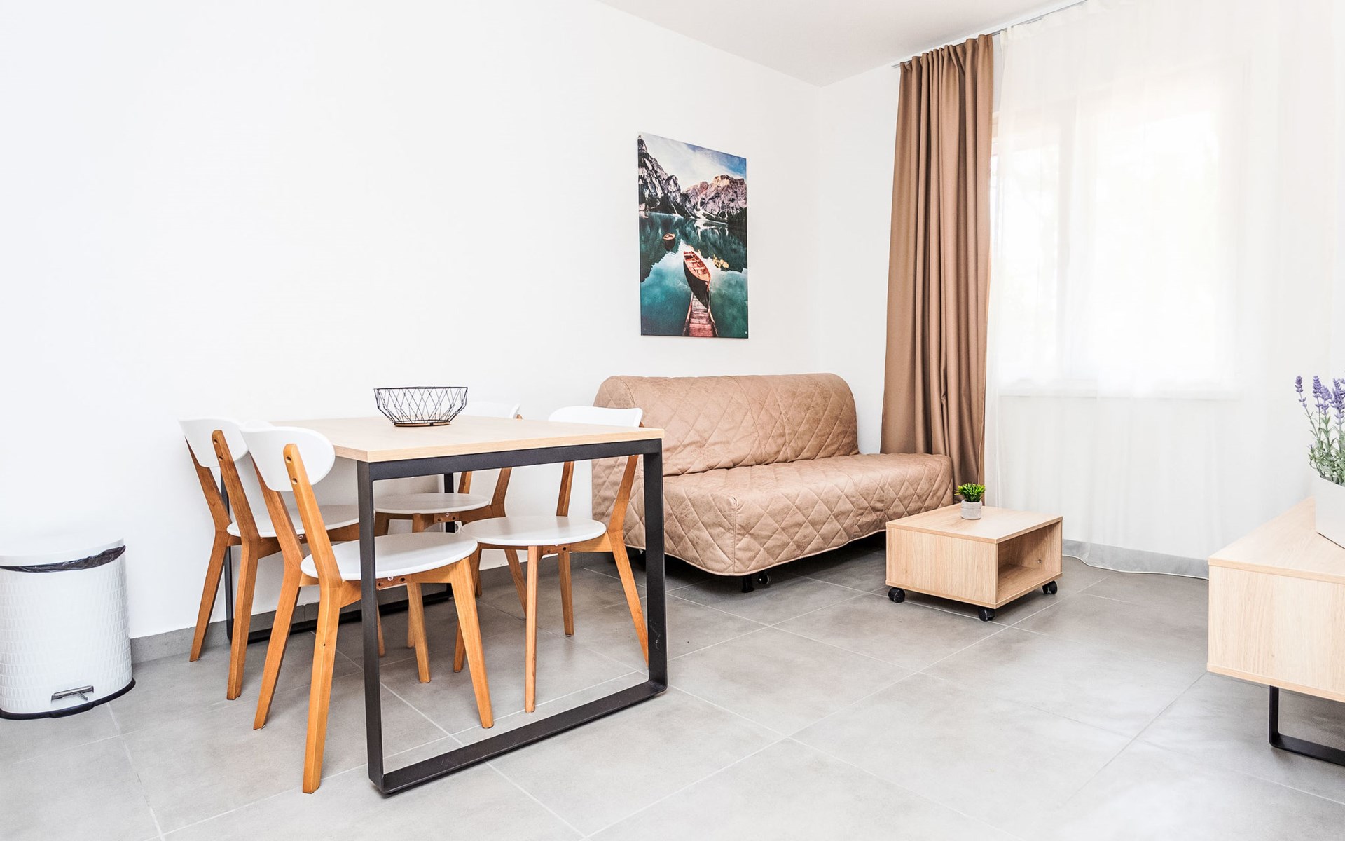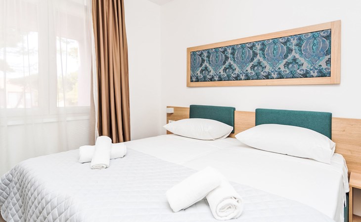Ferienanlage "Medena". Im Ortsteil Seget Donji, 3 km vom Zentrum von Trogir, 30 km vom Zentrum von Split, direkt am Meer. Zur Mitbenutzung: Grundstück mit Pflanzen und Bäumen, 3 Schwimmbäder (31 m2, 140 cm tief, saisonale Verfügbarkeit: 01.Apr. - 01.Nov.) mit Innentreppe. Kinderbecken, Aussendusche, Tennis (extra), Basketball (extra), Kinderspielplatz. In der Anlage: Empfang, Restaurant, Internetzugang, Wäscherei. Zur Verfügung: Fahrräder (extra). Frühstück Vollpension Halbpension möglich auf Anfrage (extra). Abholservice vom Flughafen (extra). Parkplatz (extra) auf dem Grundstück. Bushaltestelle 650 m. Objekt geeignet für 2 Erwachsene + 2 Kinder. Bitte beachten: Flugplatz 8 km vom Haus. Das Foto ist nur ein Hausbeispiel. Eine Doppel-Schlafsofai m Wohn-/Essbereich ist nur für 2 Kinder bis zu 12 Jahren geeignet.