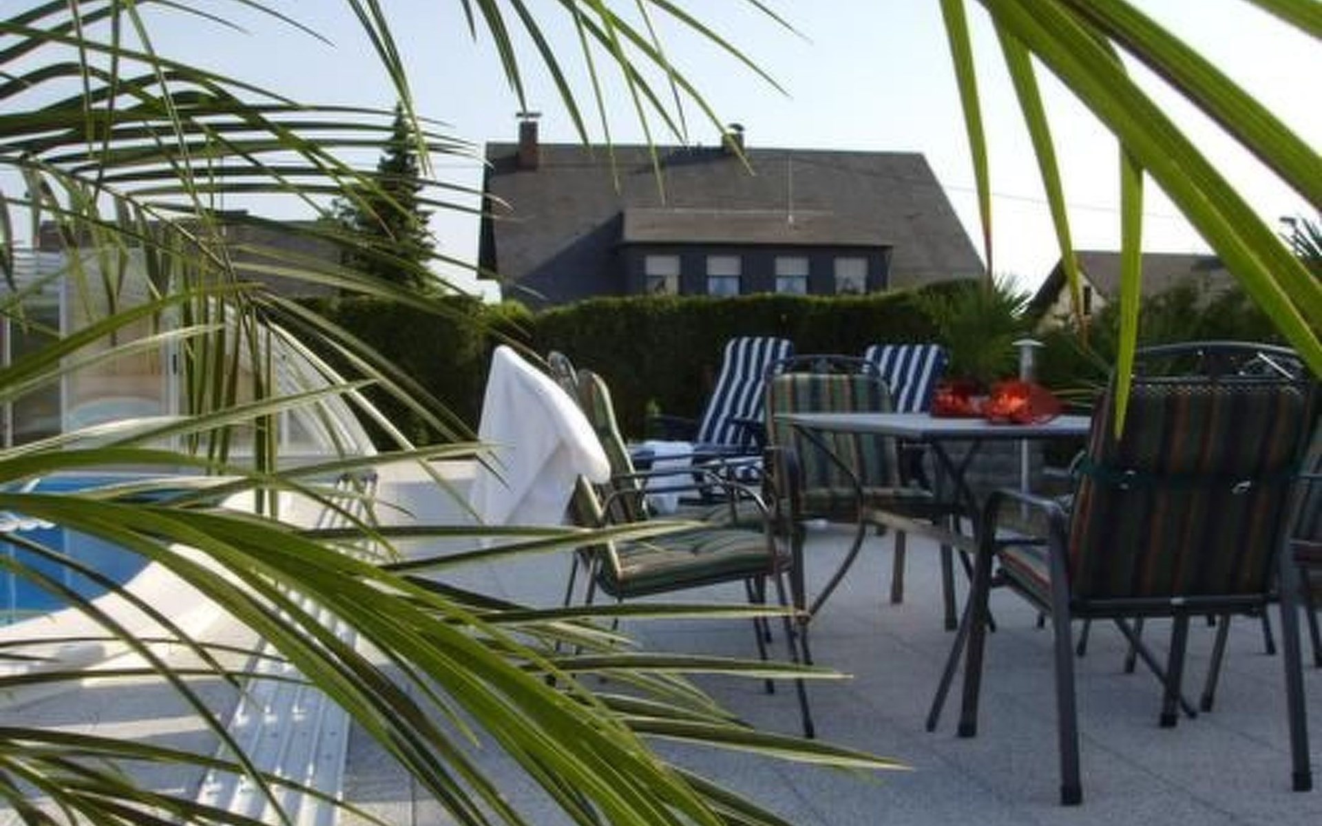 Herzlich Willkommen auf unserer Seite von Sandras Ferienwohnung. In paar kurzen Sätzen lernen sie unsere gemütliche Wohnung im schönen Kürrenberg kennen. Kürrenberg ist ein Stadtteil bzw. ein Ortsbezirk der Stadt Mayen im nördlichen Rheinland-Pfalz.Wer Ruhe und Erholung sucht ist bei uns genau richtig . Im Außenbereich findet man den 8x4 m großen solarbeheizten Swimming-Pool, den man bequem auch in der Hauptsaison (Mai-August)bei schlechtem Wetter nutzen kann, da ein Dach vor Regen und Wind schützt. Was bei der kühlen Prise in Kürrenberg sehr angenehm ist. Außerdem finden sie ganz viel Gemütlichkeit . Zum Beispiel unsere Grillecke zum zusammen sitzen mit ihrer Familie oder auch gerne mal alleine, mit einem spannenden Buch oder einem Glas Wein. Am Pool gibt es immer Liegen und einen Tisch mit Stühlen für die Nutzung ihres Aufenthalts. Auch für Familien haben wir etwas zu bieten. Da wir selbst zwei Kinder haben, sind im Gartenbereich zum mitbenutzen ein Kletterturm mit Rutsche und Schaukel, Sandkasten und Trampolin. Aber auch für Wanderer und Entdecker ist unsere Wohnung genau das Richtige der Nahegelegen Wald bietet einige Traumpfade die darauf warten von ihnen erkundet zu werden.Die Wohnung verfügt über ein Schlafzimmer mit Doppelbett, Wohn- und Essraum mit Funktionssofa zum Bett und einem Fernseher. In der Küche findet man eine Spülmaschiene, Kühlschrank, Kaffeemaschiene, Toaster und einen Wasserkocher. Küchenwäsche vorhanden. Das Bad verfügt über eine Badewanne mit Duschvorrichtung.Überzeugen Sie sich gerne selbst das mit unseren Fotos die Vorfreude auf Ihren bevorstehen Urlaub Ihr Herz etwas höher schlagen lässt. Bis hoffentlich bald Familie Severin Reservierung für 3 Personen a uf Anfrage möglich!!!Pool je nach Wetterlage bis Ende September nutzbar. Ab dann starten wir in die Herbst/Wintersaison. KurzbeschreibungSonstiges : NichtraucherhausKurzbeschreibung 1Anzahl Küchen : 1Wohnzimmer 1Sonstige Wohnzimmerausstattung : Funktionssofa zum Bett, FernseherUmgebungSportmöglichkeiten in der Umgebung : Bergsteigen, Bolzplatz, Klettern, Mountainbiking, Radtouren, Reithalle, Reitplatz / Reitmöglichkeiten, TennisUmgebung 1Ausflugsmöglichkeiten : In Mayen kleinere Einkaufmöglichkeiten,- Schloss Bürresheim,- Genovevaburg mit Burgfestspiele,- Schieferbergwerk,- Tolli-Park,- Nette-Tal Wanderwege,-Kino. In Koblenz, größere Einkaufmöglichkeiten,- Deutsches Eck mit Kaiser Wilhelm,- Festung Ehrenbreitstein,- Königsbacher Braurerei. In der Umgebung: Burg Pyrmont,- Burg Eltz,- Burg Cochem,- Burg Thurant,- Vulkanbraurei Mendig,- Eifelmaare ( Pulvermaar, Dauner Maare, Gillenfelder Maar),- Laachersee,- Kloster Maria Laach,- Heimatkundemuseum Maria Laach,- Nürburgring,-Stausee Rieden.Sonstige Sport- und Freizeitmöglichkeiten : BouldernGarten und AussenanlagenFreizeiteinrichtungen am Objekt : Außenpool gemeinschaftliche Nutzung, SwimmingpoolGartenausstattung : Gartenhaus, Gartenmöbel vorhanden, Grill, Sandkasten, Spielgeräte