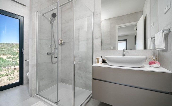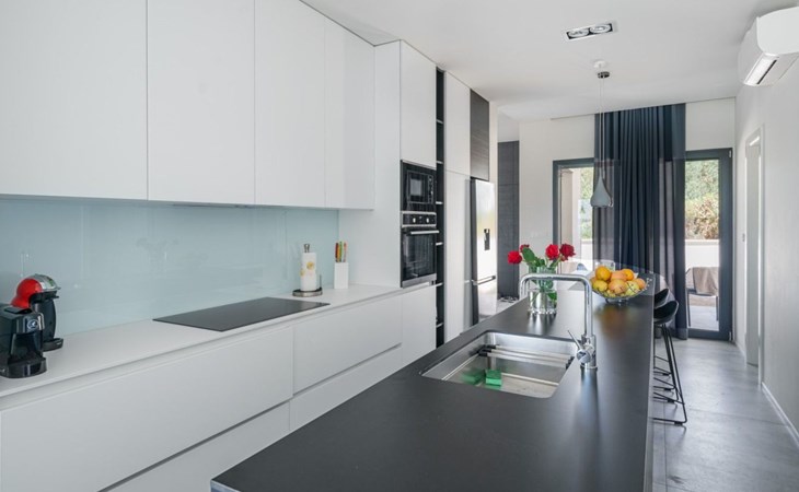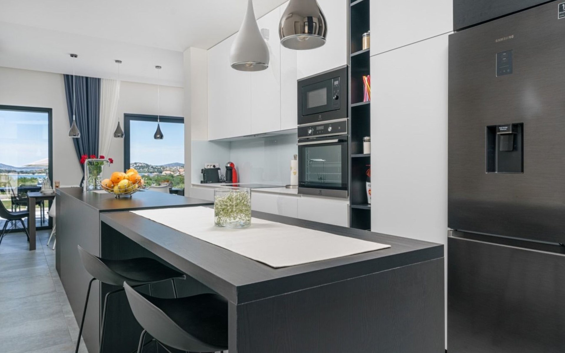 Das Innere der Villa ist so ausgestattet, dass Sie sich in jedem Moment Ihres Aufenthalts wohlfühlen. Dank der Klimaanlage im gesamten Haus ist Ihr Komfort bei jedem Wetter garantiert. Die Villa verfügt über vier gut ausgestattete Schlafzimmer, jedes mit eigenem Doppelbett, eigenem Bad, TV und Klimaanlage, so dass bis zu 8 Gäste ihren Aufenthalt in höchstem Komfort genießen können. Für diejenigen, die mit Kleinkindern reisen, steht ein Babybett zur Verfügung. Wenn Sie sich im Haus bewegen, werden Sie die praktischen Annehmlichkeiten wie Waschmaschine und Wäschetrockner zu schätzen wissen, die ausschließlich Ihnen zur Verfügung stehen und Ihnen die Arbeit erleichtern, damit Sie sich auf die Entspannung konzentrieren können. Die Küche ist mit einem Geschirrspüler und einer Kaffeemaschine ausgestattet, so dass die Zubereitung von Mahlzeiten und die morgendliche Routine ein Kinderspiel sind.