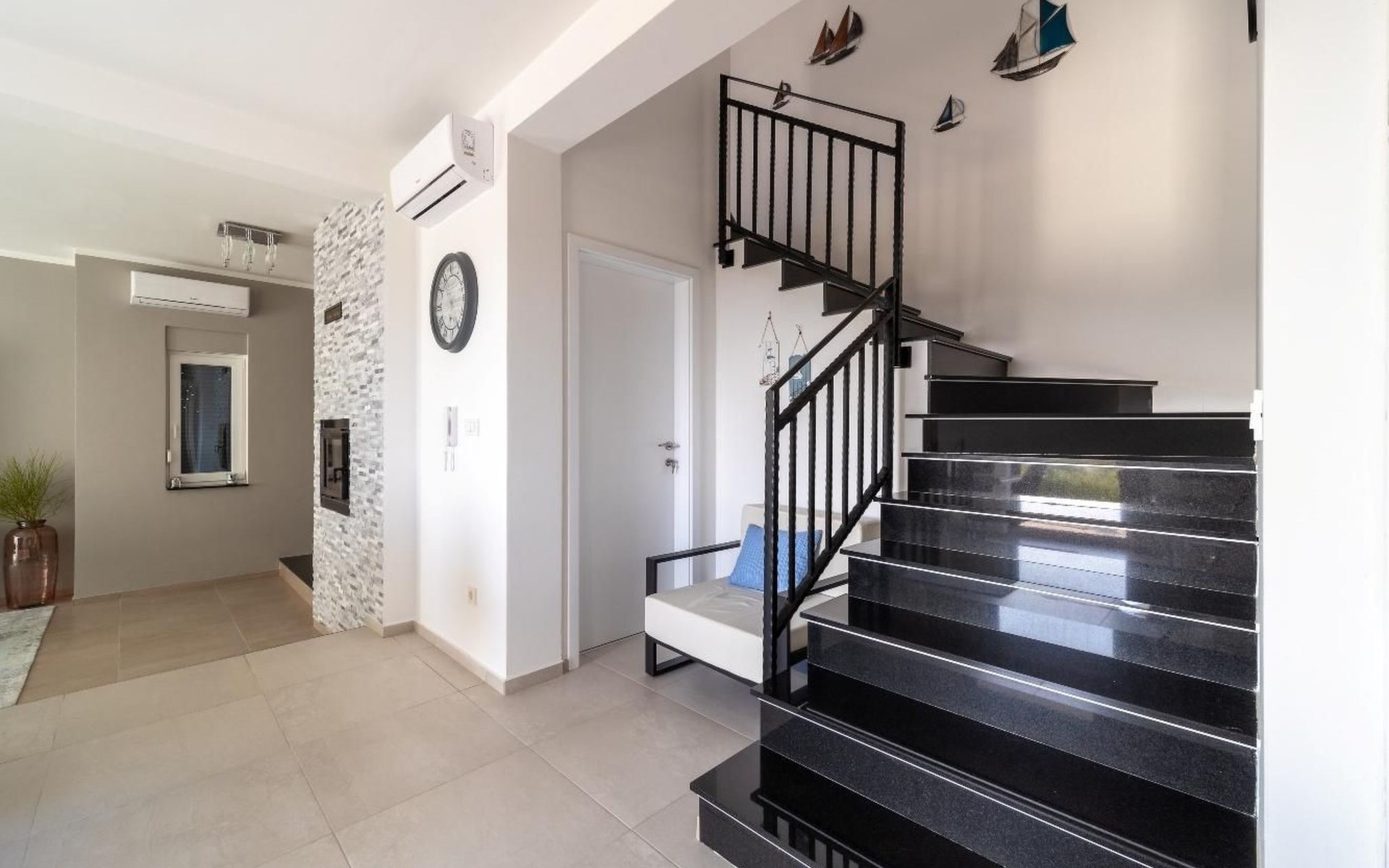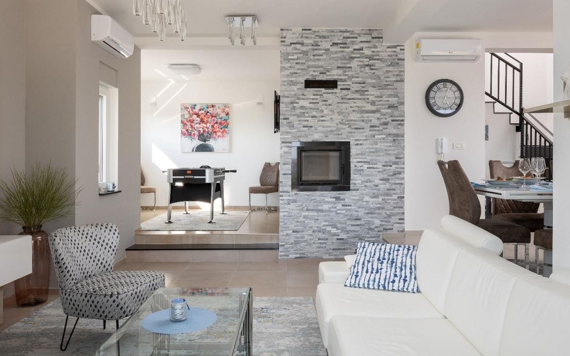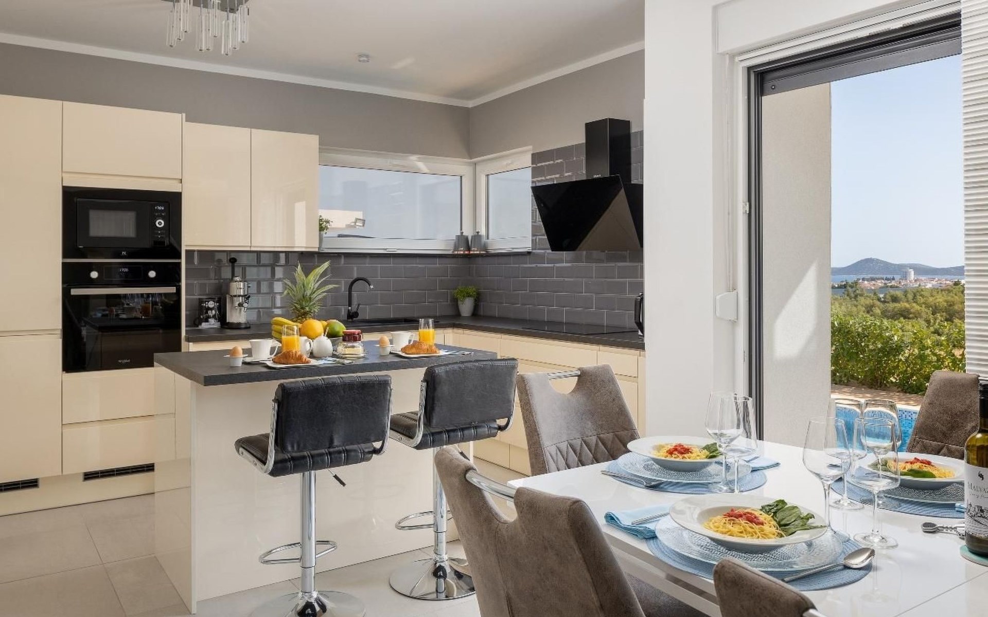 Im Inneren bietet das Haus eine Reihe von Annehmlichkeiten, die einen stressfreien Urlaub garantieren. Jedes der drei Schlafzimmer und die vier Badezimmer mit Duschen bieten Privatsphäre und Komfort für alle Gäste. Die Bequemlichkeit wird durch eine Klimaanlage im ganzen Haus, eine Waschmaschine und einen Wäschetrockner zur alleinigen Nutzung noch gesteigert. Kulinarisch Interessierte werden die voll ausgestattete Innenküche mit Kaffeemaschine, Geschirrspüler und Wasserkocher zu schätzen wissen, die die Zubereitung von Mahlzeiten zu jeder Tageszeit erleichtert.