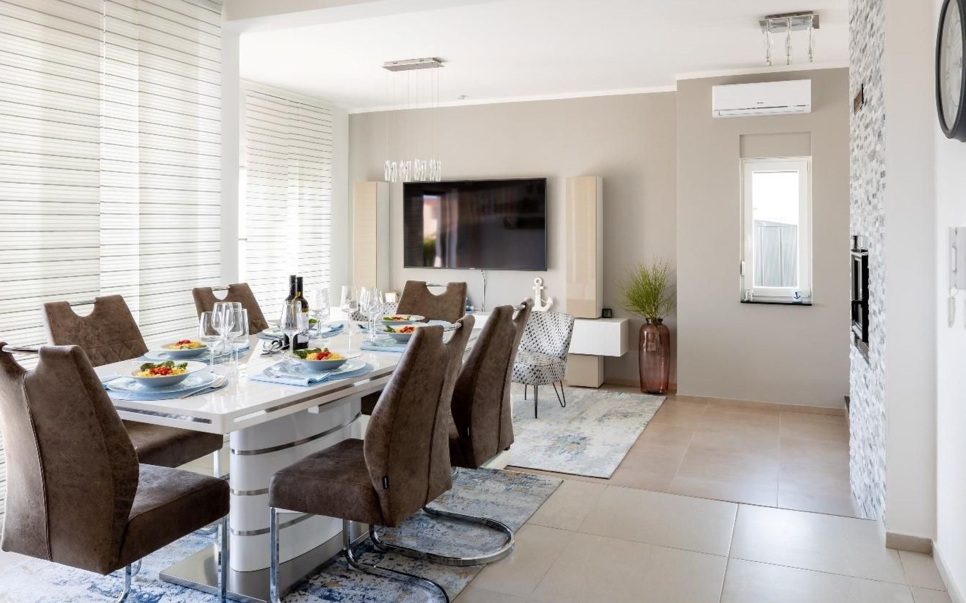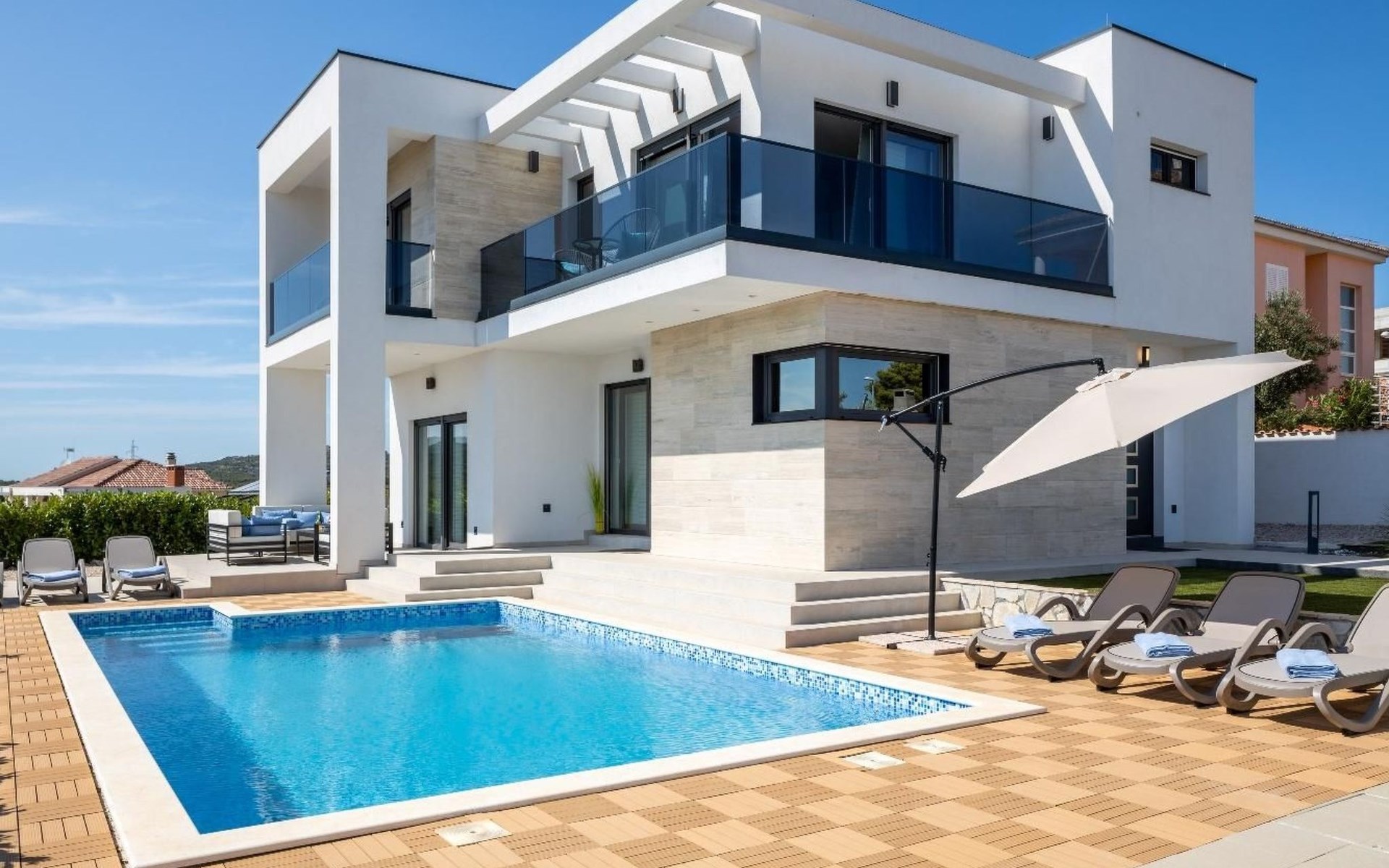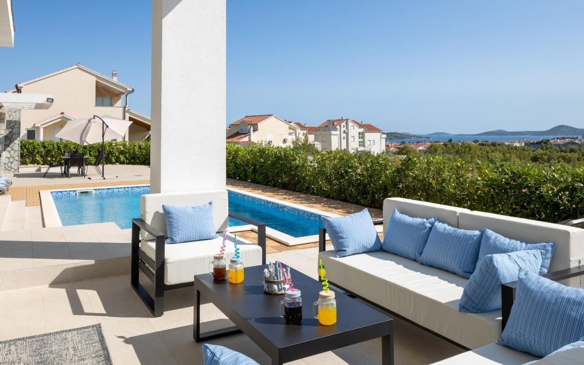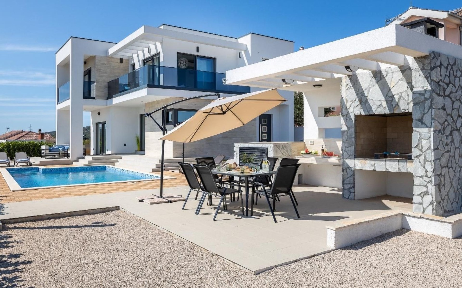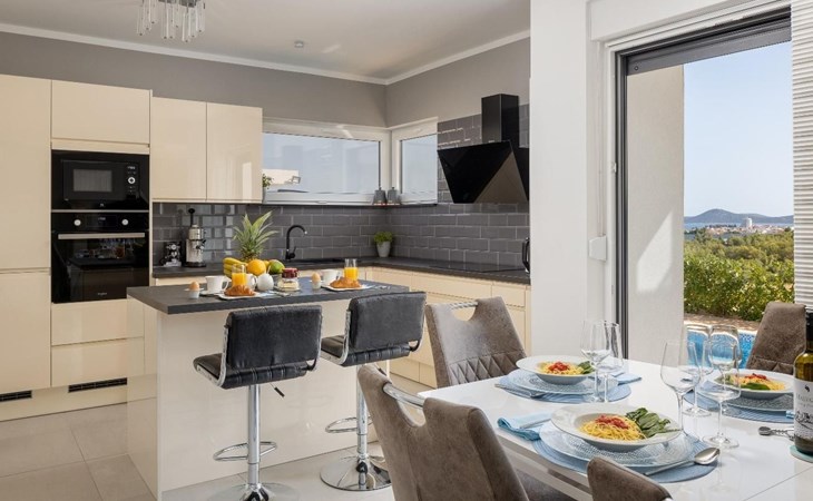 Die Lage des Hauses in Vodice-Srima, unweit von Šibenik, ist ein idealer Ausgangspunkt für die Erkundung der Region. Die nahe gelegenen Städte Zadar und Split bieten eine Mischung aus historischen Stätten und lebendiger Kulturszene. Naturliebhaber werden sich über die Nähe zu den Nationalparks Krka und Kornati sowie zum Vrana-See freuen, die eine Fülle von Outdoor-Aktivitäten und atemberaubende Naturschönheiten bieten.