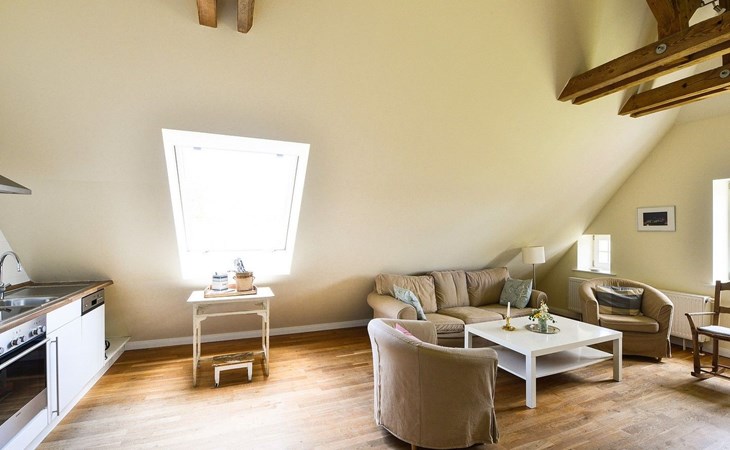 Das Gutshaus überzeugt weiterhin durch die mit viel Liebe zum Detail sanierte denkmalgeschützte Fassade, eine sehr liebevolle Einrichtung mit zum Teil antiken Einrichtungsgegenständen und der Verwendung von hochwertigen und ökologischen Baumaterialen (z.B. Eichenholz-Fußboden, Allergiker-freundliche Farben).
