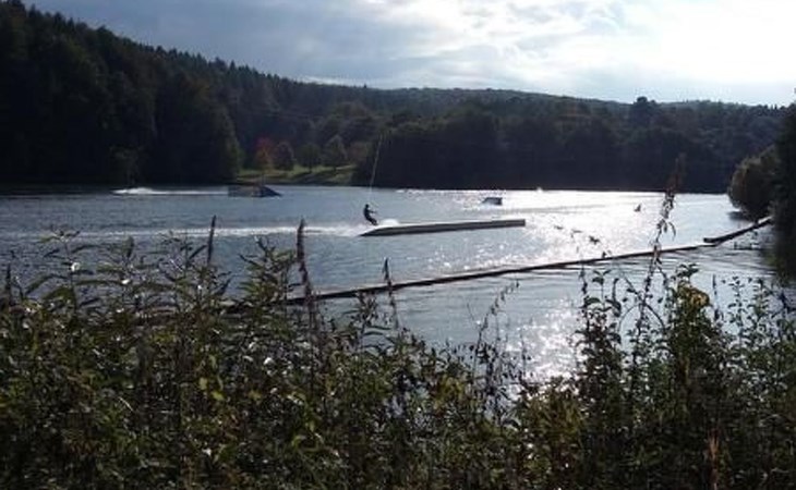 Der großzügige Außenbereich ist ein wahres Paradies für Kinder und Erwachsene. Ein großer Garten direkt am Wald lädt zum Toben und Entdecken ein. Hier können Sie entspannte Tage verbringen, während Sie die umliegende Natur und Ruhe genießen. Für aktive Momente steht ein vielfältiges Freizeitangebot zur Verfügung z.B. tollen Wanderwegen, einer Wakeboard- und Wasserskianlage sowie einer Badestelle am nahegelegenen See.