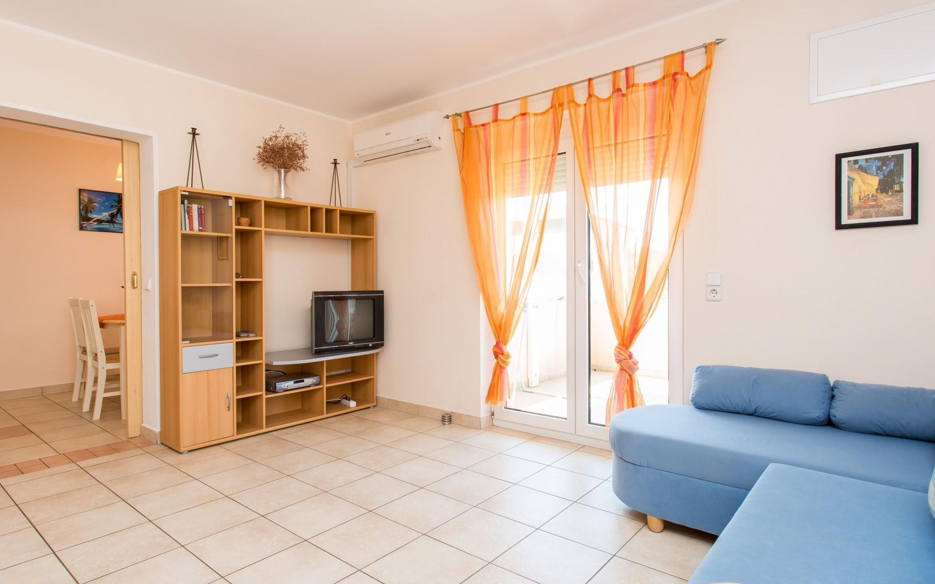 Die Ferienwohnung befindet sich im 1. Stock des Hauses und hat eine Wohnfläche von ca. 30 m2, die den Wohn-/Schlafbereich, Essbereich mit Küche, Bad und Balkon umfasst. Die Wohnung hat ein Schlafzimmer mit Doppelbett und ein Schlafsofa für eine Person. Bitte stellen Sie ein zusätzliches Bett auf, wenn Sie es benutzen möchten.