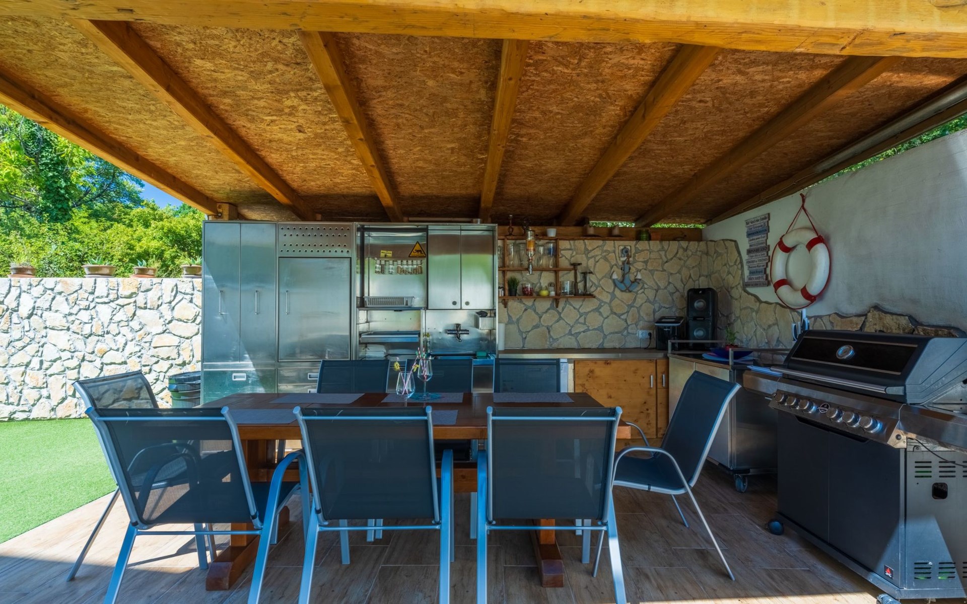 Sonstiges : -Beheizbarer Pool auf Wunsch-Bootsverleih gegen Aufpreis und falls ein Bootsführerschein vorhanden ist.-Outdoor Jacuzzi-Grillbereich Überdacht mit Outdoor Küche