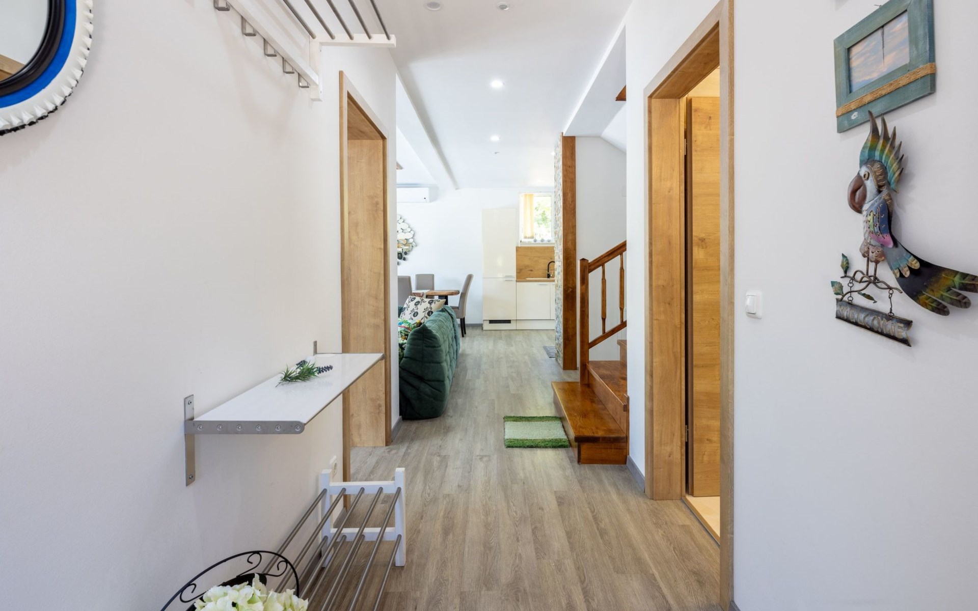 Verschiedene Strände in der Umgebung so wie Sand und Kiesstrand stehen zur Auswahl. Es ist jemand beim Haus bei der Schlüsselübergabe, der einen Rundgang mit Ihnen macht und Ihnen alles erklärt.
