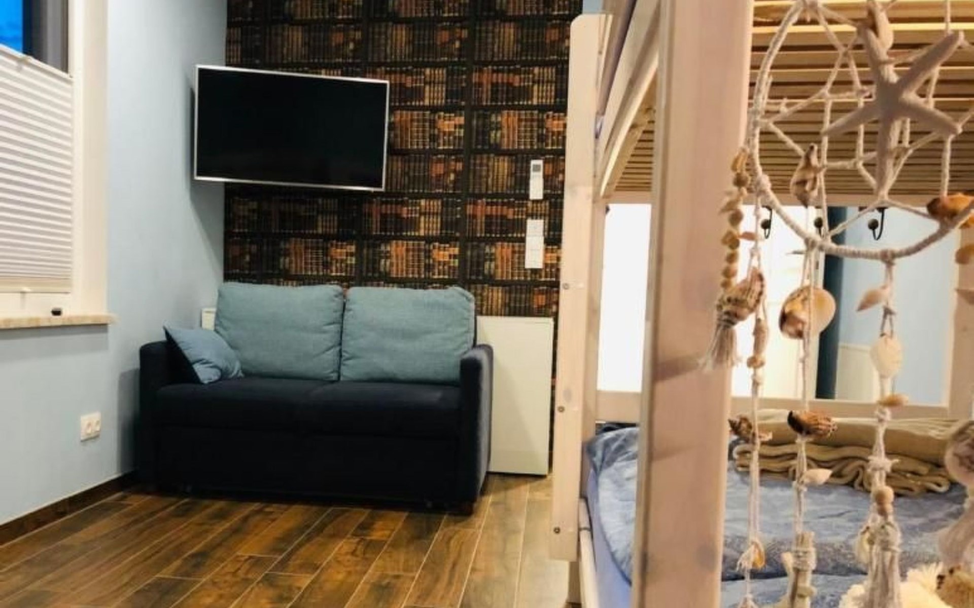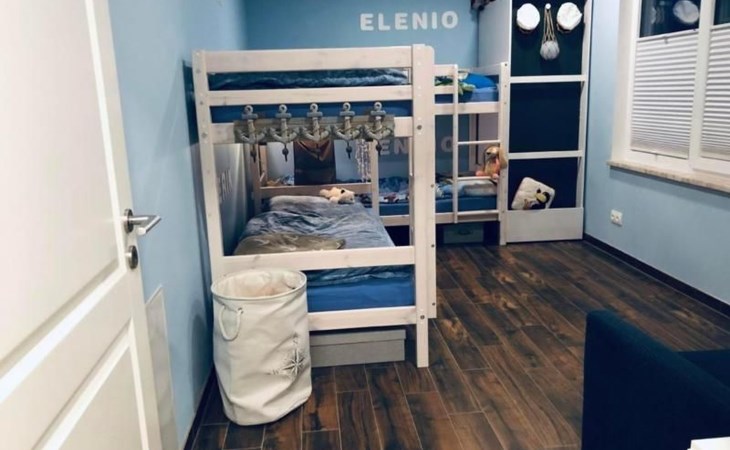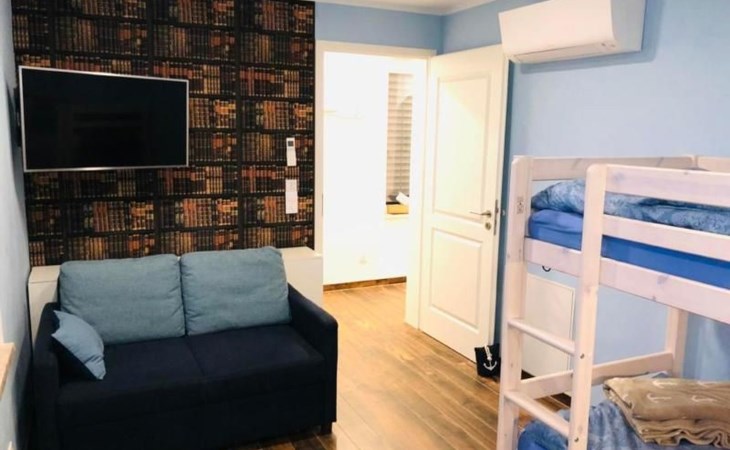Das zweite Schlafzimmer ist mit seinen Etagenbetten besonders für Kinder geeignet. Zudem bietet ein Sofa mit nur wenigen Handgriffen bei Bedarf einen zusätzlichen Schlafplatz.